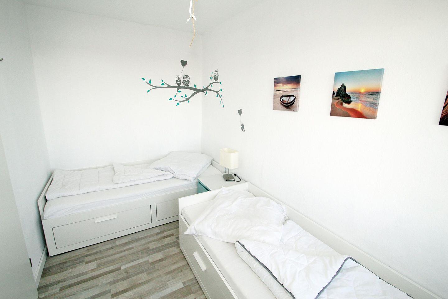 Alternativ dazu gibt es im Kinderzimmer (mit einer Tür vom Wohnraum getrennt) ebenfalls zwei Einzelbetten.