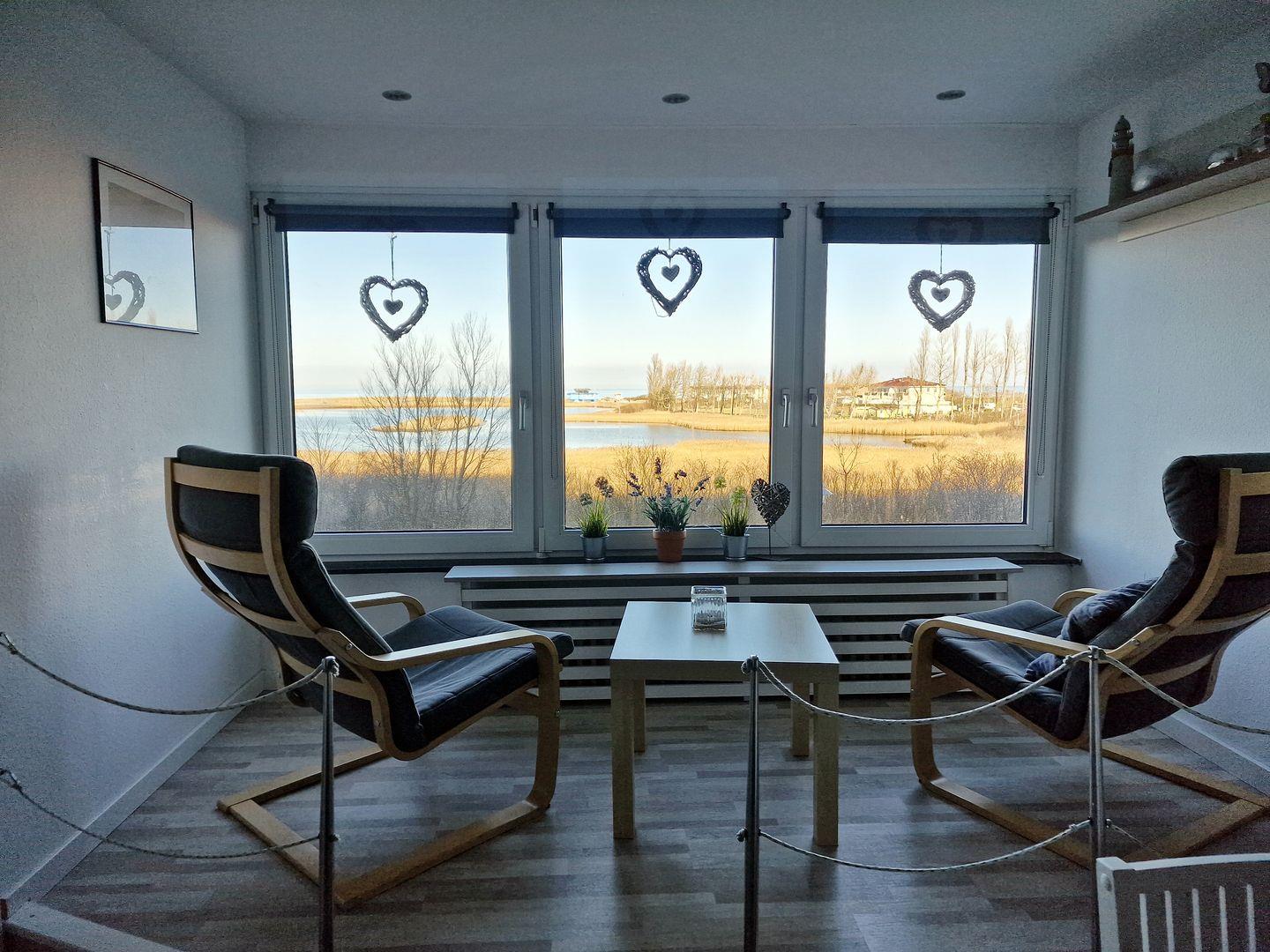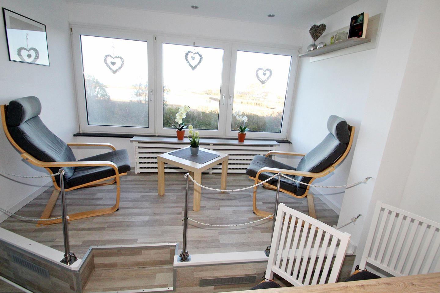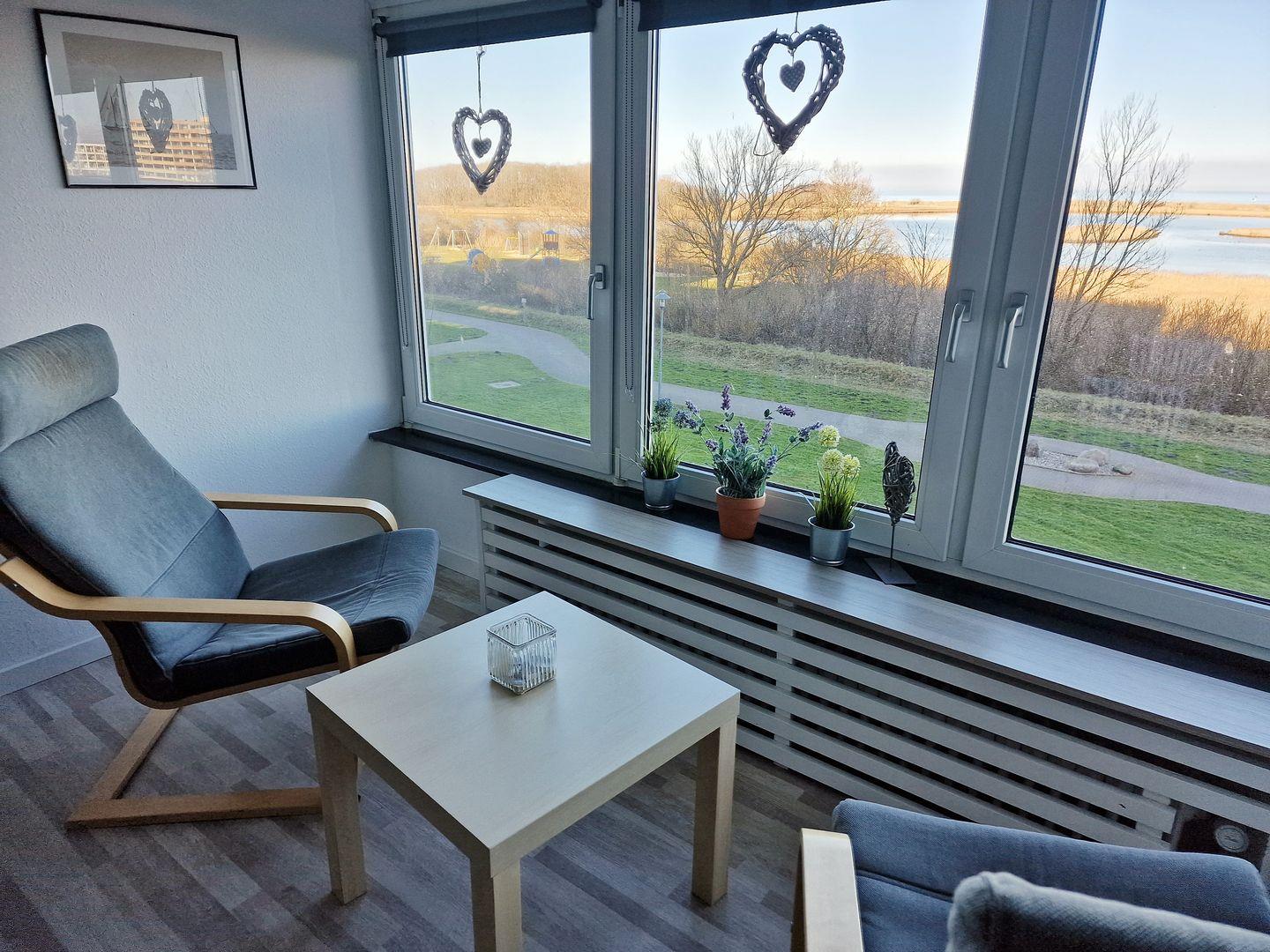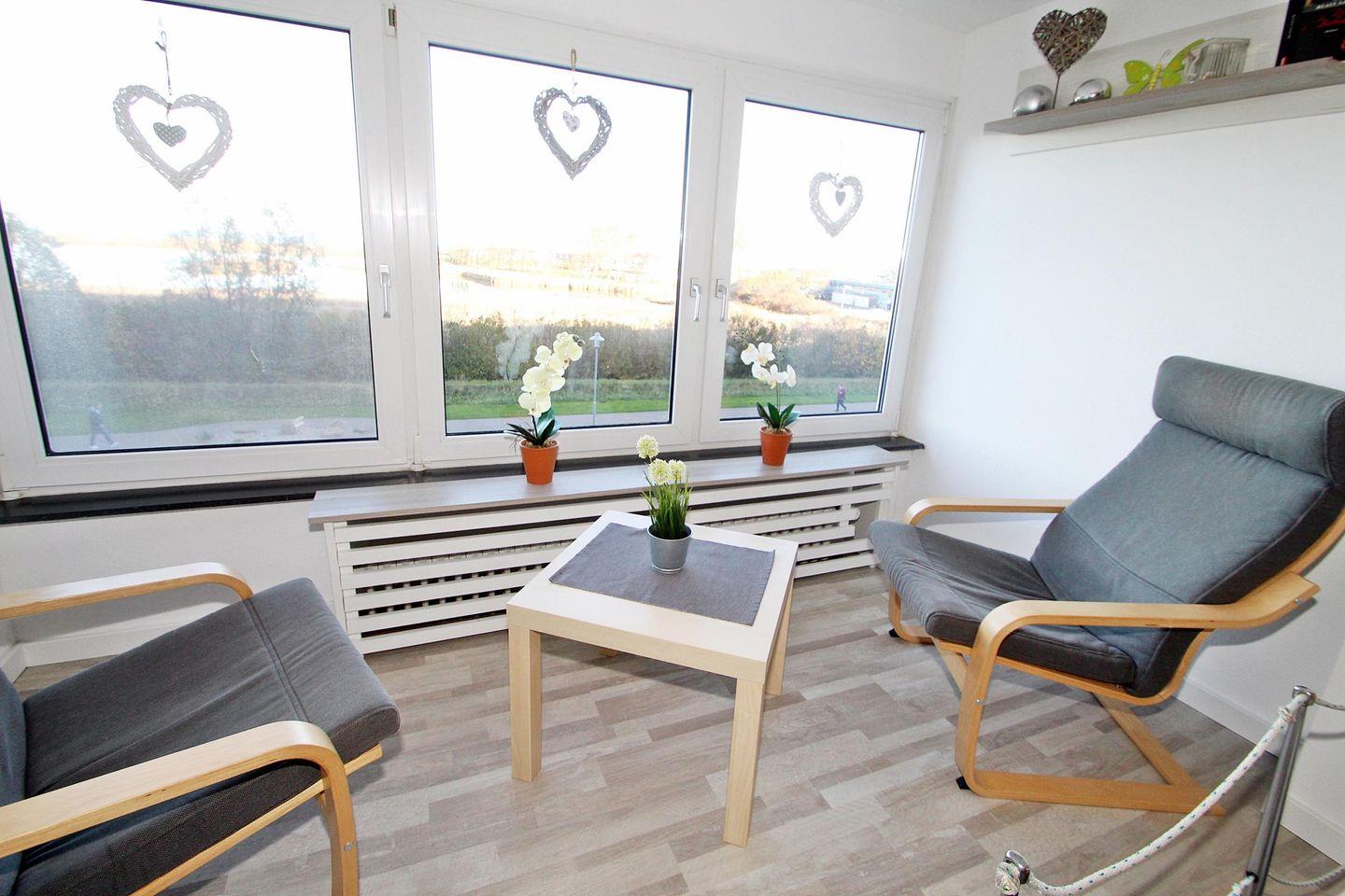 Eine modern, dezent maritim gestaltete und gemütliche Ferienwohnung mit schönem Seeblick - ohne Balkon.
