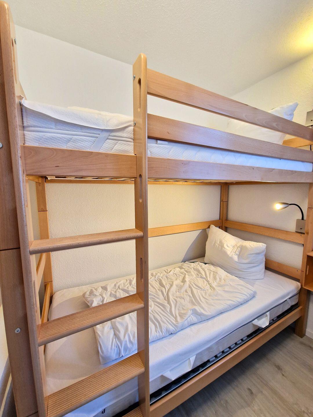 Mit zwei gemütlichen Schlafzimmern (Doppelbett 180 x 200 cm im Elternschlafzimmer und 90 x 200 cm Etagenbett im Kinderzimmer) ist diese Unterkunft ideal für Familien oder kleine Gruppen, die Unabhängigkeit und Komfort suchen.