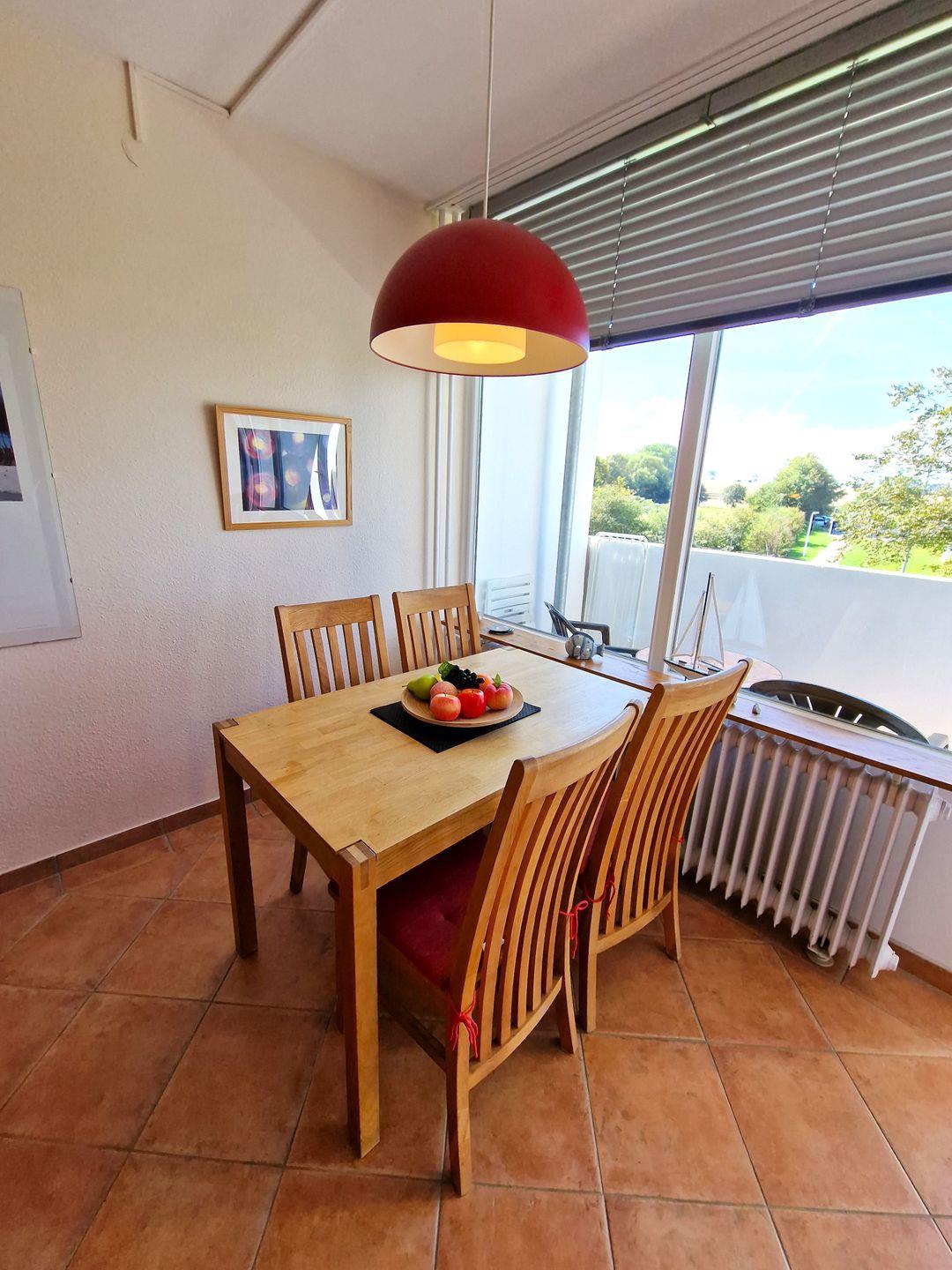 Die Essecke befindet sich direkt am Fenster.