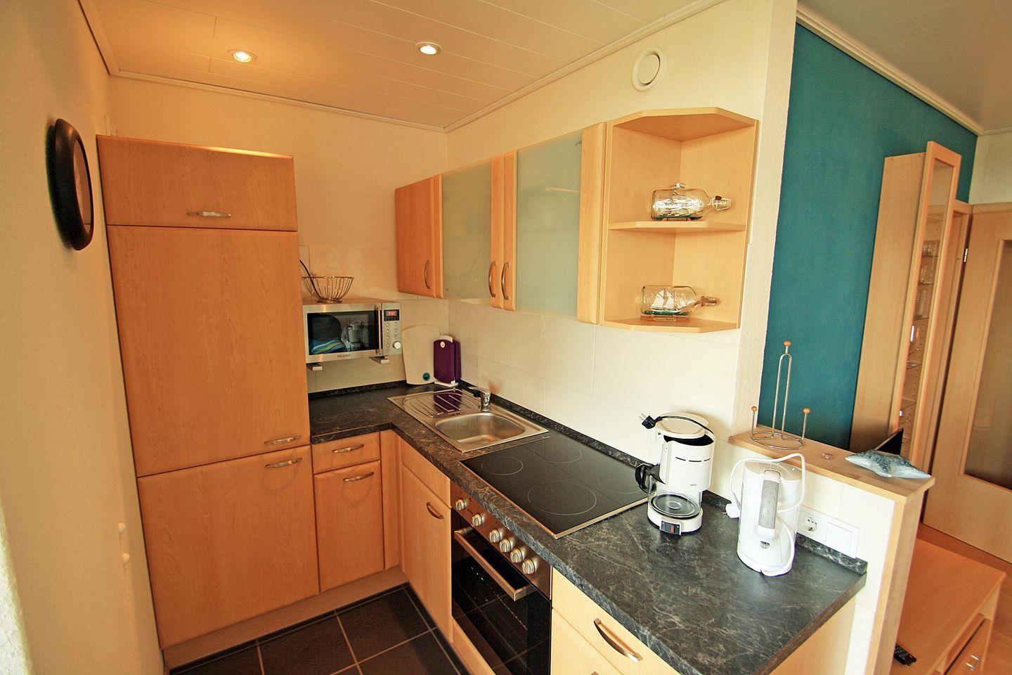 Die Küche ist mit 4-PlattenCeranfeld, Mikrowelle mit Grillfunktion, Kaffeemaschine, Kühlschrank mit 3*Gefrierfach und Backofen ausgestattet.