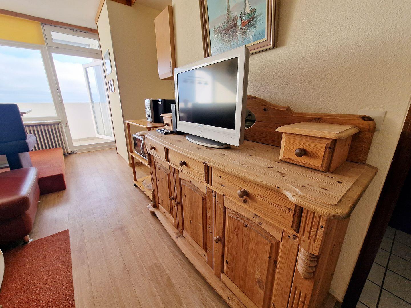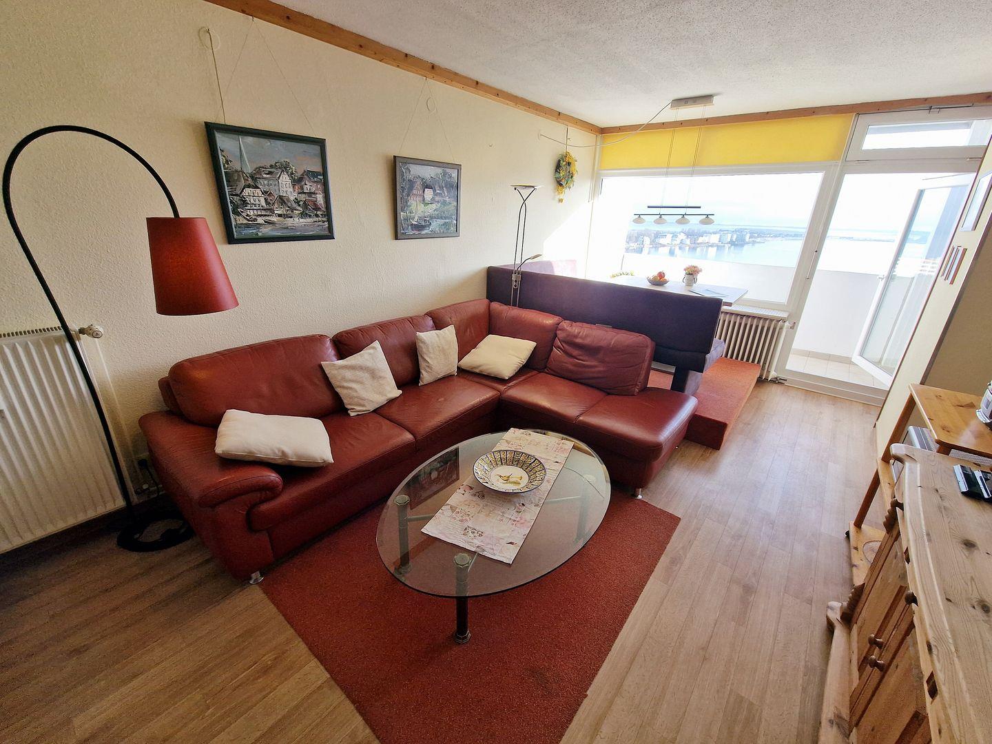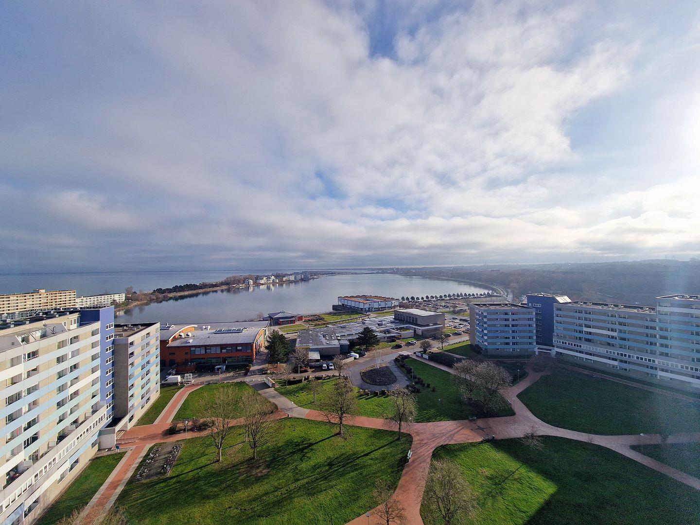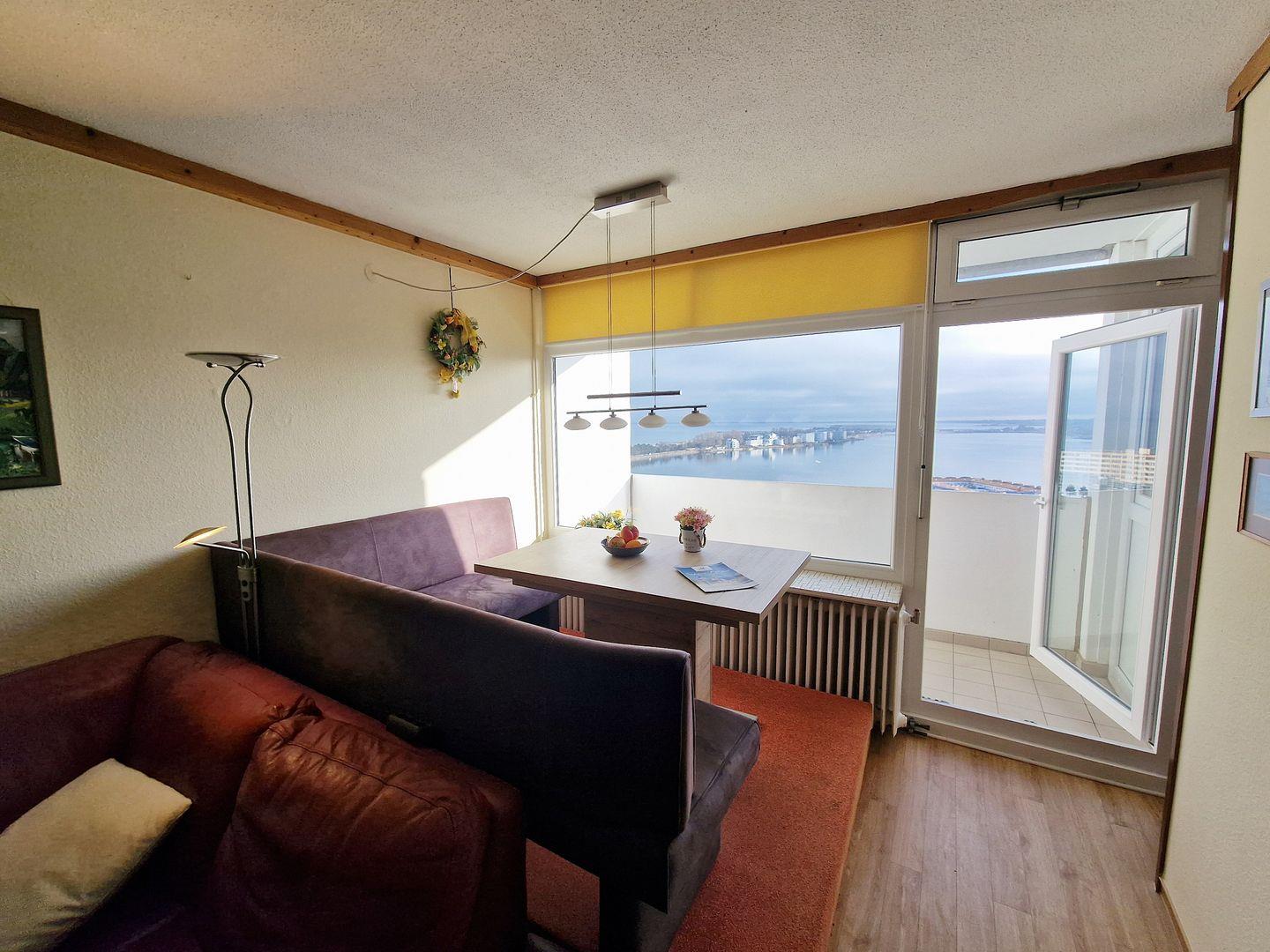 Schön ausgestattete Wohnung in der 14. Etage mit Balkon zur Ostseite und traumhaftem Blick über den Binnensee, Richtung Stadt Heiligenhafen, Ostsee und Fehmarnsundbrücke.