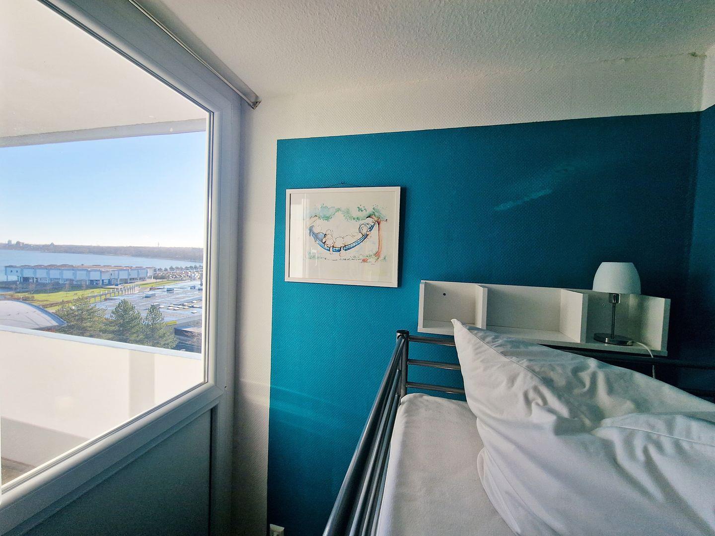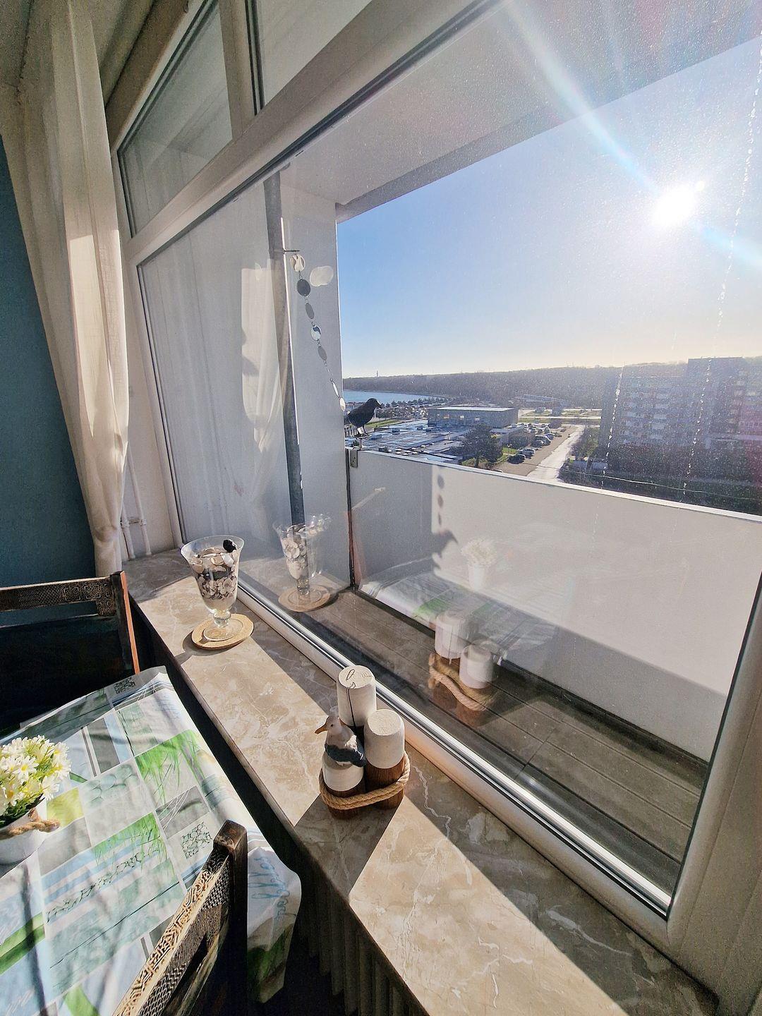 Sonnige Ferienwohnung in der 7. Etage. Der Balkon zeigt zur Südseite mit Blick zum Binnensee.