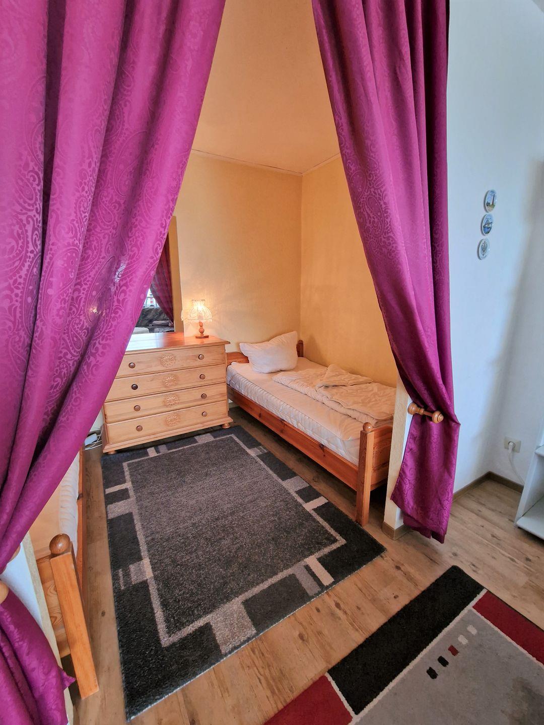 Der Schlafbereich, mit zwei Einzelbetten (je 90*200) ist durch Vorhang zum Wohnbereich abtrennbar.