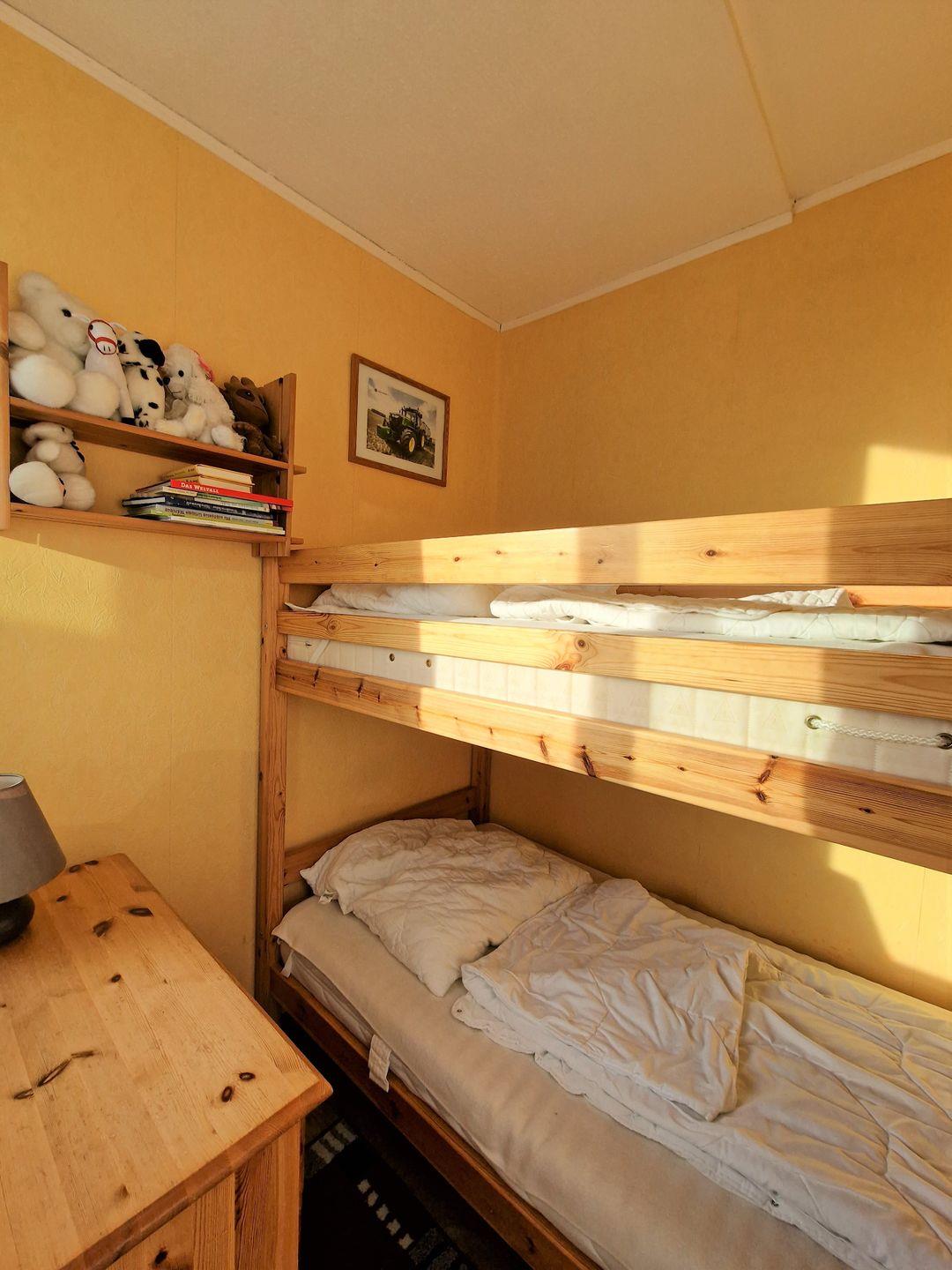 Das Kinderzimmer, komplett vom Wohnbereich mit einer Tür getrennt, hat ein Etagenbett (mit je 90*200).