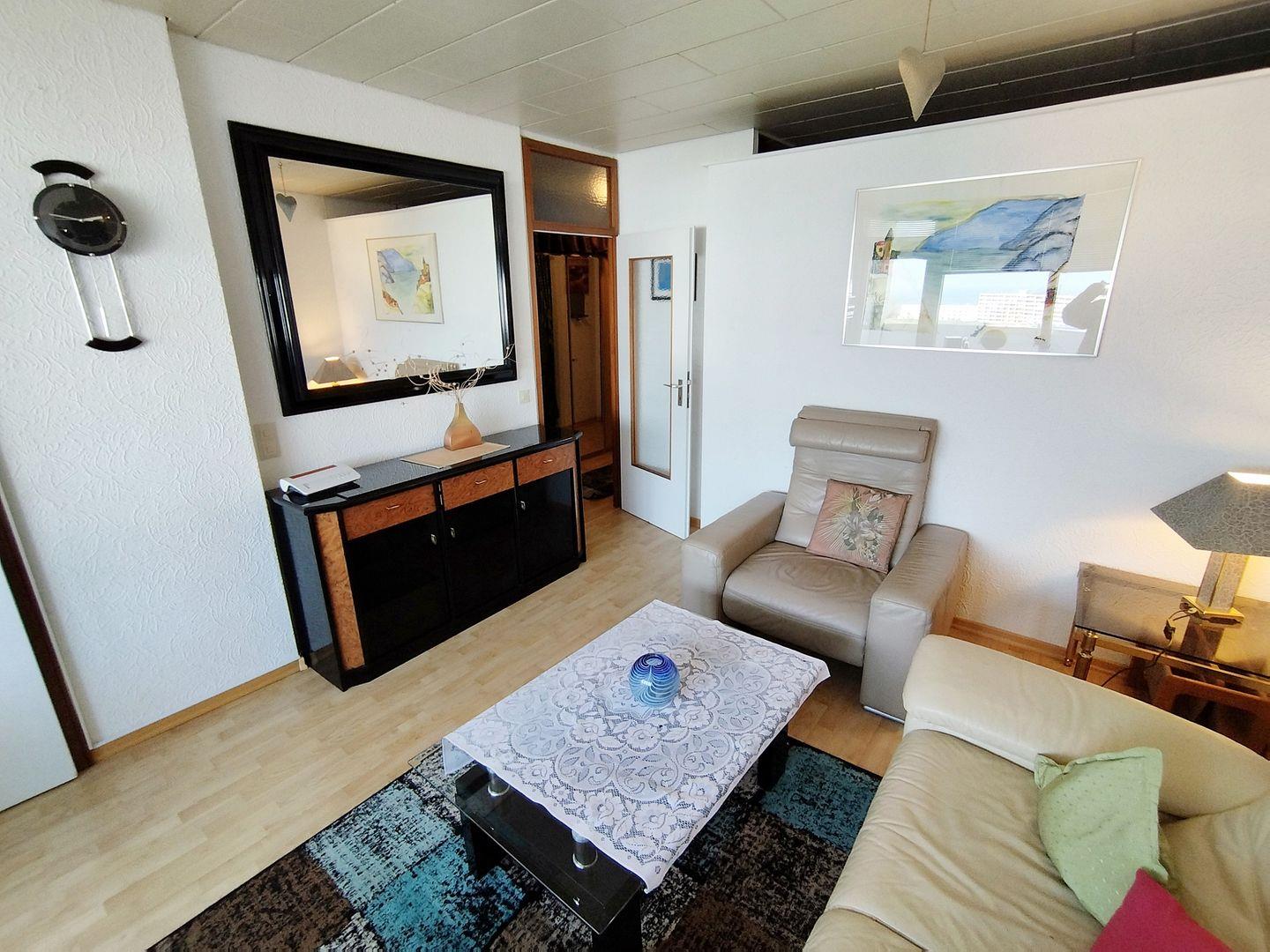 Diese für 2 Erwachsene und 2 Kinder (auch 3. Erw. möglich, da großes Bett im Kinderzimmer) geeignete Ferienwohnung im 9. Stock des Ferienparks ist im Wohnbereich, Schlafzimmer und Flur mit Laminat ausgelegt.