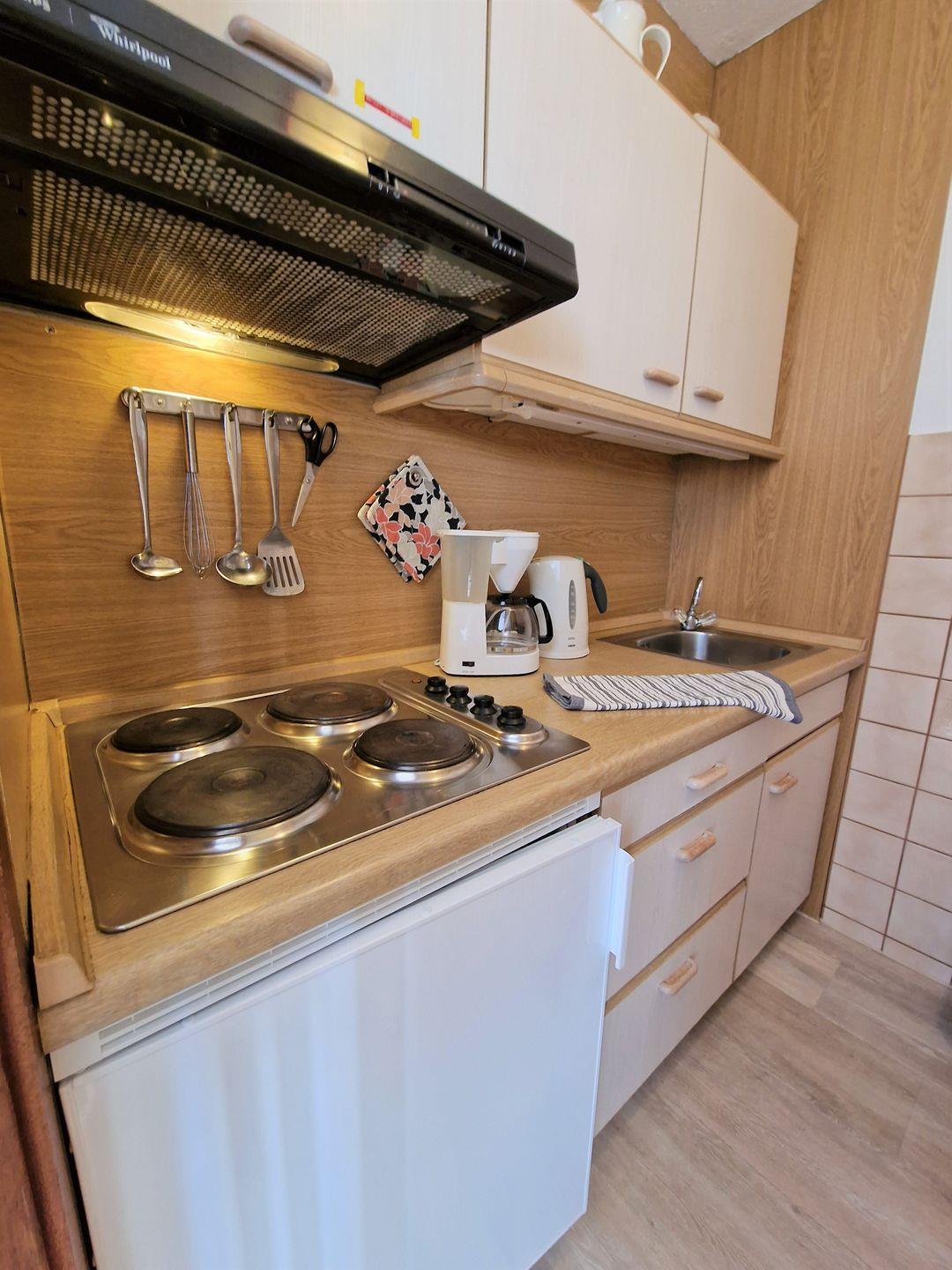 Küche mit 4-Plattenherd.