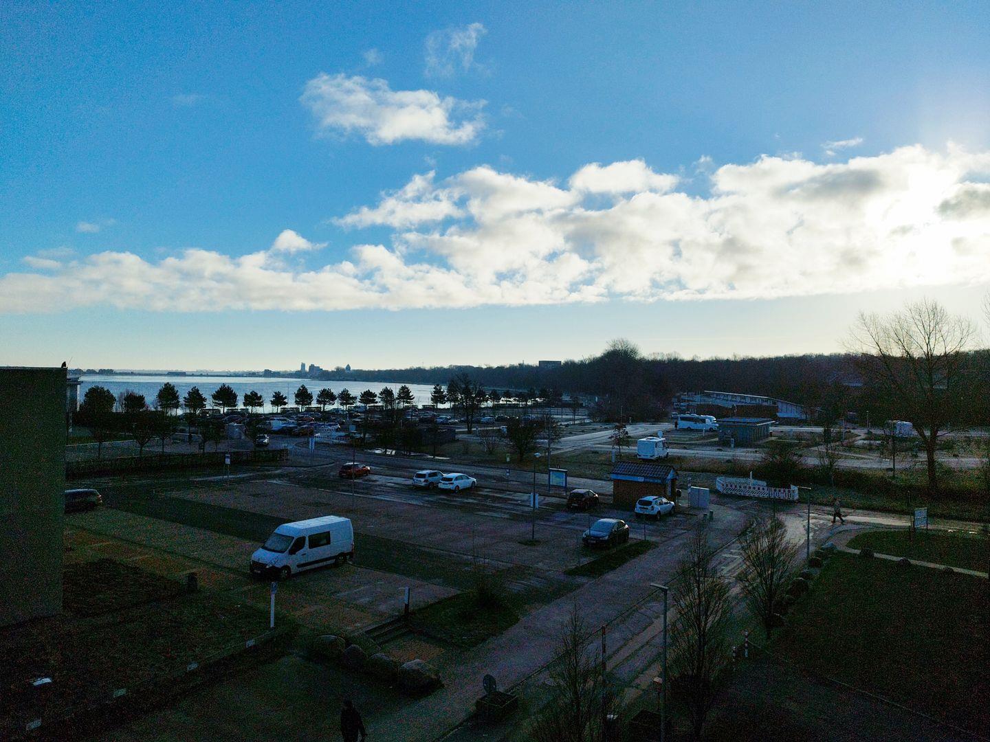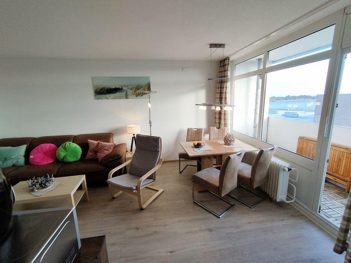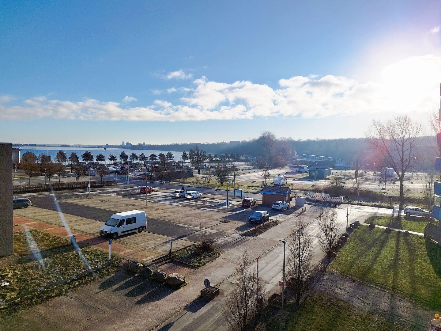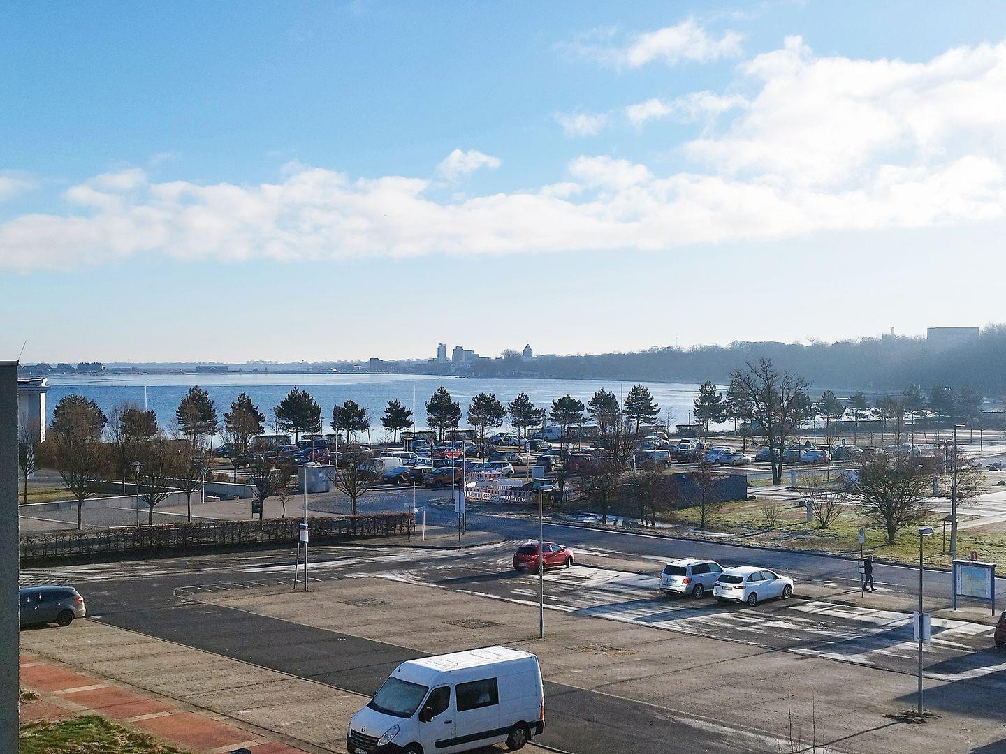 Vom Balkon aus schauen Sie auf den Binnensee, die Ostsee und auf das Aktiv-Hus.
