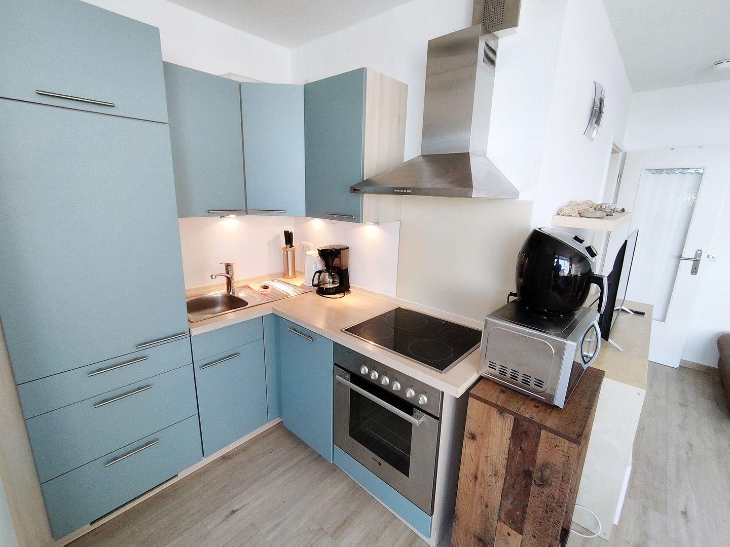 In der eingebauten Küche finden Sie alles, was das Herz begehrt.