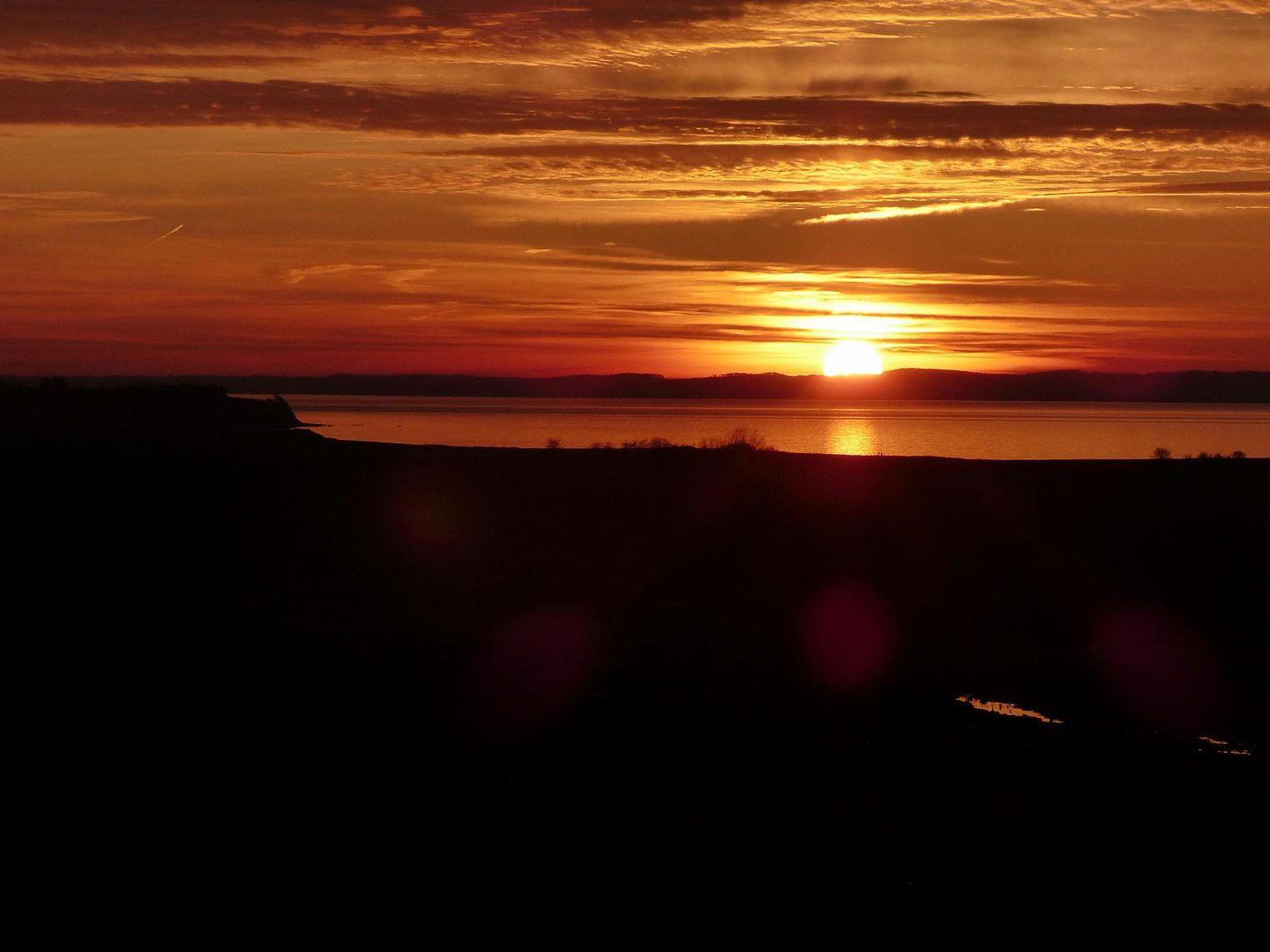 Dieser bietet einen herrlichen Ausblick auch zum Sonnenuntergang über das Naturschutzgebiet, bis hin zur Steilküste. Hier kann man von morgens bis abends die Sonne genießen.