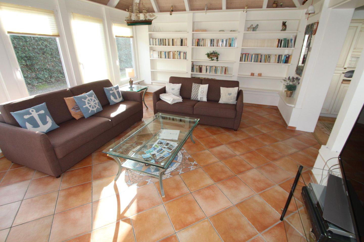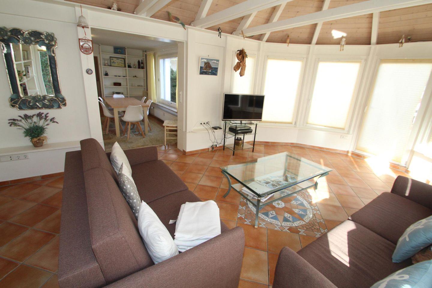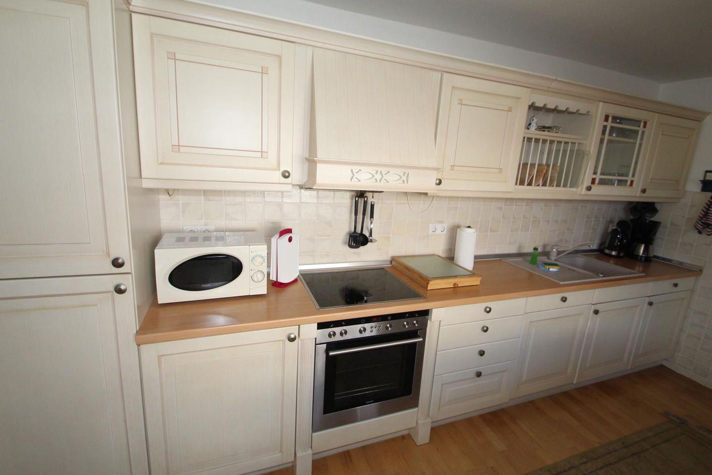 Die Wohnung liegt "Am Mühlentor", daher auch der Name. Sie ist hell und nordisch modern mit größtenteils gefliestem Boden und Läufern ausgestattet. Der Wohnbereich im Stile eines Wintergartens hat das gewisse Etwas und jede Menge Licht. Er bietet mit einer großen Schlafcouch, Sat-TV und WLAN eine tolle Entspannungsoase. Ein großer Essbereich steht in der vollausgestatteten Küche zur Verfügung. Hier trifft sich die Familie und es entspannt sich leicht. 2 Duschbäder runden die Ruhefindung ab. Die Wohnung ist besonders interessant für Familien mit 2-4 Kindern oder Gruppen, da es über 1 Schlafzimmer mit einem Etagenbett und einem Doppelbett, sowie eine Schlafcouch (im Wohnbereich) für 2 Personen verfügt. Eine Waschmaschine und Trockner stehen in einem Waschraum zur Verfügung. Eine weitere Annehmlichkeit ist hier der direkte Zugang zur Terrasse und dem Garten. Sitzmöbel, Strandkorb, Grillmöglichkeit und viel Platz für die "Lütten", dazu jede Menge Sonne, Entspannung und Erholung finden Sie hier "Am Mühlentor" garantiert.