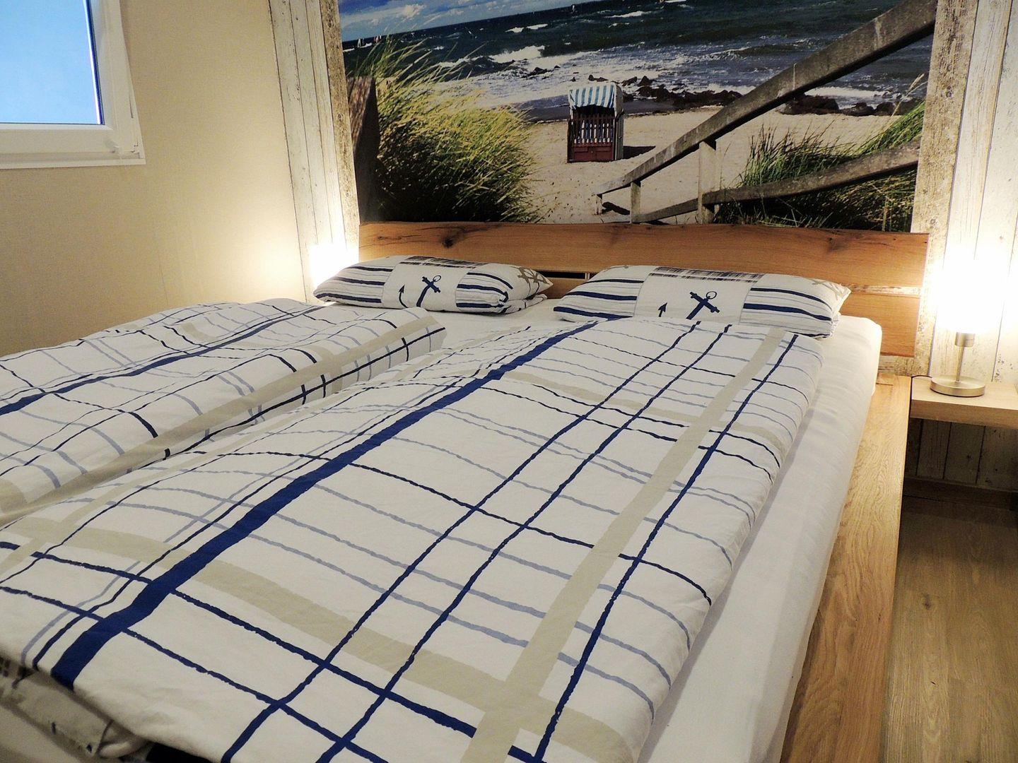 Für den gesunden Schlaf stehen zwei separate Schlafzimmer zur Verfügung. Das größere Schlafzimmer verfügt über ein etwas höheres Doppelbett und einen separaten Fernseher.