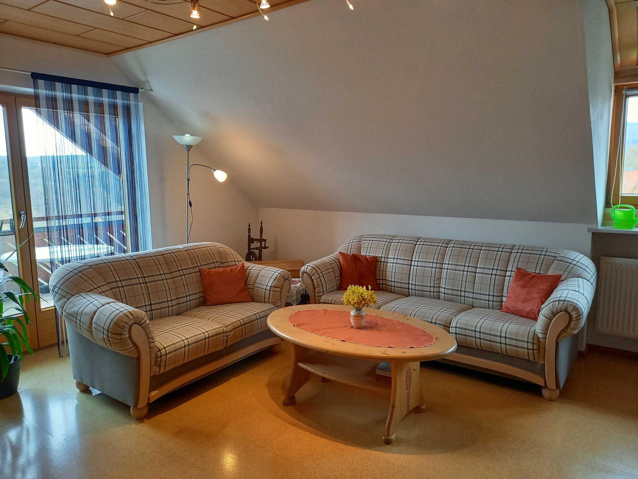 Wir begrüssen Sie in unserer Ferienwohnung im Rotdornweg. Unsere gepflegte Ferienwohnung im Dachgeschoss eines Zweifamilienhauses liegt in ruhiger Gegend. Die Wohnung verfügt über zwei Schlafzimmer (jew. 18 qm), einem Wohnzimmer (27 qm), einer Essküche (18 qm), einem Bad mit Dusche und Badewanne (10 qm) und einem Balkon (9 qm).