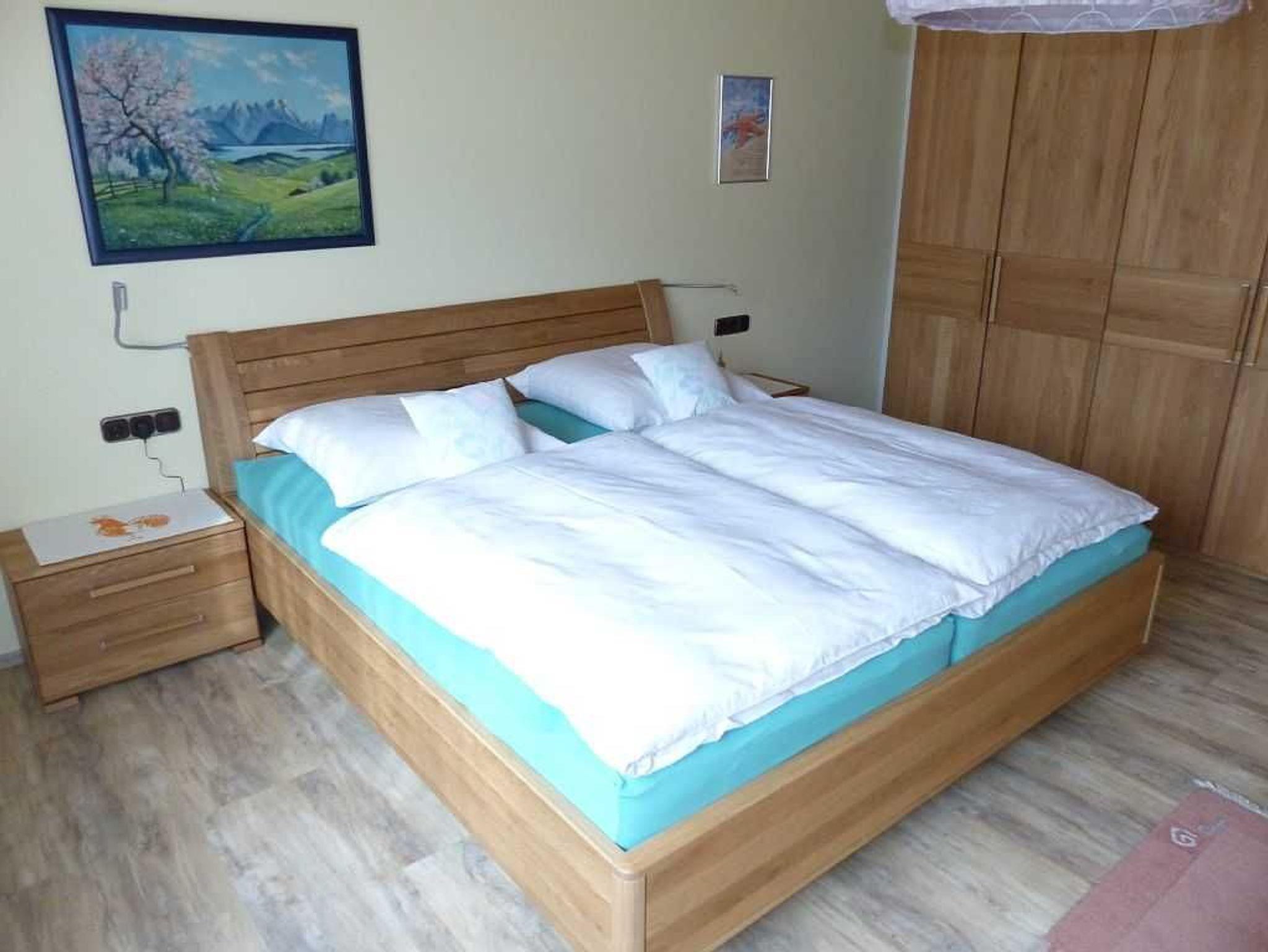 Schöne 64qm Nichtraucherwohnung mit einem Schlafzimmer mit Doppelbett und Wandschrank.