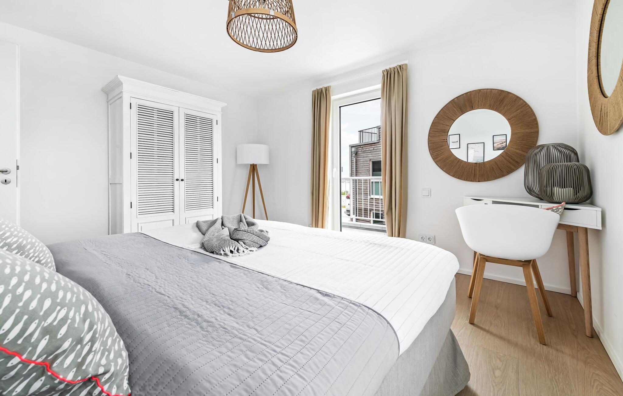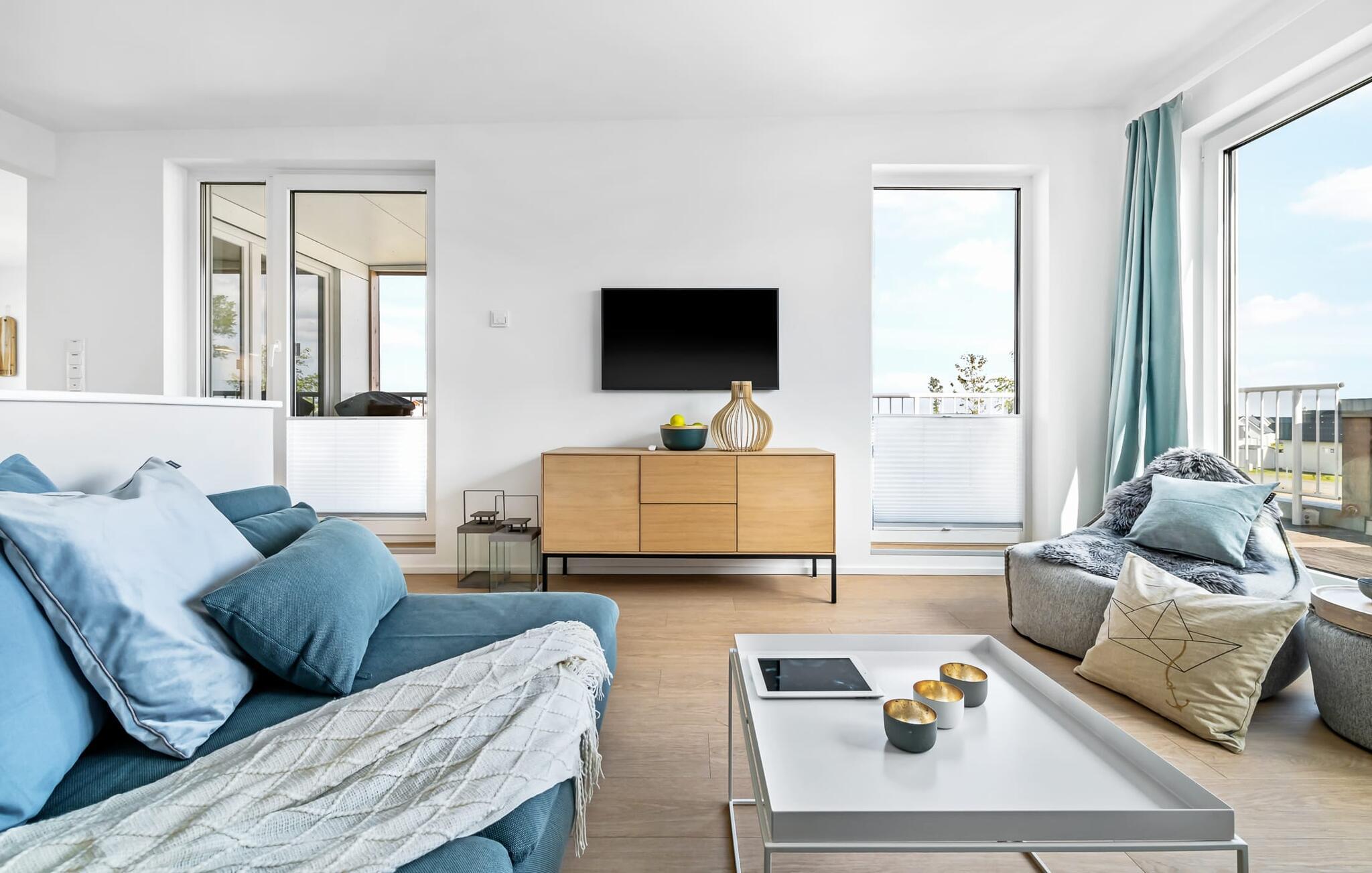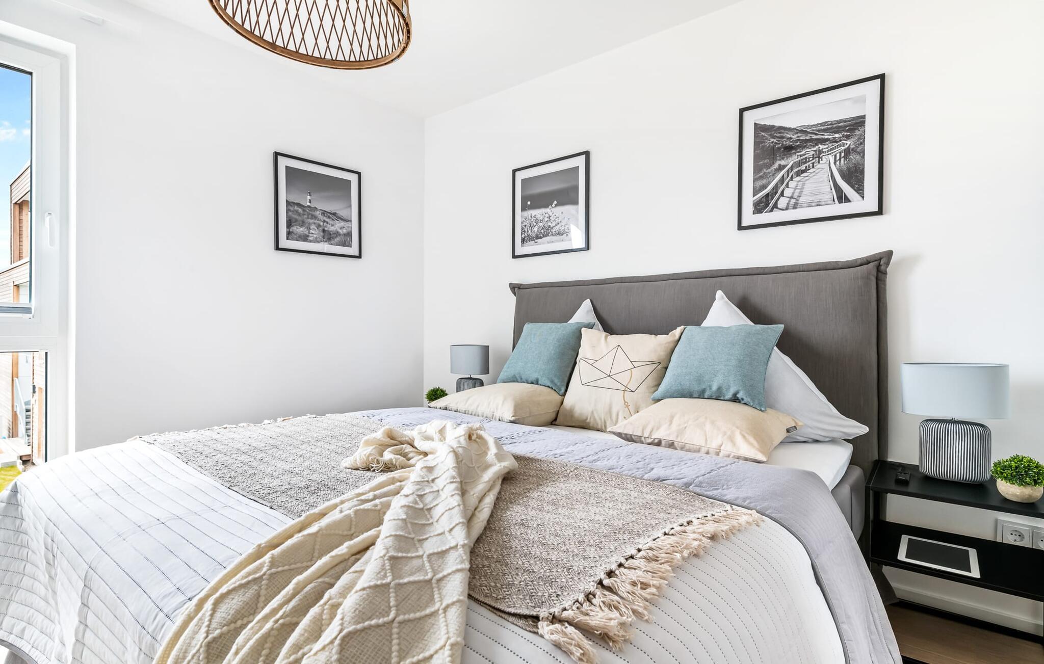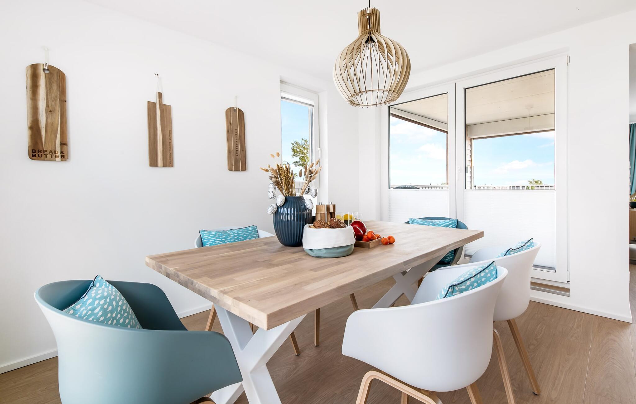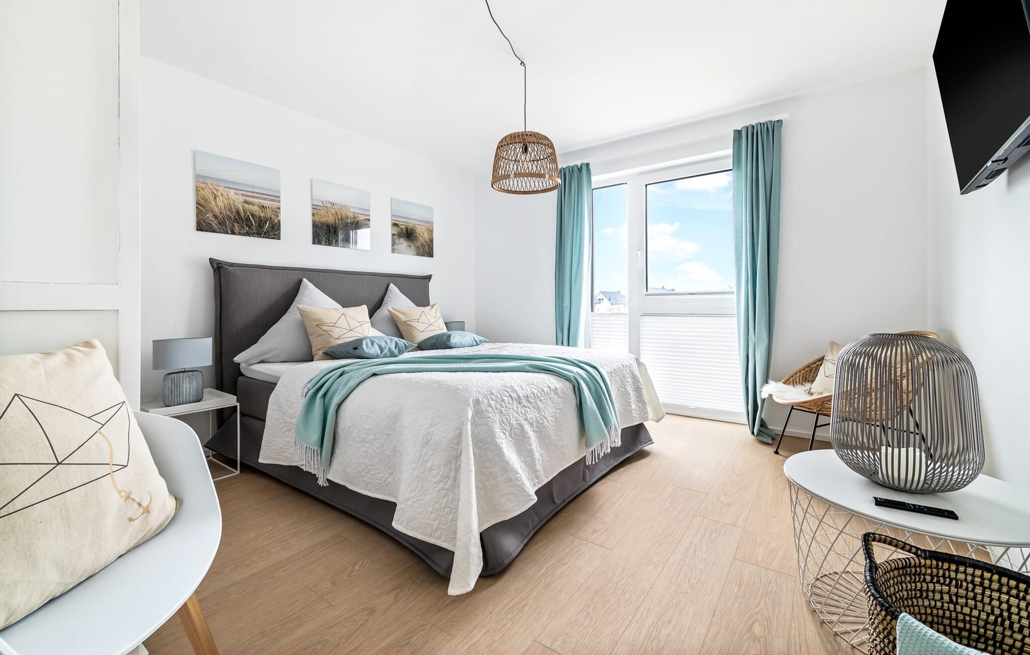 Heimat Loft er en rummelig og rummelig maisonette ferielejlighed på første og anden sal. Med tre soveværelser, en stor terrasse og udsigt over havnen og Østersøen er Heimat Loft den perfekte ferielejlighed til jeres ferie ved Slei og Østersøen med hele familien. Havnepromenaden i OstseeResort Olpenitz med dets voksende udbud og indkøbsmuligheder samt sejl- og sportsbådshavnen i OstseeResort Olpenitz ligger i umiddelbar nærhed af ferielejligheden. Stranden Weidenfelder ligger kun 450 m væk og kan nemt nås til fods fra lejligheden. Den maritime minigolfbane ligger også i umiddelbar nærhed og byder på sjov for hele familien. Heimat Loft giver en feriefølelse med en karakter! Lejlighedens tre soveværelser ligger på første sal, med i alt tre dobbelte boxmadrasser. En 180 cm bred og to 160 cm bred. Uanset hvilket soveværelse I vælger, kan I være sikker på en afslappende søvn. Et af soveværelserne har desuden hjemmekontor og en lille altan med udsigt over havnen. Udover soveværelserne er der også et rummeligt badeværelse med badekar og vaskemaskine, samt et rummeligt depotrum, der også kan bruges som garderobe. Når I ankommer på anden sal, bliver I budt velkommen af vinduesfronten fra gulv til loft med en tilstødende terrasse. De lyse værelser, indrettet med sans for detaljer, en hyggelig opholdsstue og pejsen skaber en atmosfære. Her siger navnet det hele, og I føler jer straks hjemme! Det åbne køkken-alrum er indrettet til høj standard og sikrer sjov madlavning sammen med udsigt til havnen også på ferie. I har adgang til den store, delvist overdækkede terrasse med syd-vest orientering og en flot udsigt over ferieparken mod Østersøen direkte fra opholdsstuen eller køkkenet. Der er et terrassebord og, for en ægte Østersø-feriestemning, en strandstol og en elektrisk grill til jeres rådighed. Her kan I tilbringe afslappende timer i solen hele dagen og se fantastiske solnedgange. Et andet komplet badeværelse med wellnesskarakter, en rummelig panoramabruser på gulvniveau og infrarød sauna afrunder hele pakken ideelt til en afslappende ferie. Der er også tænkt på de små: Ud over højstol og rejseseng har lejligheden også strandlegetøj til børnene. I finder jeres egen parkeringsplads foran ferielejligheden. Vores favoritsted: Efter sol, strand og sjov, afslutte dagen med en hyggelig grillaften og en vidunderlig solnedgang på terrassen... Bemærk venligst: OstseeResort Olpenitz er meget populært, og der bygges fortsat i parken. Ikke desto mindre kan I se frem til en 5-stjernet standard og et førsteklasses ophold. Byggeaktiviteterne kommer ikke til at forstyrre jer på ferien, og derfor gives der ikke yderligere afslag i prisen.
