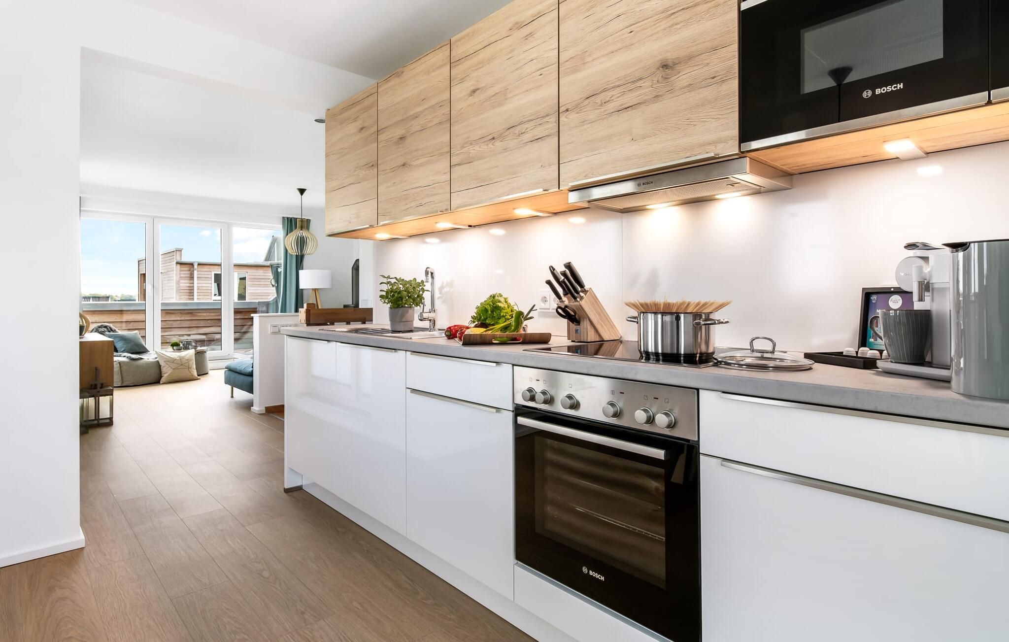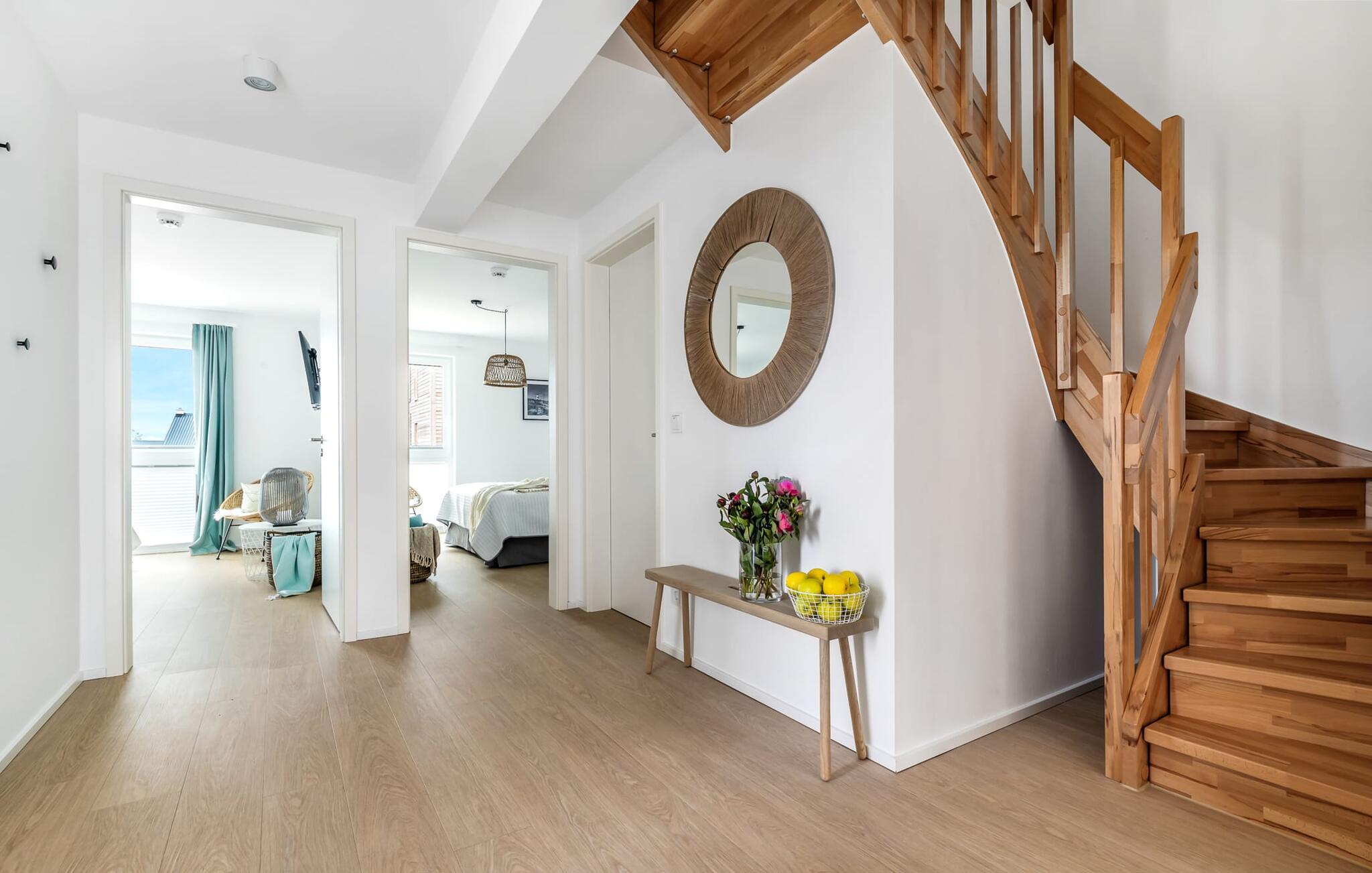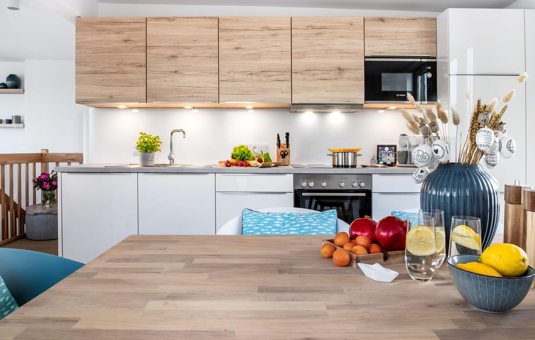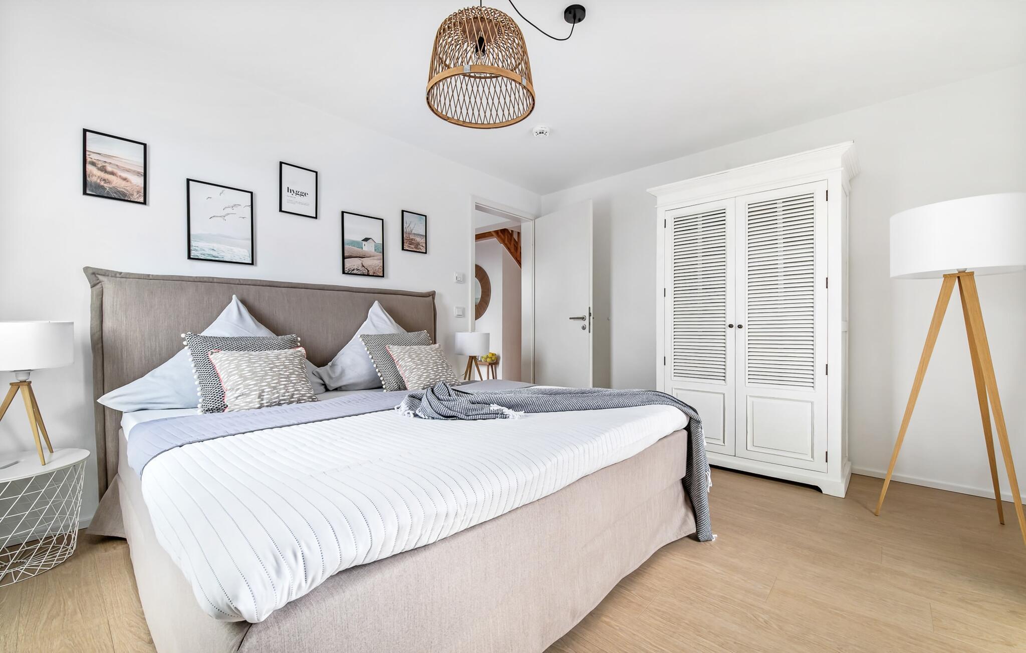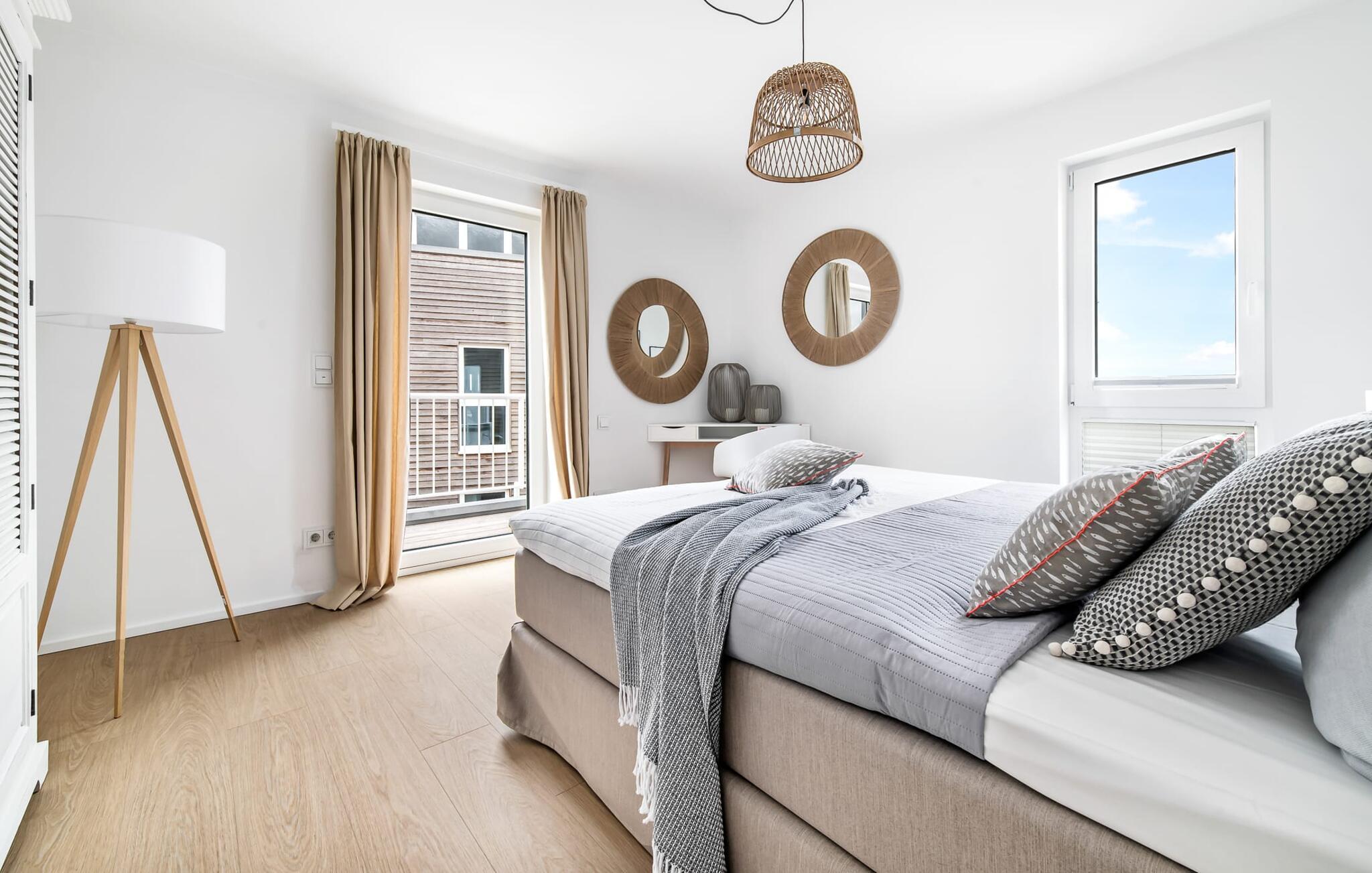 Heimat Loft er en rummelig og rummelig maisonette ferielejlighed på første og anden sal. Med tre soveværelser, en stor terrasse og udsigt over havnen og Østersøen er Heimat Loft den perfekte ferielejlighed til jeres ferie ved Slei og Østersøen med hele familien. Havnepromenaden i OstseeResort Olpenitz med dets voksende udbud og indkøbsmuligheder samt sejl- og sportsbådshavnen i OstseeResort Olpenitz ligger i umiddelbar nærhed af ferielejligheden. Stranden Weidenfelder ligger kun 450 m væk og kan nemt nås til fods fra lejligheden. Den maritime minigolfbane ligger også i umiddelbar nærhed og byder på sjov for hele familien. Heimat Loft giver en feriefølelse med en karakter! Lejlighedens tre soveværelser ligger på første sal, med i alt tre dobbelte boxmadrasser. En 180 cm bred og to 160 cm bred. Uanset hvilket soveværelse I vælger, kan I være sikker på en afslappende søvn. Et af soveværelserne har desuden hjemmekontor og en lille altan med udsigt over havnen. Udover soveværelserne er der også et rummeligt badeværelse med badekar og vaskemaskine, samt et rummeligt depotrum, der også kan bruges som garderobe. Når I ankommer på anden sal, bliver I budt velkommen af vinduesfronten fra gulv til loft med en tilstødende terrasse. De lyse værelser, indrettet med sans for detaljer, en hyggelig opholdsstue og pejsen skaber en atmosfære. Her siger navnet det hele, og I føler jer straks hjemme! Det åbne køkken-alrum er indrettet til høj standard og sikrer sjov madlavning sammen med udsigt til havnen også på ferie. I har adgang til den store, delvist overdækkede terrasse med syd-vest orientering og en flot udsigt over ferieparken mod Østersøen direkte fra opholdsstuen eller køkkenet. Der er et terrassebord og, for en ægte Østersø-feriestemning, en strandstol og en elektrisk grill til jeres rådighed. Her kan I tilbringe afslappende timer i solen hele dagen og se fantastiske solnedgange. Et andet komplet badeværelse med wellnesskarakter, en rummelig panoramabruser på gulvniveau og infrarød sauna afrunder hele pakken ideelt til en afslappende ferie. Der er også tænkt på de små: Ud over højstol og rejseseng har lejligheden også strandlegetøj til børnene. I finder jeres egen parkeringsplads foran ferielejligheden. Vores favoritsted: Efter sol, strand og sjov, afslutte dagen med en hyggelig grillaften og en vidunderlig solnedgang på terrassen... Bemærk venligst: OstseeResort Olpenitz er meget populært, og der bygges fortsat i parken. Ikke desto mindre kan I se frem til en 5-stjernet standard og et førsteklasses ophold. Byggeaktiviteterne kommer ikke til at forstyrre jer på ferien, og derfor gives der ikke yderligere afslag i prisen.