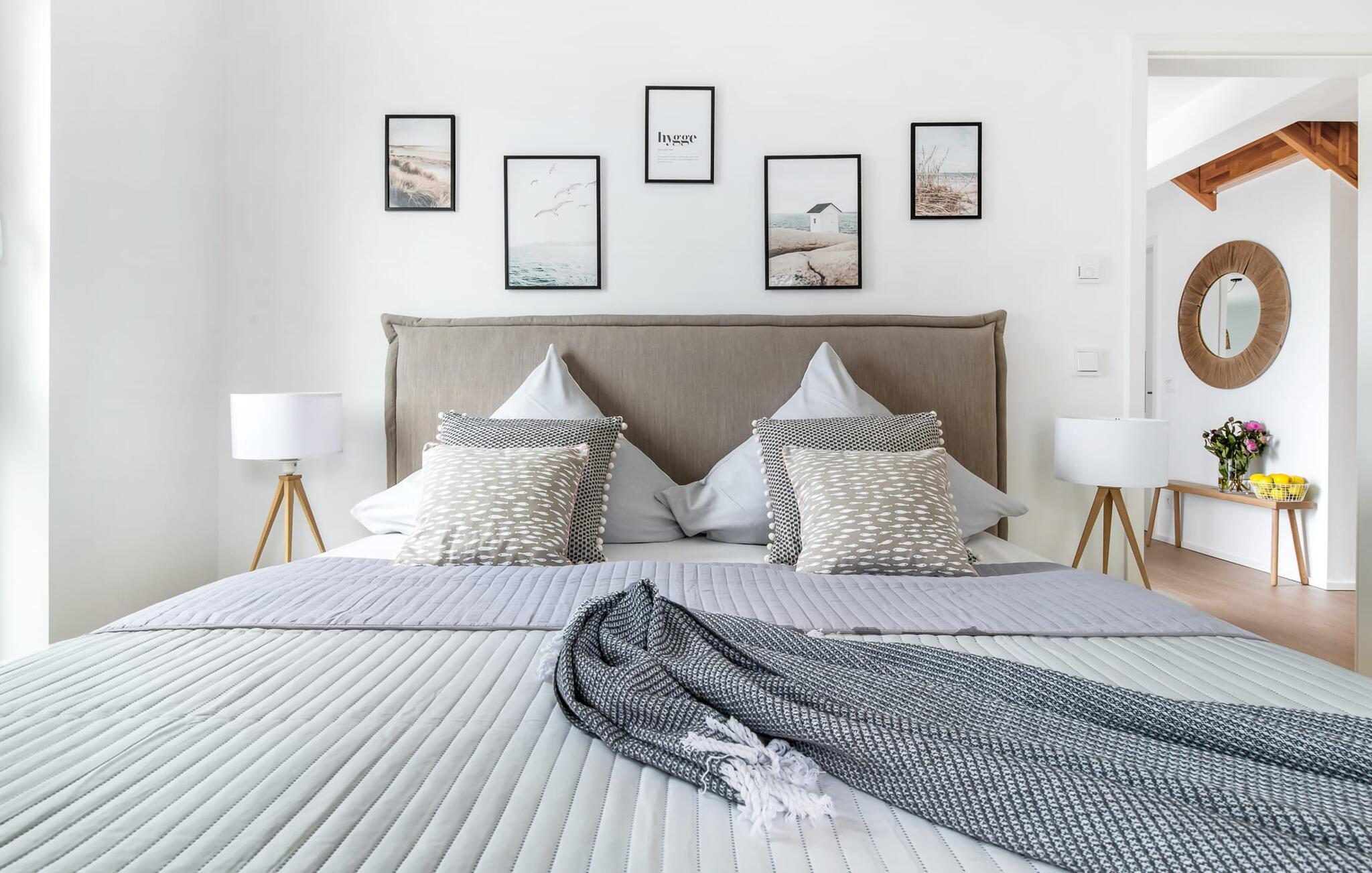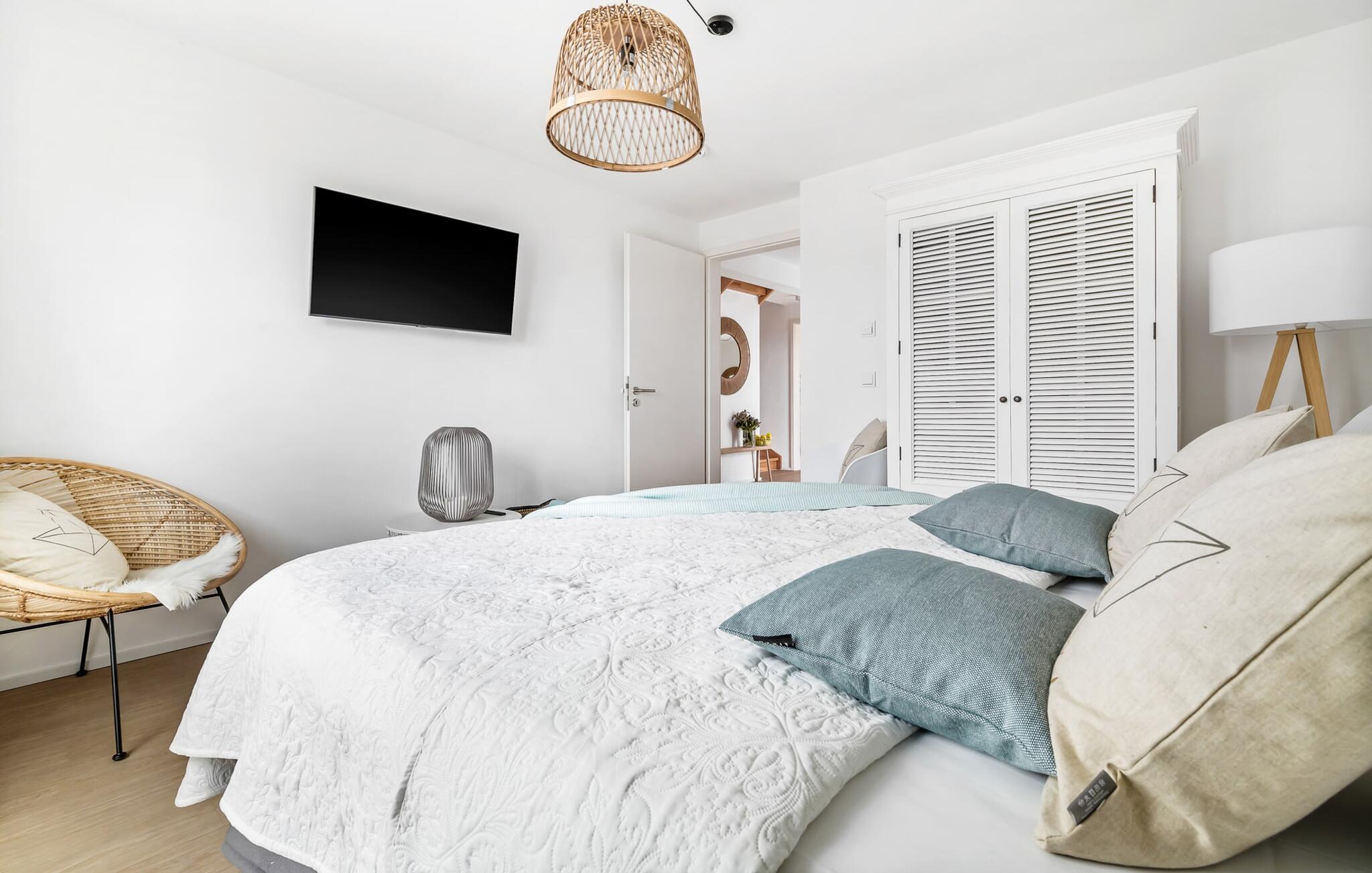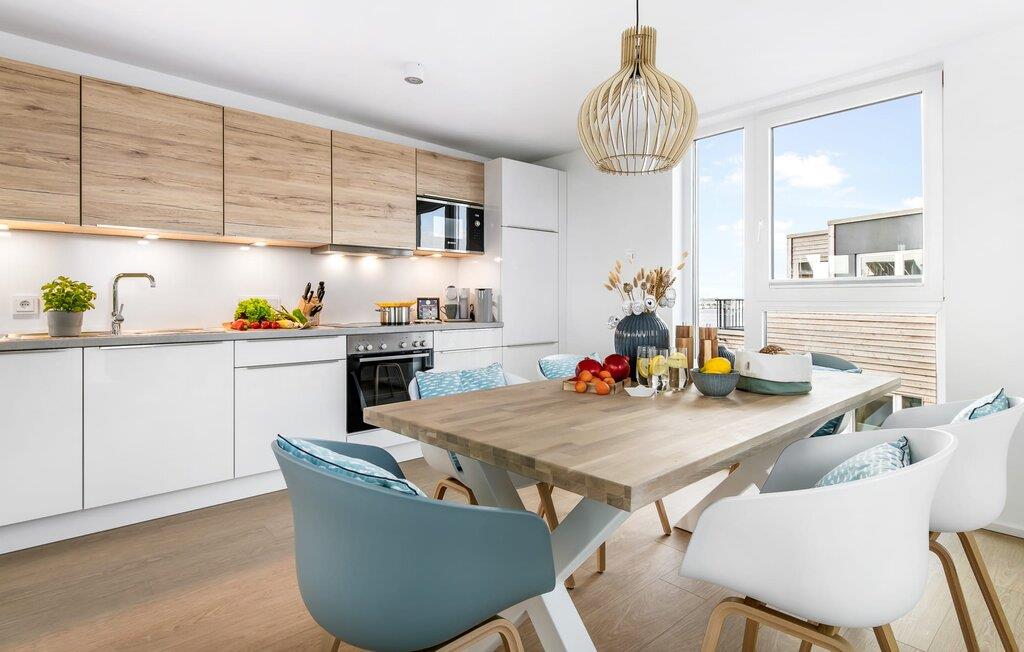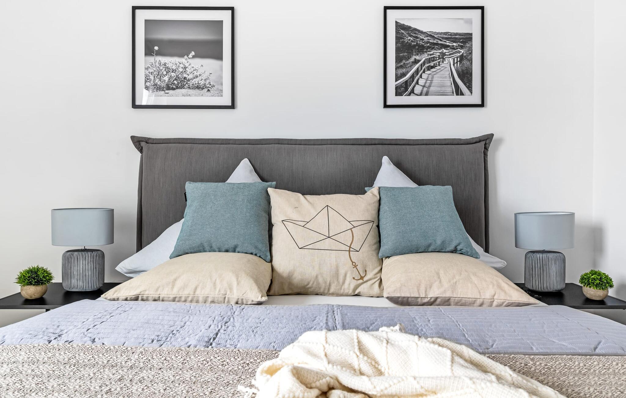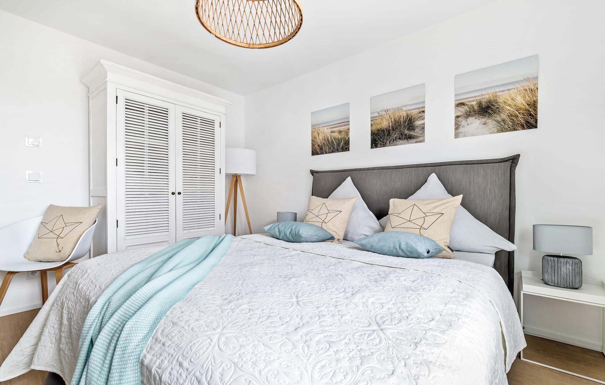 Heimat Loft er en rummelig og rummelig maisonette ferielejlighed på første og anden sal. Med tre soveværelser, en stor terrasse og udsigt over havnen og Østersøen er Heimat Loft den perfekte ferielejlighed til jeres ferie ved Slei og Østersøen med hele familien. Havnepromenaden i OstseeResort Olpenitz med dets voksende udbud og indkøbsmuligheder samt sejl- og sportsbådshavnen i OstseeResort Olpenitz ligger i umiddelbar nærhed af ferielejligheden. Stranden Weidenfelder ligger kun 450 m væk og kan nemt nås til fods fra lejligheden. Den maritime minigolfbane ligger også i umiddelbar nærhed og byder på sjov for hele familien. Heimat Loft giver en feriefølelse med en karakter! Lejlighedens tre soveværelser ligger på første sal, med i alt tre dobbelte boxmadrasser. En 180 cm bred og to 160 cm bred. Uanset hvilket soveværelse I vælger, kan I være sikker på en afslappende søvn. Et af soveværelserne har desuden hjemmekontor og en lille altan med udsigt over havnen. Udover soveværelserne er der også et rummeligt badeværelse med badekar og vaskemaskine, samt et rummeligt depotrum, der også kan bruges som garderobe. Når I ankommer på anden sal, bliver I budt velkommen af vinduesfronten fra gulv til loft med en tilstødende terrasse. De lyse værelser, indrettet med sans for detaljer, en hyggelig opholdsstue og pejsen skaber en atmosfære. Her siger navnet det hele, og I føler jer straks hjemme! Det åbne køkken-alrum er indrettet til høj standard og sikrer sjov madlavning sammen med udsigt til havnen også på ferie. I har adgang til den store, delvist overdækkede terrasse med syd-vest orientering og en flot udsigt over ferieparken mod Østersøen direkte fra opholdsstuen eller køkkenet. Der er et terrassebord og, for en ægte Østersø-feriestemning, en strandstol og en elektrisk grill til jeres rådighed. Her kan I tilbringe afslappende timer i solen hele dagen og se fantastiske solnedgange. Et andet komplet badeværelse med wellnesskarakter, en rummelig panoramabruser på gulvniveau og infrarød sauna afrunder hele pakken ideelt til en afslappende ferie. Der er også tænkt på de små: Ud over højstol og rejseseng har lejligheden også strandlegetøj til børnene. I finder jeres egen parkeringsplads foran ferielejligheden. Vores favoritsted: Efter sol, strand og sjov, afslutte dagen med en hyggelig grillaften og en vidunderlig solnedgang på terrassen... Bemærk venligst: OstseeResort Olpenitz er meget populært, og der bygges fortsat i parken. Ikke desto mindre kan I se frem til en 5-stjernet standard og et førsteklasses ophold. Byggeaktiviteterne kommer ikke til at forstyrre jer på ferien, og derfor gives der ikke yderligere afslag i prisen.