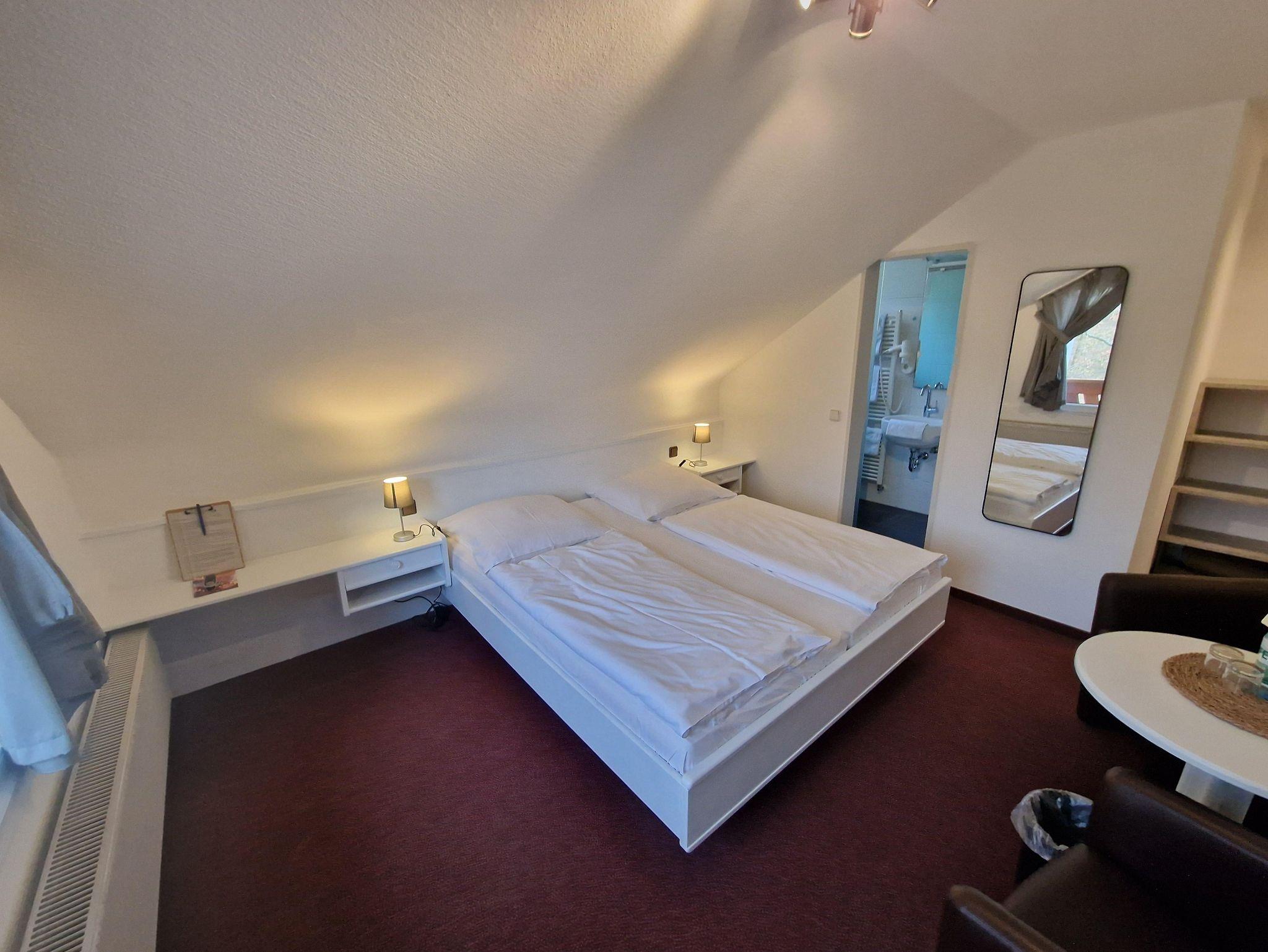 Doppelzimmer mit Dusche/ WC und Balkon zur Südseite