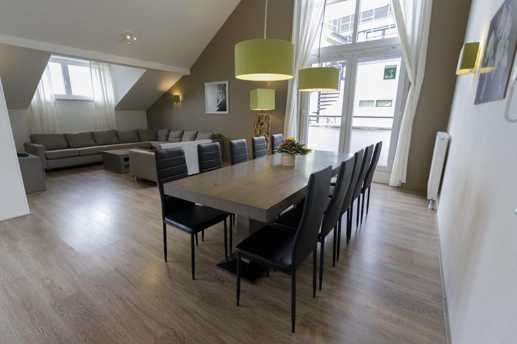 Elegant Wellness-opholdssted Denne rummelige penthouselejlighed på Eifeler Tor Resort tilbyder den perfekte balance mellem moderne komfort og afslapning. Nyd hyggelige aftener i den stilfulde opholdsstue, komplet med et åbent køkken til fælles måltider. Træd ind i dit private wellness-område med en forfriskende sauna og jacuzzi, eller benyt dig af resortets fælles indendørs og udendørs pools. Familier er godt passet på med legeredskaber og en høj stol, mens kæledyr er velkomne - ideelt for gæster, der nyder at rejse med deres pelsede venner. Natur og kultur i nærheden Penthouselejligheden er omgivet af Nordrhein-Westfalens skønhed og ligger få skridt fra Eifel Nationalpark, et paradis for vandreture, cykling og hundevenlige stier langs den naturskønne Rursee-sø. Besøg det middelalderlige Heimbach Slot for et strejf af historie, eller udforsk Rur-dæmningen og dens panoramiske udsigtspunkter. Dagsture til Monschaus charmerende bindingsværkshuse eller byen Aachen med dens UNESCO-listede katedral giver uforglemmelige kulturelle oplevelser. Middag og lokale smagsoplevelser Regionen er rig på kulinariske lækkerier. Inden for gåafstand kan gæsterne nyde solid tysk mad på Restaurant Heimbacher Brauhaus eller spise ved søen på Haus am See med regionale specialiteter og en fantastisk udsigt. For en mere eksklusiv oplevelse tilbyder Der Seehof Rursee udsøgt mad med udsigt over vandet. Mange lokale steder er kæledyrsvenlige, perfekte til at nyde et måltid efter at have udforsket stierne. Bemærk: På Dormio Resort Eifeler Tor vil den indendørs swimmingpool være lukket fra mandag den 17. november til torsdag den 20. november 2025. Årsagen til denne lukning er det årlige vedligeholdelsesarbejde. Fredag morgen den 21. november vil den indendørs swimmingpool være tilgængelig for gæster igen. Turistskat er 9% af lejeprisen, der skal betales i parken.