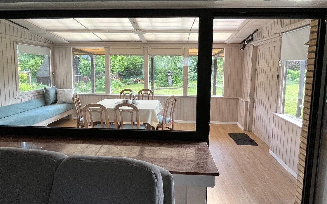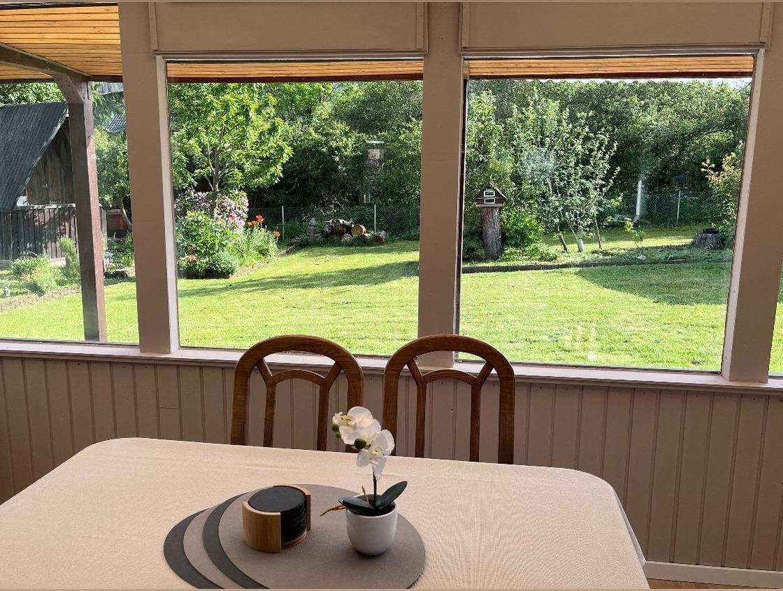 Das komplett renovierte Ferienhaus verfügt über zwei neu eingerichtete Schlafzimmer mit großen, gemütlichen Boxspringbetten sowie ein gemütliches Wohnzimmer mit integrierter Essecke und Küchenzeile. Der an das Wohnzimmer anschließende Wintergarten bietet Raum zum Relaxen oder für das gesellige Beisammensein. Von hier aus blickt man auf den großen Garten sowie auf die Höhenzüge des Nationalparks. Neben dem Bad verfügt das Haus zusätzlich über ein separates Gäste-WC.