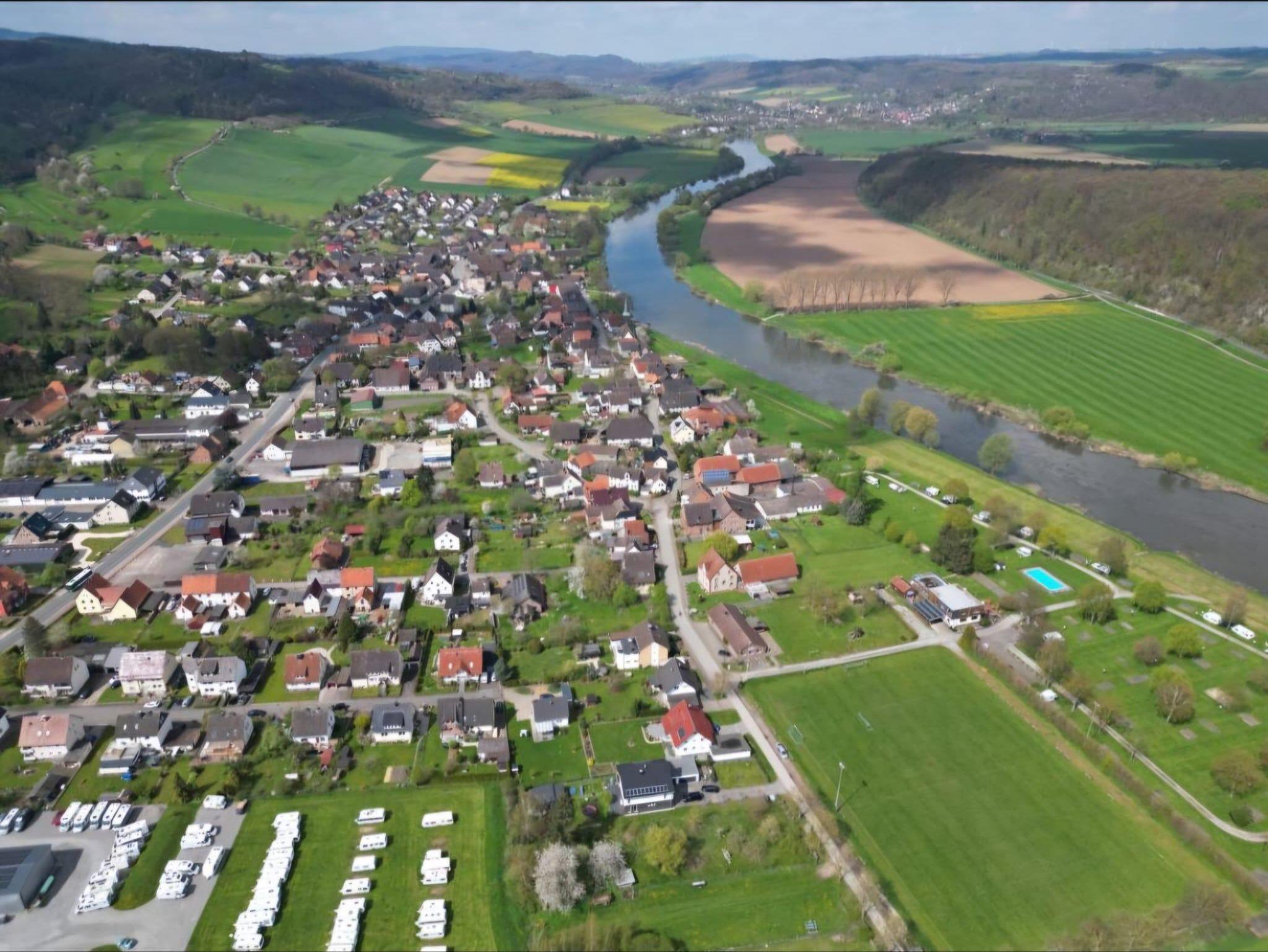 Lage: Die Ferienwohnung ist direkt an der Weser und am Radweg zwischen Holzminden und Hameln in dem ehemaligen Fischerdorf Heinsen gelegen.
