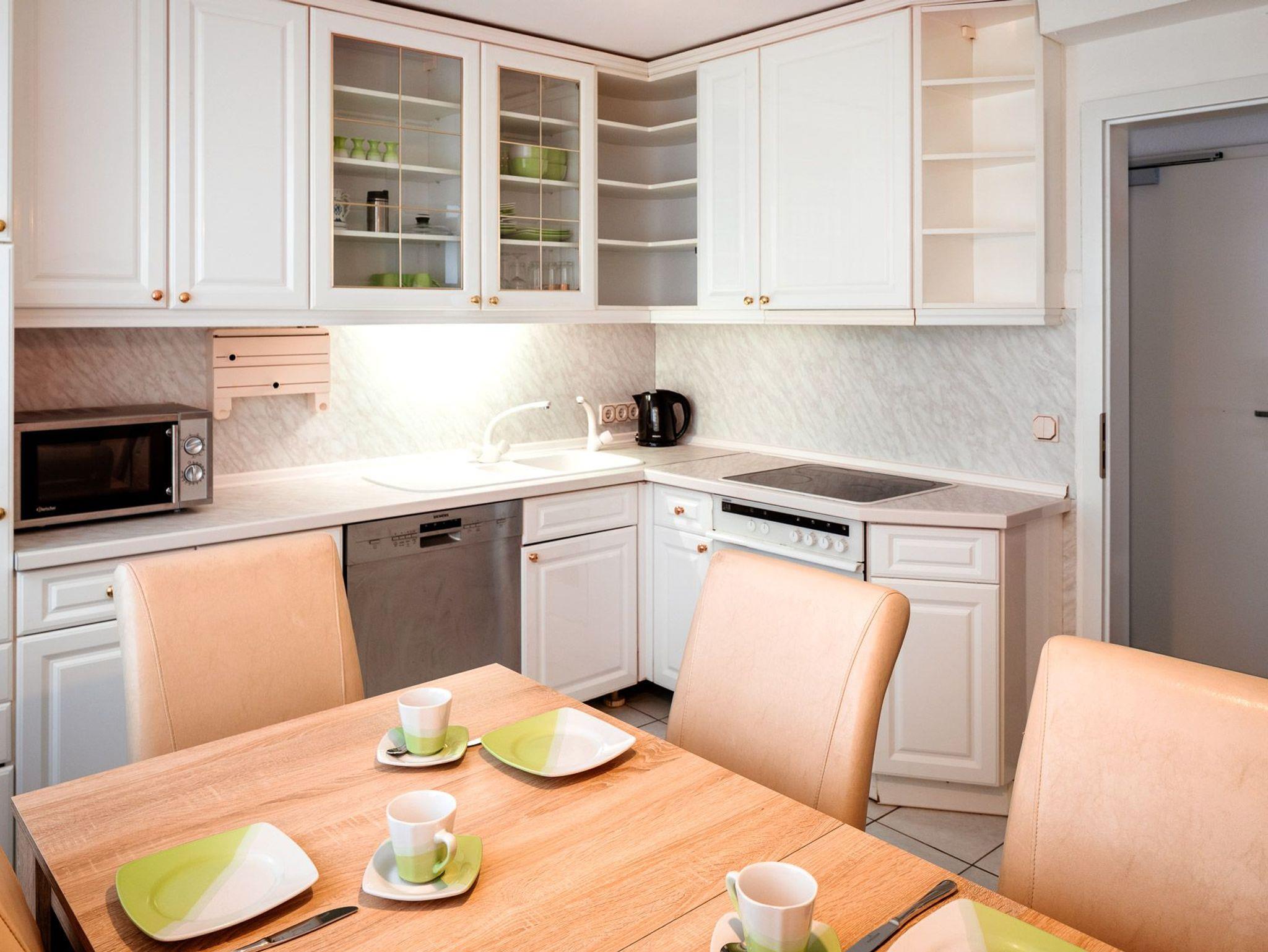 Die Ferienwohnungen verfügen über Pantry-Küchen, Flat-TV und kostenloses W-LAN. Selbstverständlich dürfen Sie eine Kaffeemaschine, einen Wasserkocher, einen Fön und Bettwäsche voraussetzen.