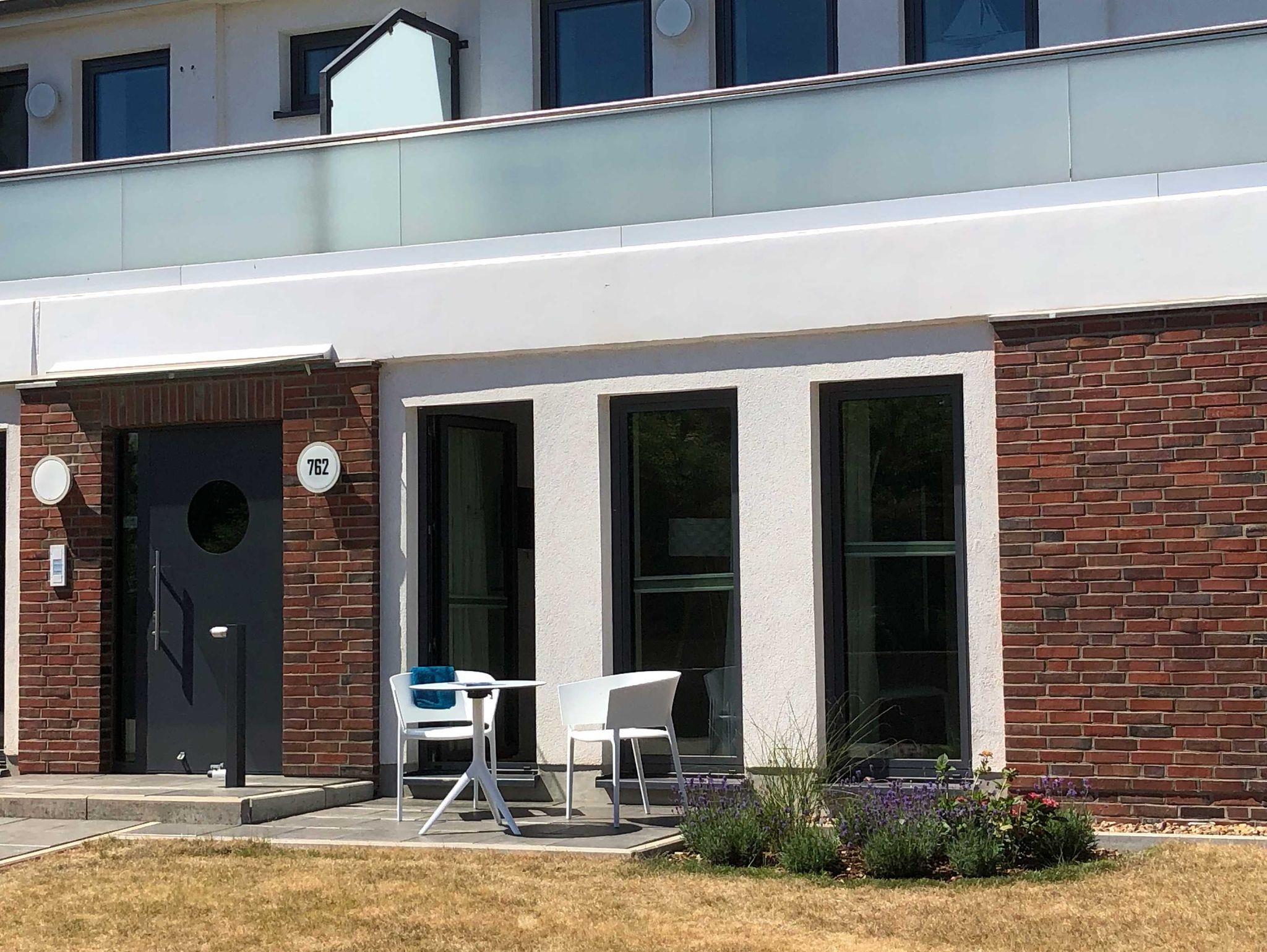 Die luxuriöse Wohnung hat ca. 55 qm Wohnfläche und befindet sich im Erdgeschoss. Der Wohnbereich mit offener, komplett ausgestatteter Küche und Essplatz hat einen Zugang zur Terrasse und einen unverbauten Blick auf die Nordsee und das grüne Oberland. Eine zweite Terrasse befindet sich auf der südlichen Sonnen-Seite der Wohnung.