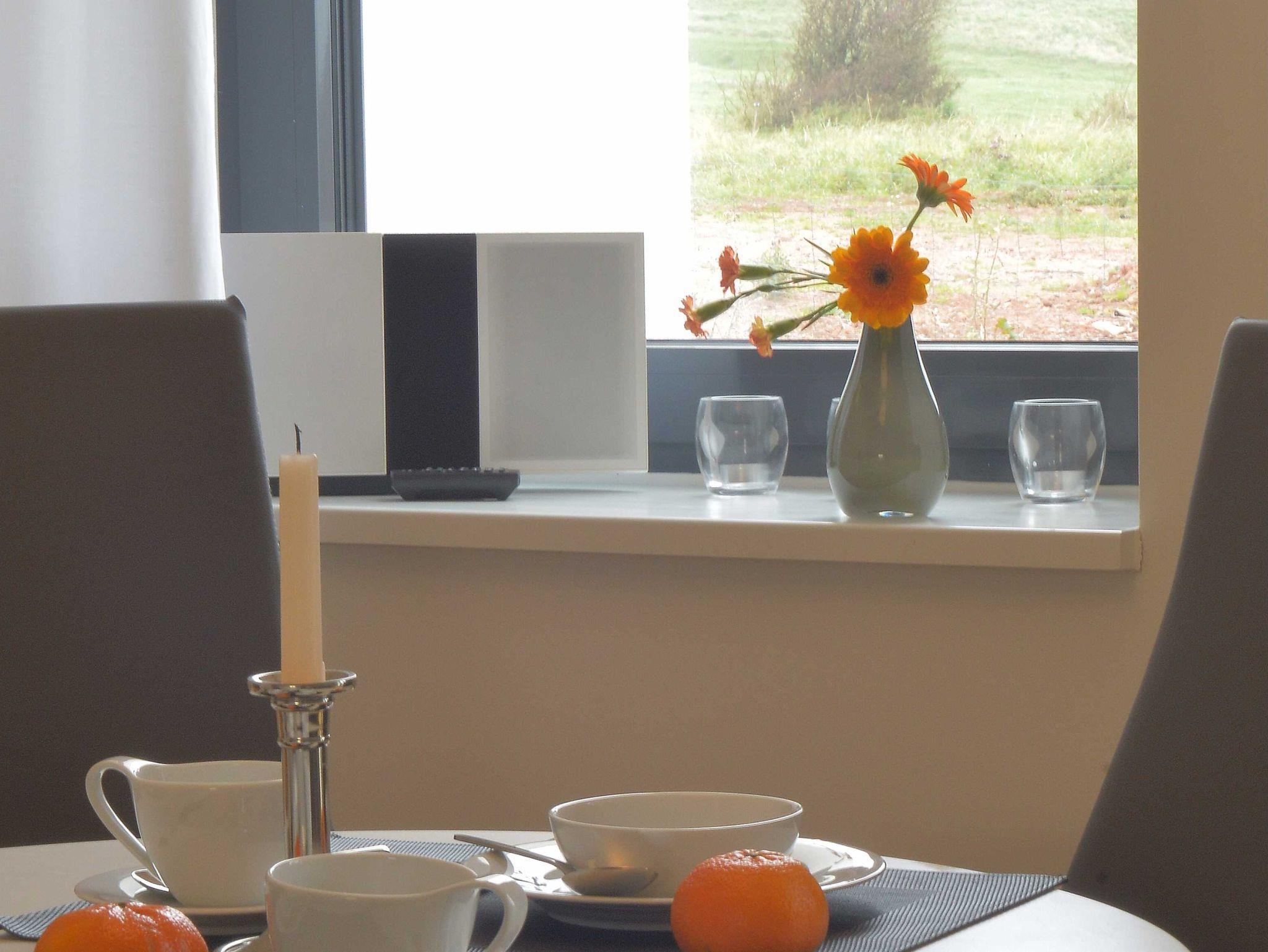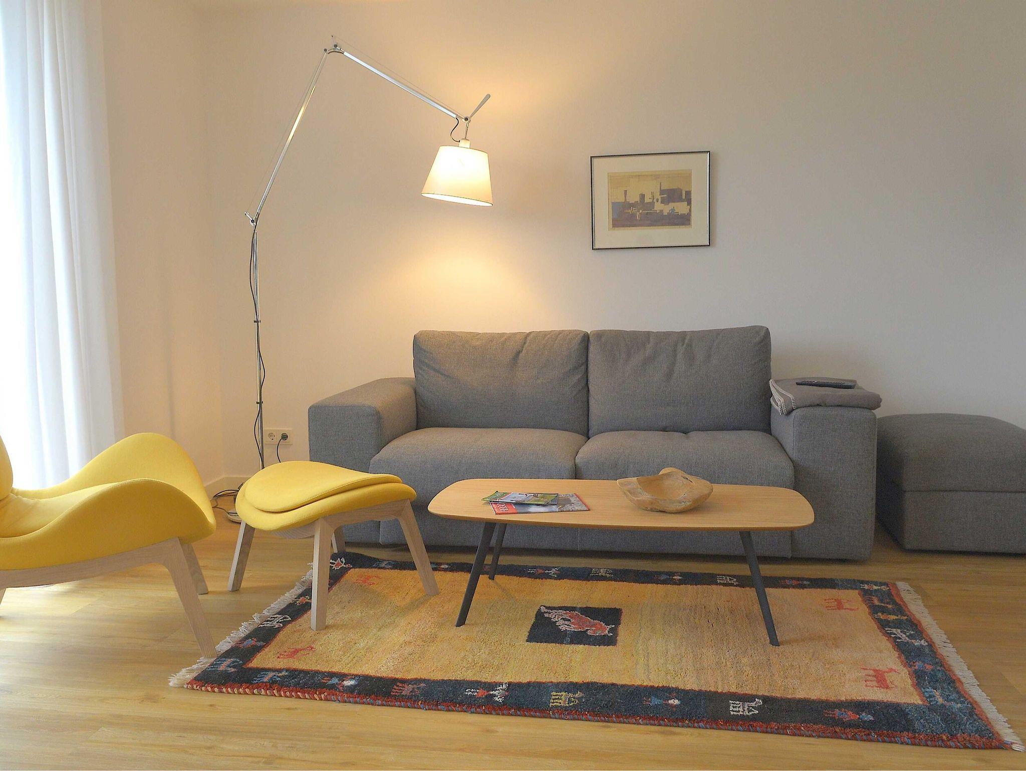 Die luxuriöse Wohnung hat ca. 55 qm Wohnfläche und befindet sich im Erdgeschoss. Der Wohnbereich mit offener, komplett ausgestatteter Küche und Essplatz hat einen Zugang zur Terrasse und einen unverbauten Blick auf die Nordsee und das grüne Oberland. Eine zweite Terrasse befindet sich auf der südlichen Sonnen-Seite der Wohnung.