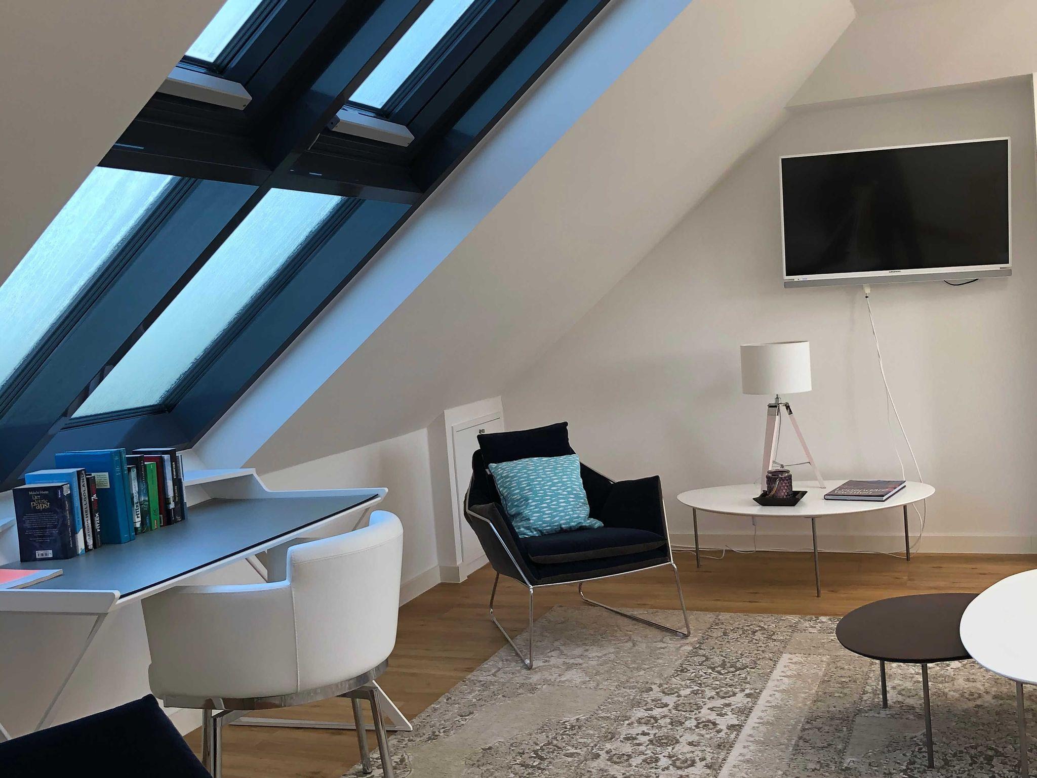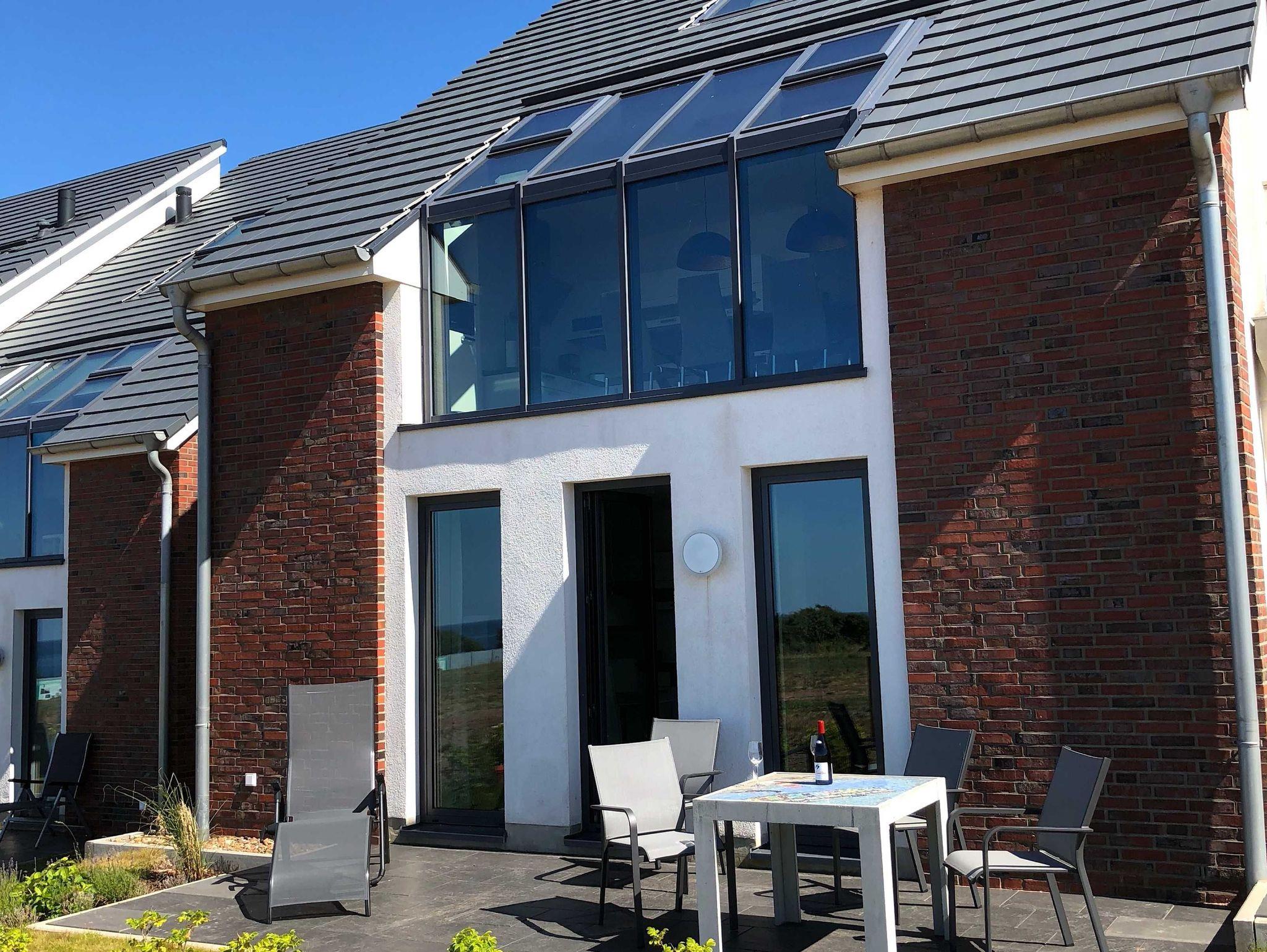 Die luxuriöse Wohnung hat ca. 79 qm Wohnfläche und verfügt in der unteren Etage über eine komplett ausgestattete Küche mit Geschirrspüler, einen großzügigen Essbereich mit Blick auf das Meer und ins Grüne, gestaltet wie ein Wintergarten. Bad mit Dusche und WC, (Waschmaschine und Trockner), Schlafzimmer mit einem komfortablen Doppelbett. Im Studio in der oberen Ebene befindet sich ein Wohn/Schlafbereich (ein Schlafplatz) mit Blick auf die Nordsee durch das Panoramadachfenster und Zugang zur Dachterrasse mit Blick auf den Leuchtturm, das Oberland und die Düne. WLAN, TV (3 x) und Radio/Dockingstation stehen zur Verfügung. Bettwäsche und Handtücher sind inklusive und werden bei längeren Aufenthalten gewechselt.