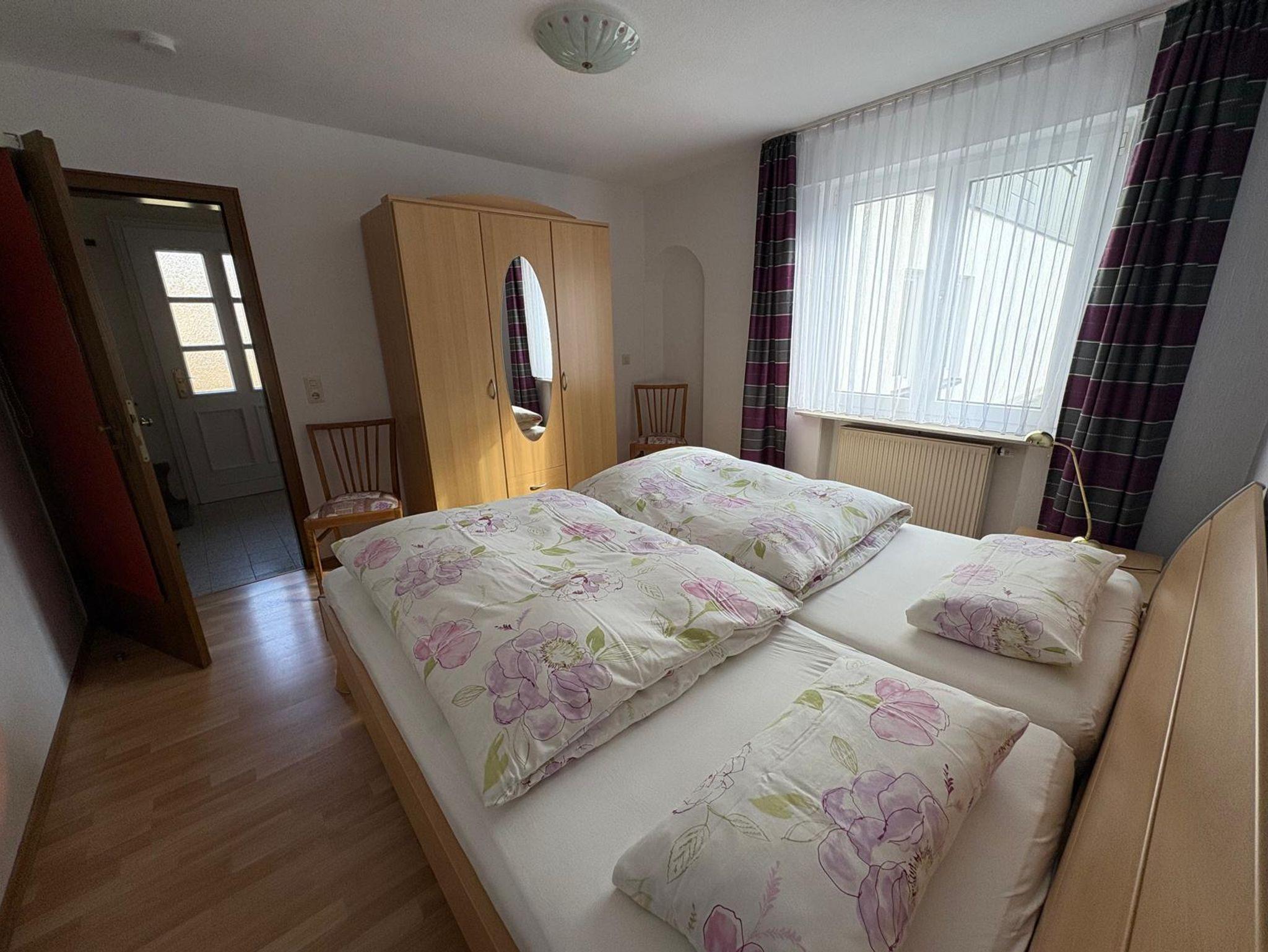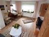 Ca. 60 qm große Fereinwohnung mit einer kleinen Küche, Essecke, Wohnzimmer mit Schlafcouch, 1 Schlafzimmer, Dusche mit WC, abschließbarer Garage für Fahrräder und Motorräder, Parkplatz am Haus und kleinem Balkon.