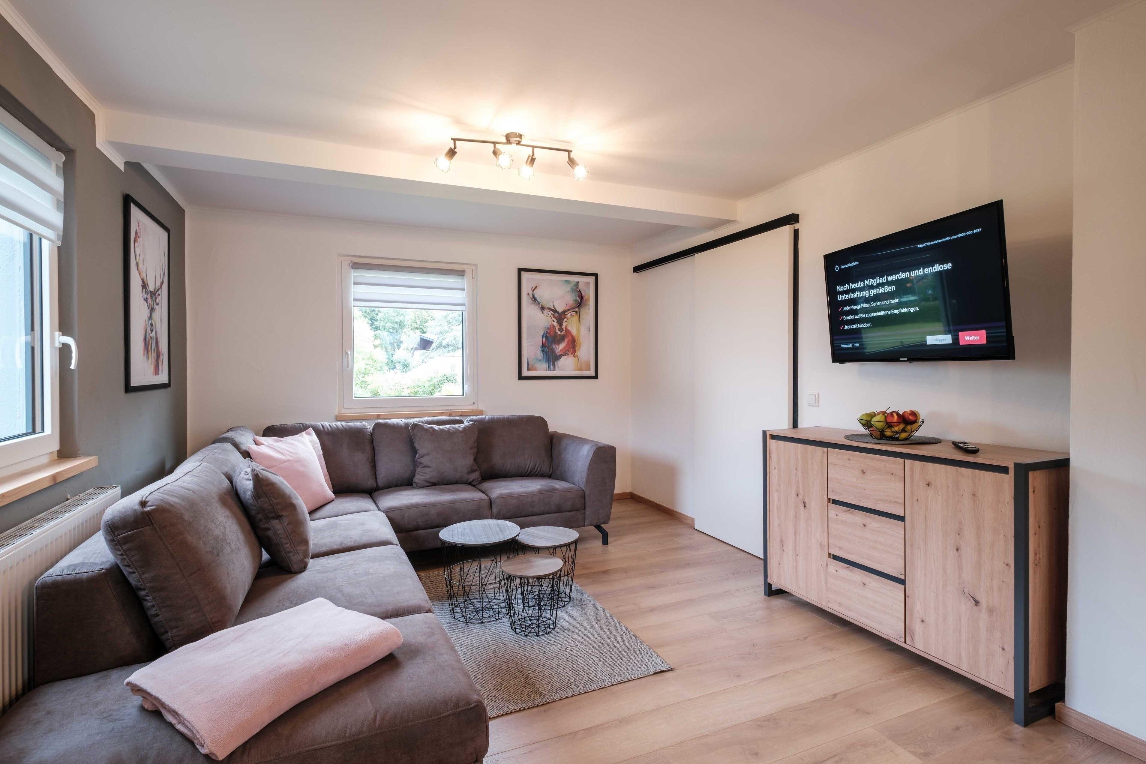 Entdecken Sie unser gemütliches und modern eingerichtetes Ferienhaus in zentraler Lage im schönen Eifel Ort Blumenthal für 8 Personen. 3 Schlafzimmer: 2 Doppelbetten, 2 Einzelbetten, 1 Etagenbett. 2 Badezimmer, 2 Wohnzimmer mit Smart-TVs, Gesellschaftsspielen und Spielzeug für Kinder. Vollausgestattete Küche, Parkplatz für Fahrräder. Großer Garten mit Terrasse zum Grillen und Entspannen. Idealer Ausgangspunkt für Wander- und Radtouren. Sehenswürdigkeiten wie Wildgehege Hellenthal, Grube Wohlfahrt, Burg Reifferscheid in der Nähe. Alle Annehmlichkeiten wie Supermarkt, Bäcker und Apotheke befinden sich im Ort. Inklusive Endreinigung, Bettwäsche, Handtücher und Küchentücher. Bitte beachten Sie, dass Partys jeglicher Art im Haus und auf dem Gelände nicht gestattet sind; wir sorgen für eine ruhige und erholsame Atmosphäre. Starten Sie Ihren unvergesslichen Eifel-Urlaub bei uns!
