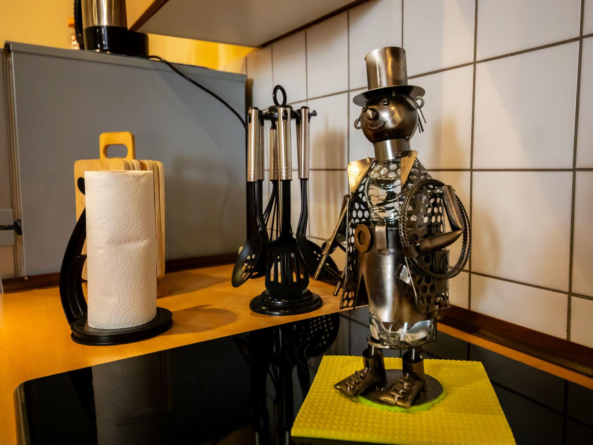 1-room apartment 45 m2 on 2 levels on 1st floor. Living/sleeping room with 1 double sofabed and satellite TV (flat screen). Exit to the terrace. Open kitchen (oven, dishwasher, 4 ceramic glass hob hotplates, microwave, electric coffee machine) with dining table. On the lower ground floor: (steep stair), without window. Shower/WC. Facilities: Internet (WiFi, free). Please note: non-smokers only. Maximum 2 pets/ dogs allowed. Private entrance, smoke alarm, fire extinguisher. The open kitchen is accessed via 3 steps from the living room / bedroom. The stairs leading to the lower floor with the shower / WC is a recessed open staircase . Bicycles storable under terrace.