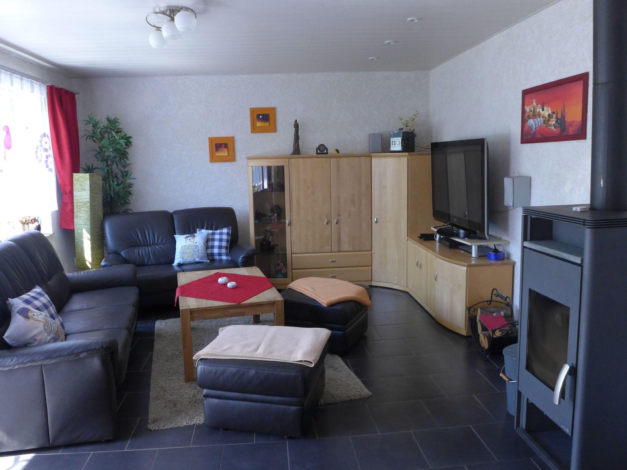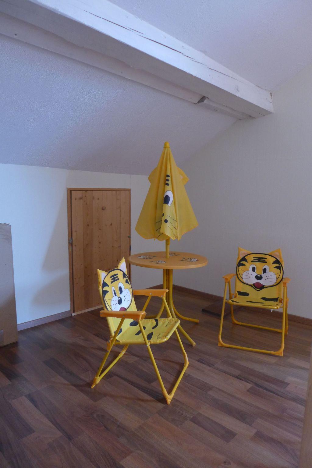The house was modernised and charmingly newly furnished for the 2012 season. The five-room house on two floors is a 120m² wellness oasis where up to 8 people can leave everyday life far behind. The living room has a cosy sitting corner and a fireplace stove for relaxing hours, satellite TV, a DVD player, a stereo system and access to the terrace. The fully-equipped and open built-in kitchen with access to the roofed terrace is open towards the modern dining room and invites you to cook. It is equipped with a ceramic hob, oven, microwave, dishwasher, fridge and freezer, coffee machine, pads machine, toaster, wok and fondue set. The dining space has an extendable dining table that can be used for a sociable games evening. Four bedrooms are available in total, two on the ground floor and two in the attic, with two double beds and four single beds. The bathroom is light and spacious and includes a shower, washbasin, WC, washing machine and dryer. There is a separate WC with a washbasin. The spacious hallway with stairs to the attic provides plenty of space for coats and shoes.