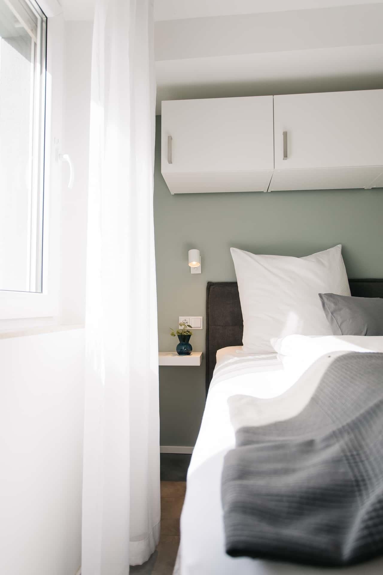 Unsere im modernen offenen Stil neu eingerichtete, lichtdurchflutete "Ferienwohnung No. 3" bietet auf ca. 20 qm reichlich Platz für 1 - 2 Erwachsene. Die separate, moderne Mini-Küche (auf Wunsch mit Mikrowelle), das komfortable Bad mit großer bodentiefer Dusche (120x80), das moderne Queensize-Bett (140x200) mit Komforthöhe sowie der unvergleichliche Ausblick lassen Urlaubsfeeling pur aufkommen....
