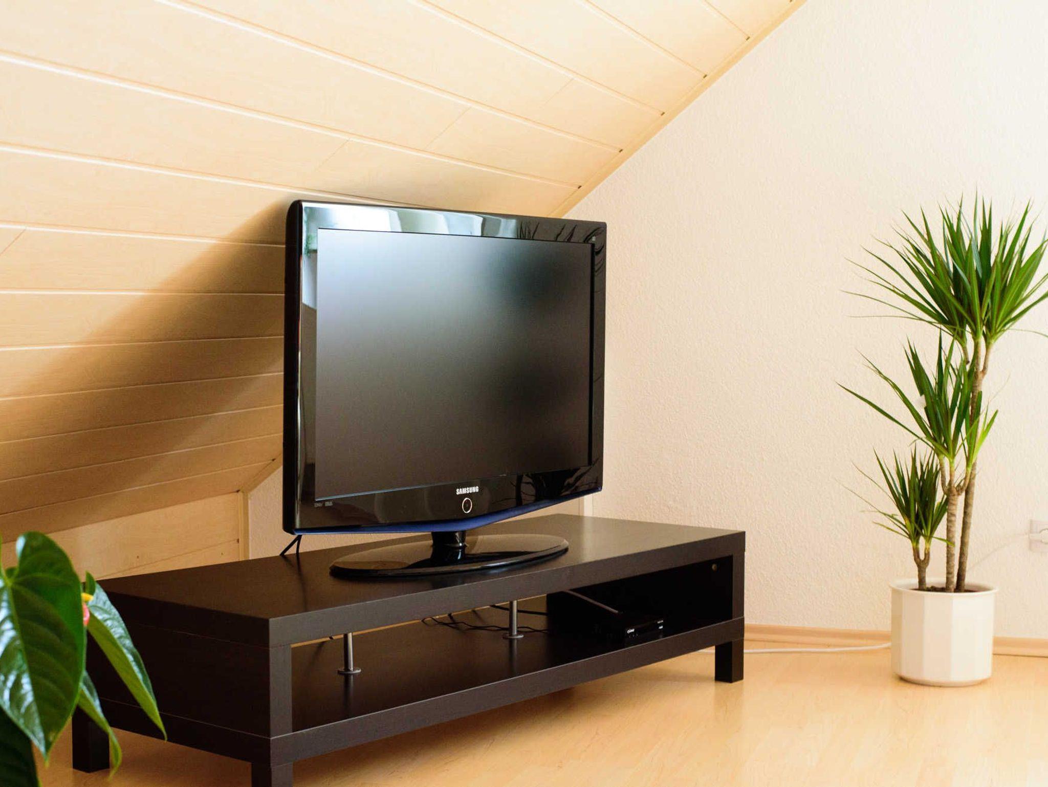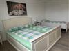 2 Schlafzimmer mit je Doppelbett und ein Einzelbett auf der ersten Ebene und ein Schlafsofa für 2 Personen im Wohnbereich auf der zweiten Ebene. Ein Flachbild-Sat-TV ist im Wohnbereich auch vorhanden.