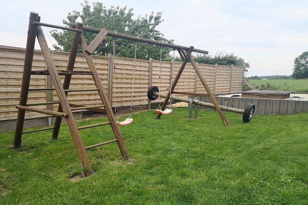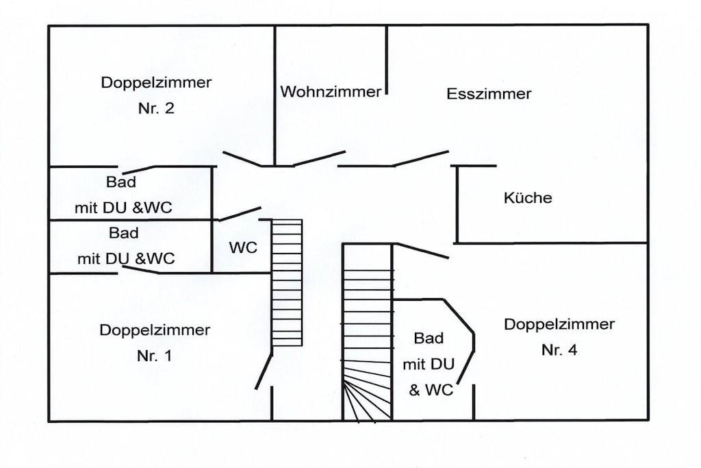 Mellemetage: (drying room(tørretumbler, vaskemaskine, strygebræt, strygejern, tørreskab)) På 1. etage: (Køkken(, , tekøkken, kakkelovn, kogeplade, elkedel, brødrister, kaffemaskine, ovn, mikrobølgeovn, opvaskemaskine , køleskab, fryser), stue / spisestue(, , , bibliotek, Fjernsyn, spisebord, radio, CD-afspiller, legetøj, insektnet), soveværelse(, , enkeltsovesofa, dobbeltseng, Fjernsyn, radio, insektnet), soveværelse(, , enkeltsovesofa, dobbeltseng, Fjernsyn, radio, insektnet), soveværelse(, , dobbeltseng, Fjernsyn, radio, insektnet), badeværelse(, toilet, bruser, bruser, håndvask, føntørrer, insektnet), badeværelse(, toilet, bruser, bruser, håndvask, føntørrer, insektnet), badeværelse(, toilet, bruser, bruser, håndvask, føntørrer, insektnet), guest toilet(, toilet, håndvask)) Loft: (loungemøbler(, , , radio, bordfodbold, insektnet)) , , Internetadgang, Førstehjælp, balkon(balkon), varme, have(, Græsplæne, radio, grill, grill, havemøbler, solstole, sandkasse, Haveskur, Gyngestativ), parkering