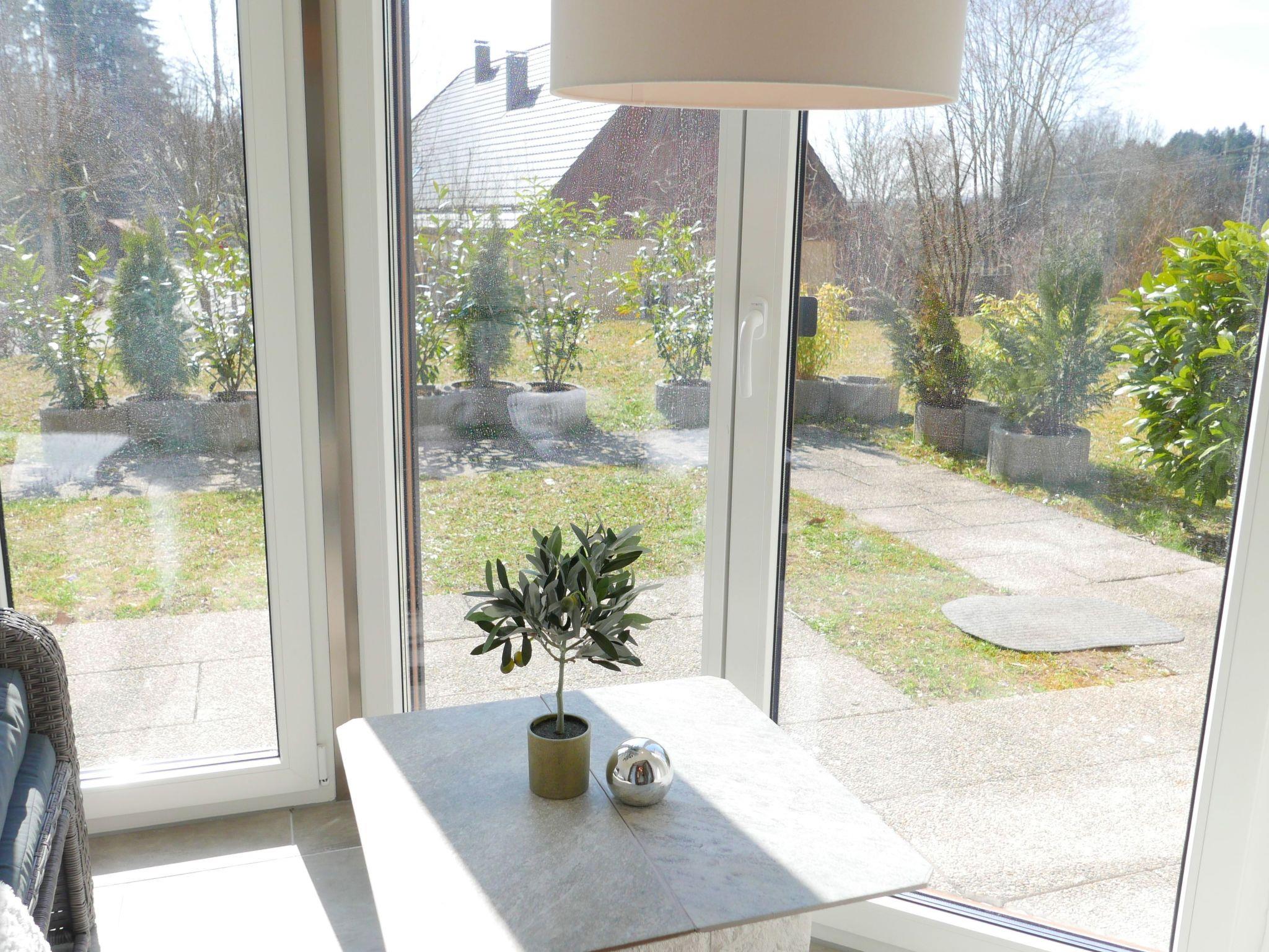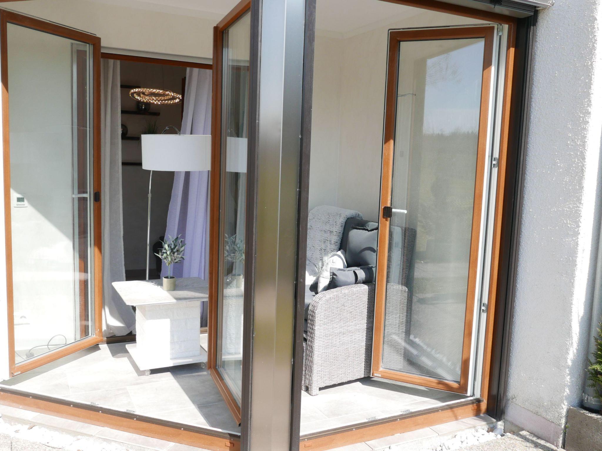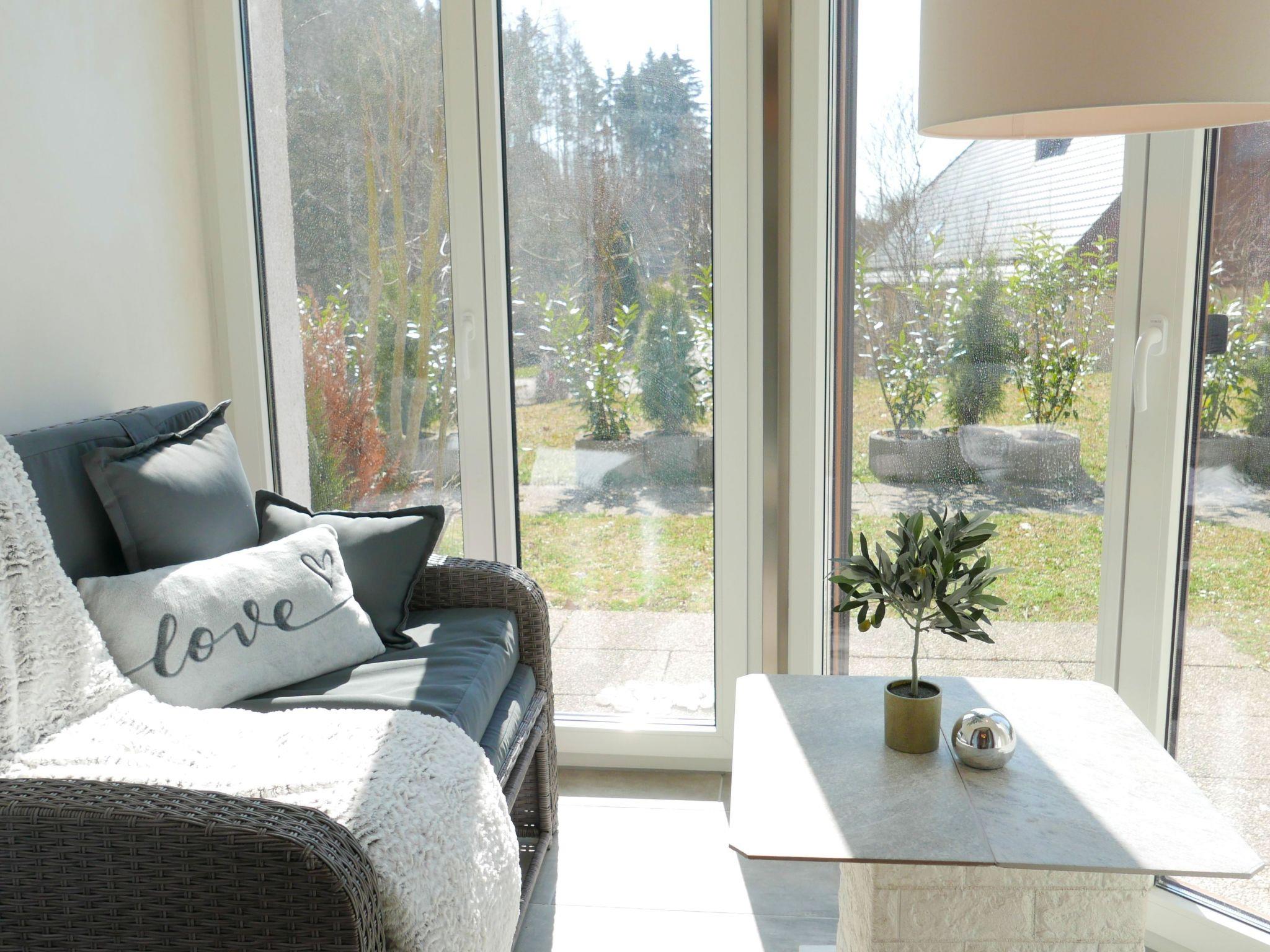 The conservatory was added in 2021. Here you will find a reading corner. Another terrace with a small lawn is located directly in front of the conservatory, The flat was first let in July 2021. It is located between Lake Constance (18km), Lake Ilmensee (15km) and Lake Pfullendorf (7km), on the edge of Kleinschönach in a holiday home area.