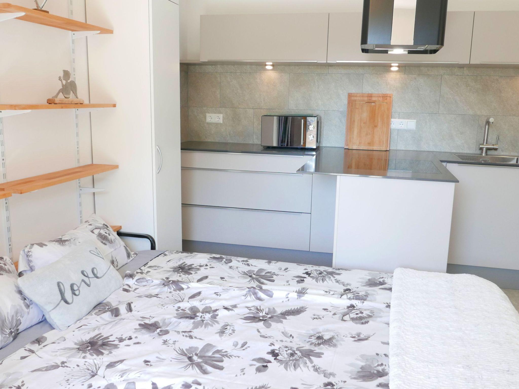 It has its own entrance, 1 bathroom and a living-dining-bedroom.