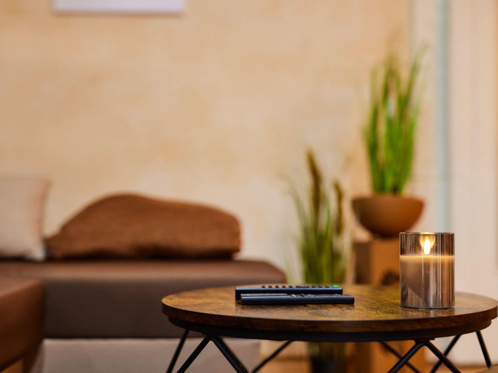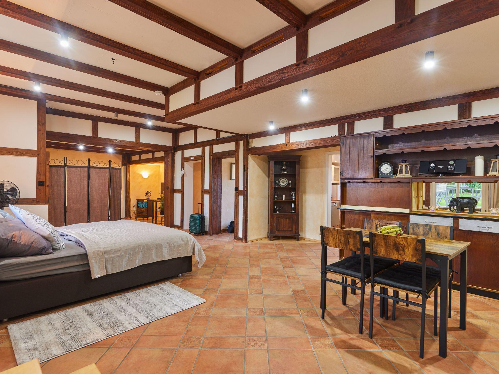 "Pure relaxation" offers guests a sauna for 2 people. Through the large windows you have a direct view of the garden. A high quality box spring bed refines the relaxing time with us. The combination of living and sleeping area delights guests with its beautiful architecture.