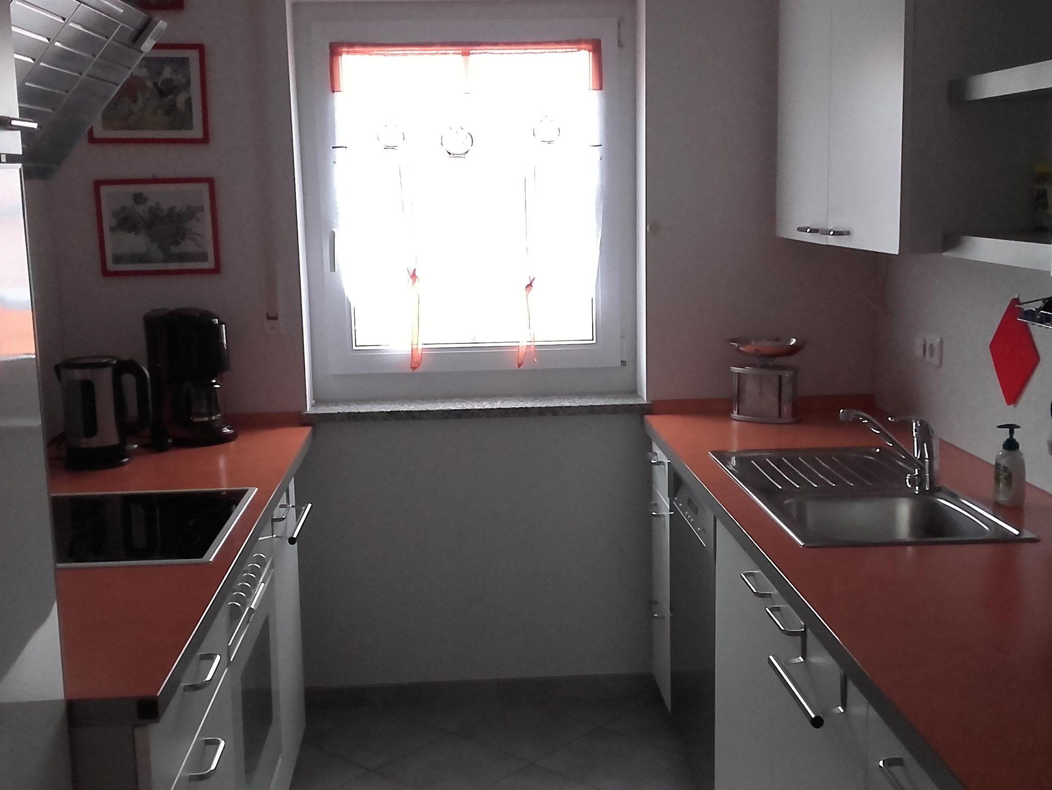 Unsere gemütliche Ferienwohnung ist 82m² groß und verfügt über 2 Schlafräume, ein großes Wohn- und Esszimmer mit Zugang zum Balkon, einer komplett eingerichteten Küche mit Backofen, Geschirrspüler, Kaffeemaschine, Toaster, usw. Großes Tageslichtbad mit Badewanne, Dusche und WC und ein zusätzliches WC.