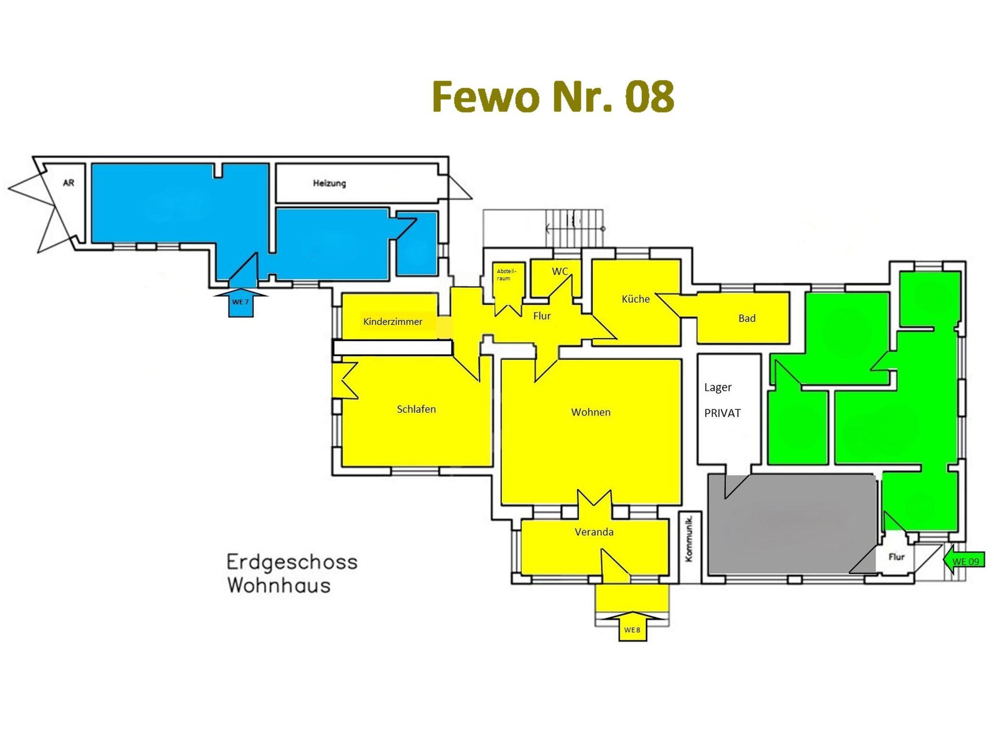 Das App. 8 befindet sich im Erdgeschoss des Hauese mit separatem Eingang und hat mit 98 qm eine optimale Größe für den Familienurlaub. Die Fewo ist für 4 Personen, zzgl. 2 Kleinkinder bis 3 Jahre geeignet.