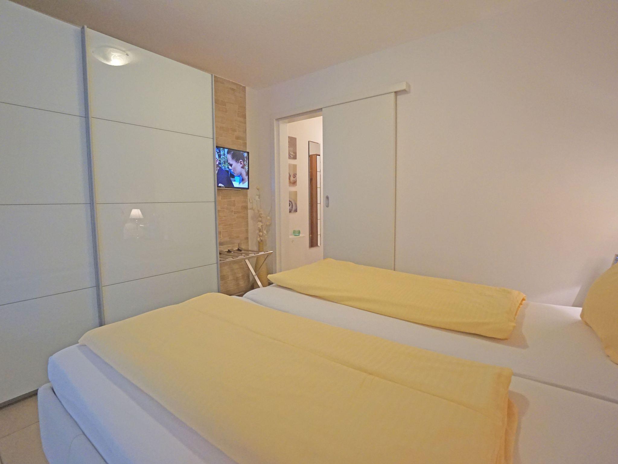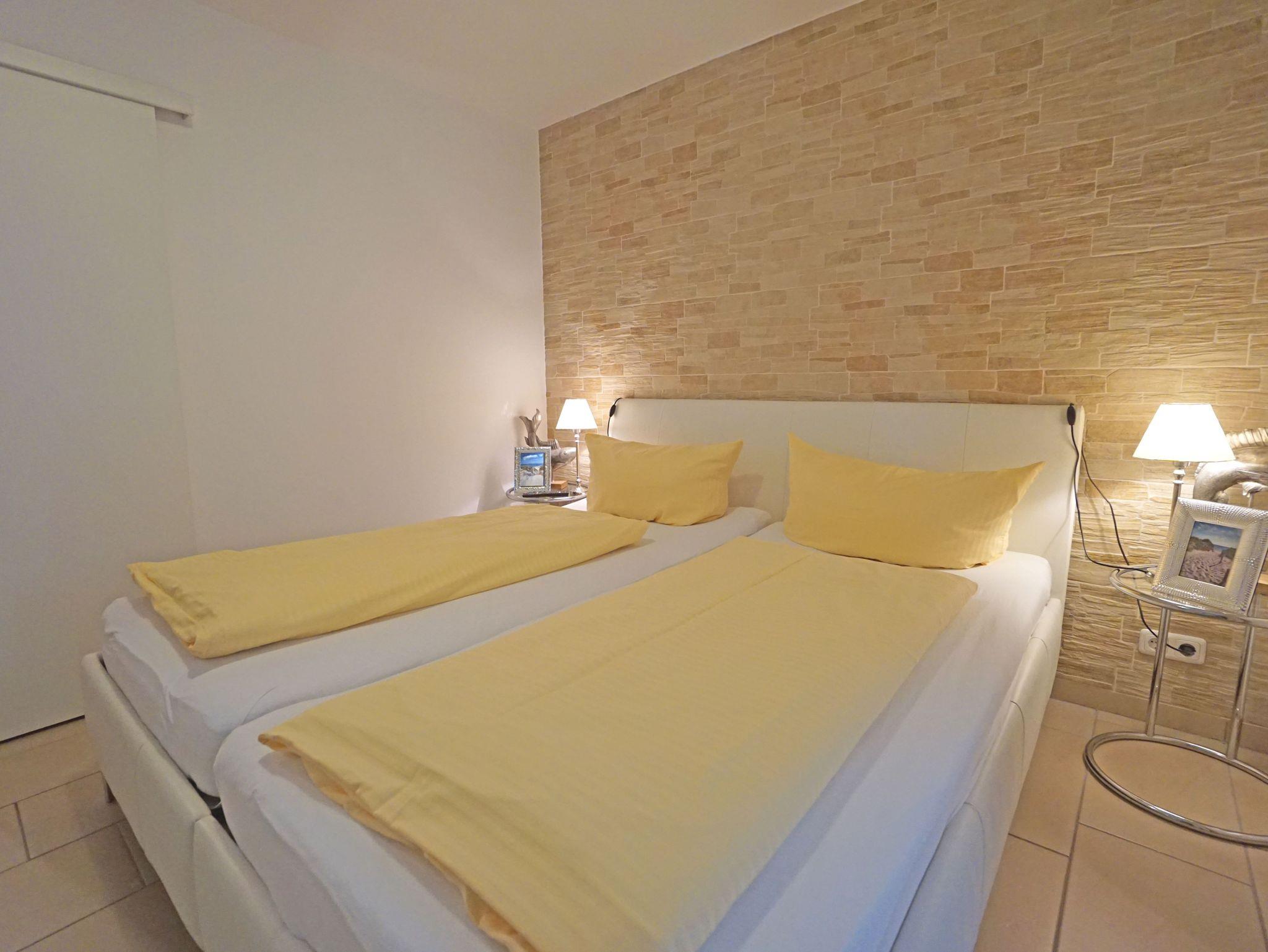 Die Stilvoll eingerichtete 2-Zimmer-Ferienwohnung mit hochwertiger Ausstattung verfügt über drei Balkone. Ein Fahrstuhl im Haus sowie eine Tiefgarage (Stellplätze eng, eingeschränkte Wendemöglichkeit) stehen Ihnen zur Verfügung. Ein kostenfreier WLAN-Zugang kann genutzt werden.