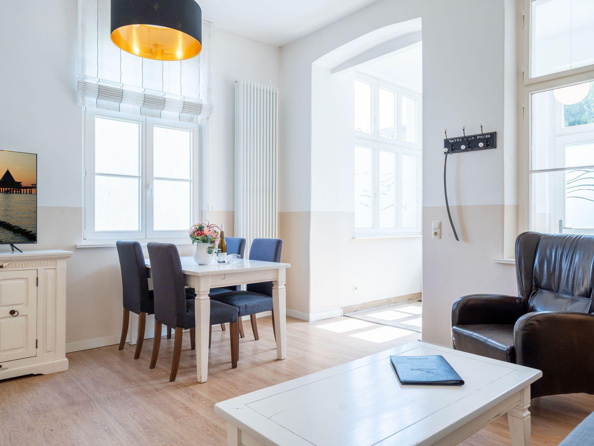 Die Villa Hartmann-Drewitz reiht sich ein in die schönen Häuser der Klenzestraße im Seebad Heringsdorf. Ihre Strandnahe und vor allem zentrale Lage machen sie so beliebt. Die modernen 2- und 3-Raum-Appartements sind komfortabel ausgestattet und bieten teilweise eine Terrasse, einen Balkon oder verglaste Veranden. Ein Urlaubsdomizil für bis zu 4 Personen und ein Kleinkind. Für jede Wohnung steht ein Pkw-Stellplatz am Haus zur Verfügung. Im Keller steht eine Waschmaschine, die gegen Gebühr zu nutzen ist.