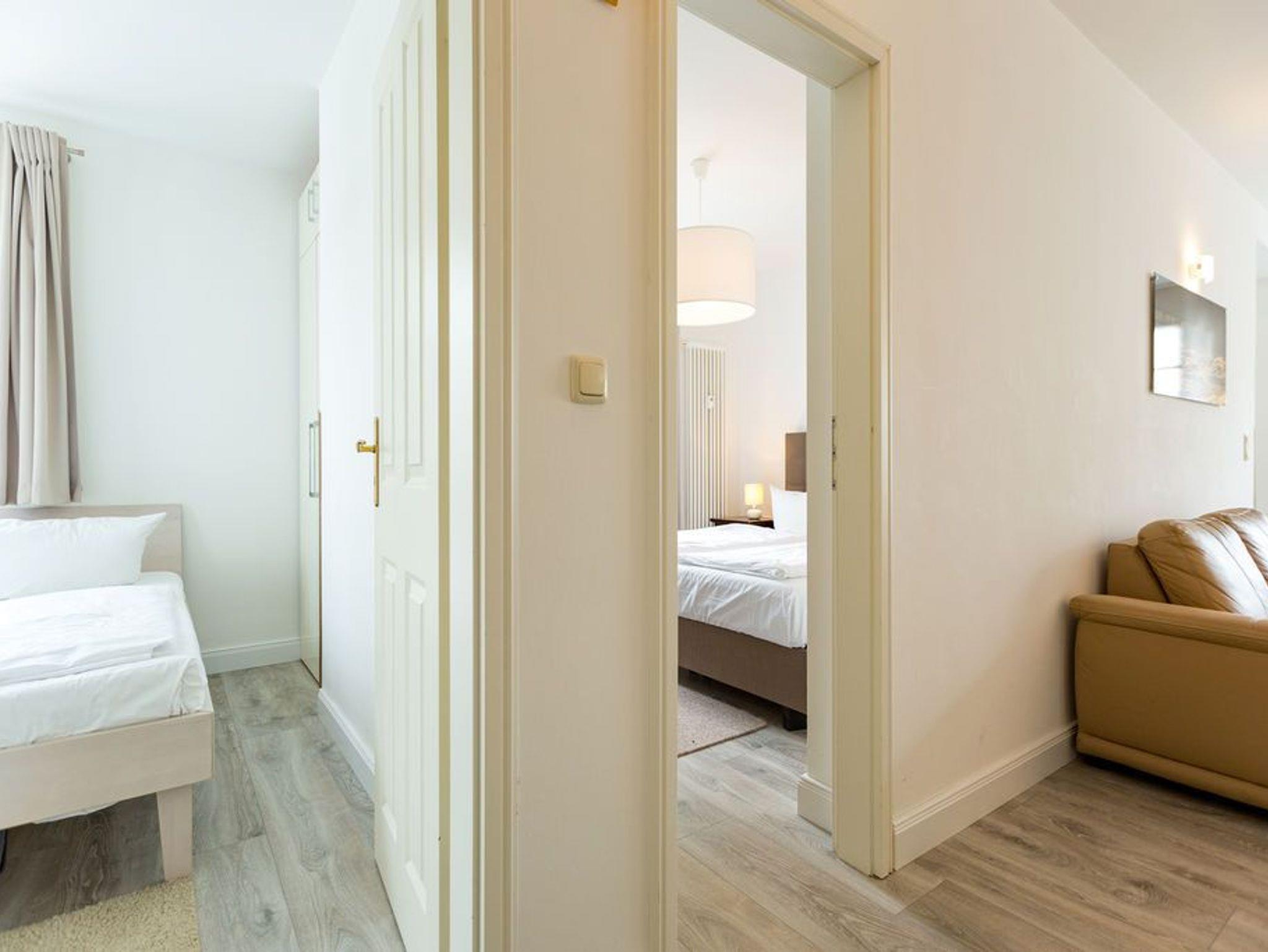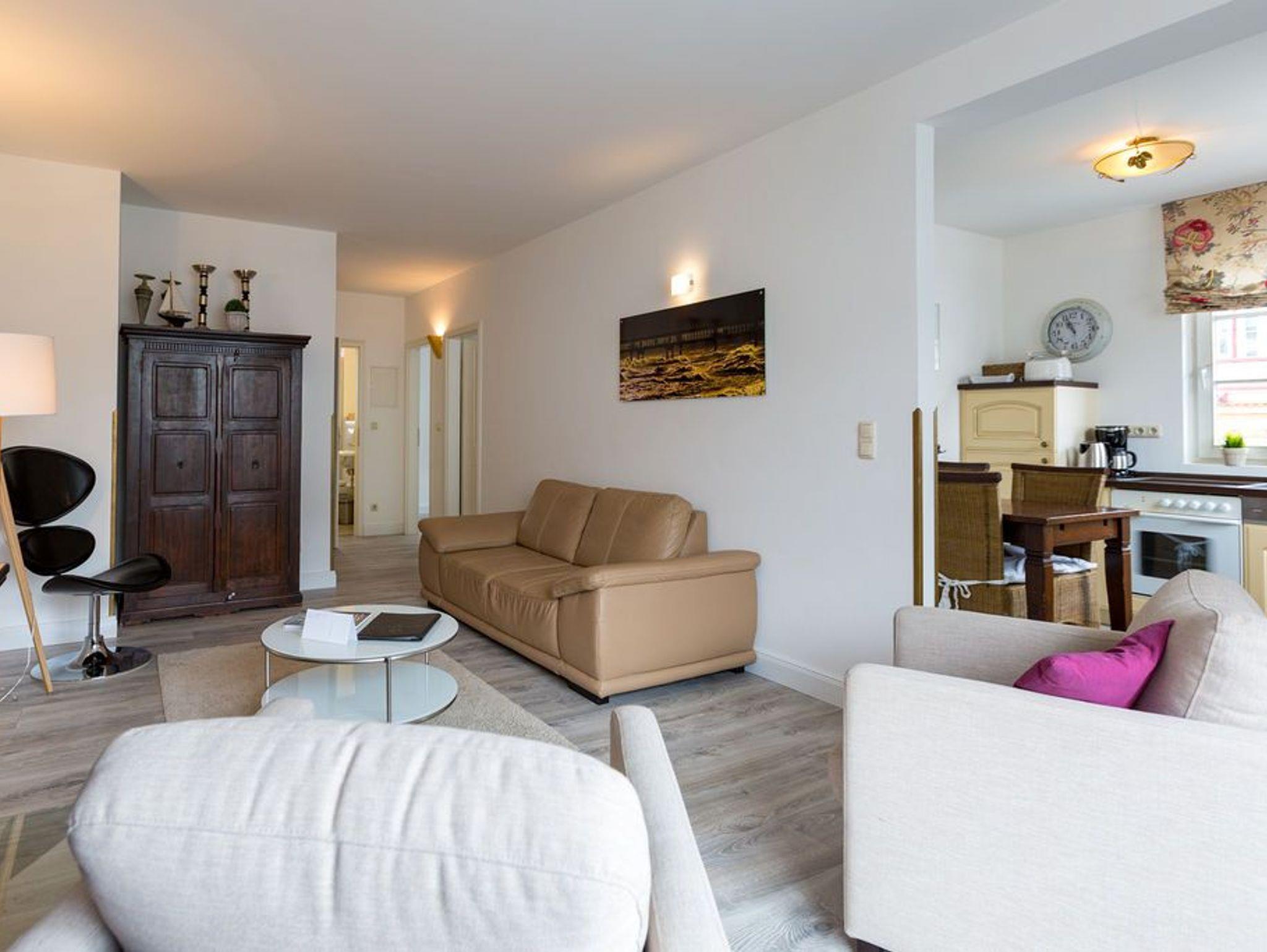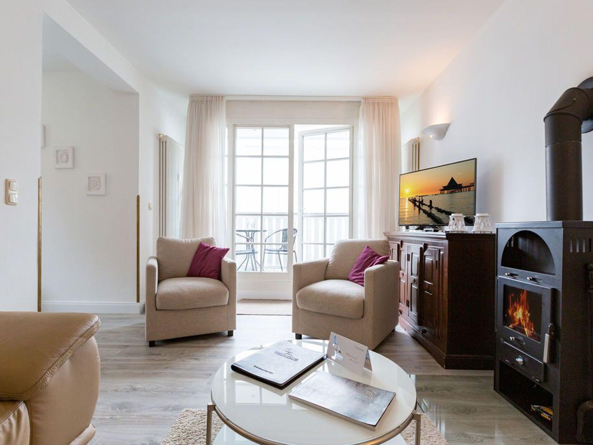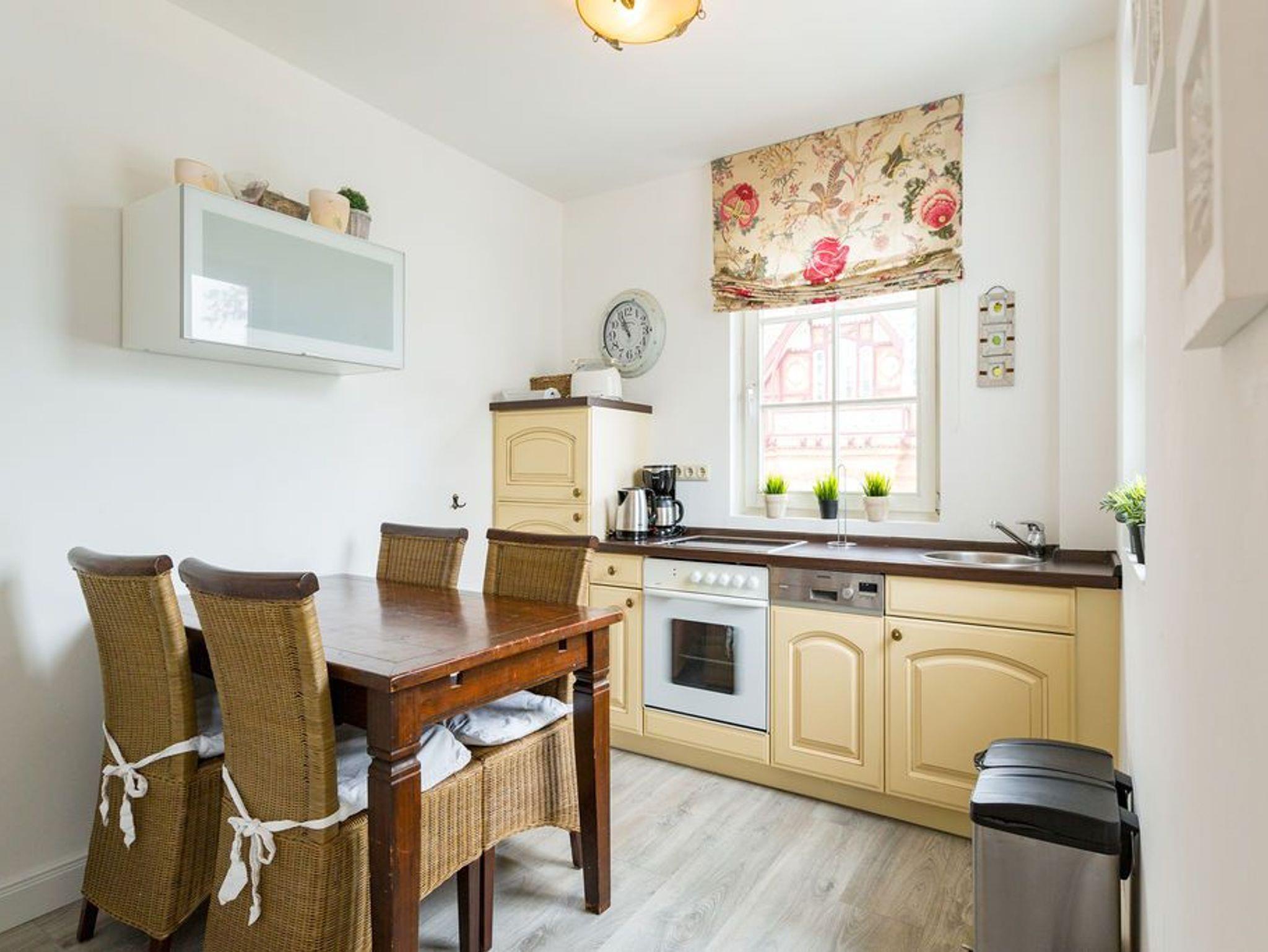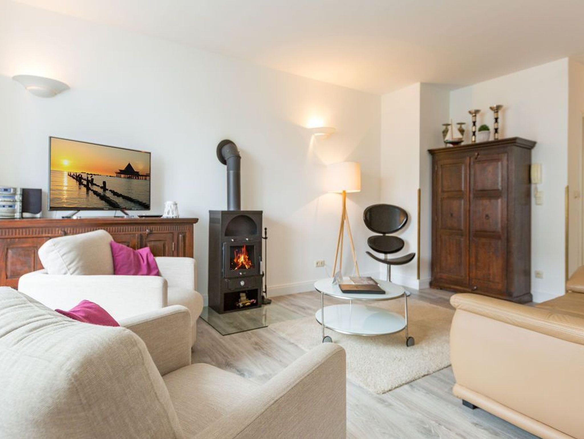 Willkommen in Ihrer 3-Raum-Ferienwohnung im 1. Obergeschoss ? auf 60 Quadratmetern finden bis zu vier Personen alles, was einen entspannten Urlaub ausmacht. Das helle Wohnzimmer mit gemütlichem Kamin lädt zum Relaxen ein, während die offene, komplett ausgestattete Küche mit Essplatz zum gemeinsamen Kochen und Genießen einlädt. Zwei Schlafzimmer mit komfortablen Doppelbetten sorgen für erholsame Nächte; die Betten sind bei Ihrer Anreise bereits bezogen. Das helle Bad ist mit Dusche und WC ausgestattet. Zwei Balkone bieten zusätzliche Rückzugsmöglichkeiten und laden zum Frühstück oder Abendkaffee an der frischen Luft ein. Ein PKW-Stellplatz in der Nähe gehört selbstverständlich zur Wohnung dazu.