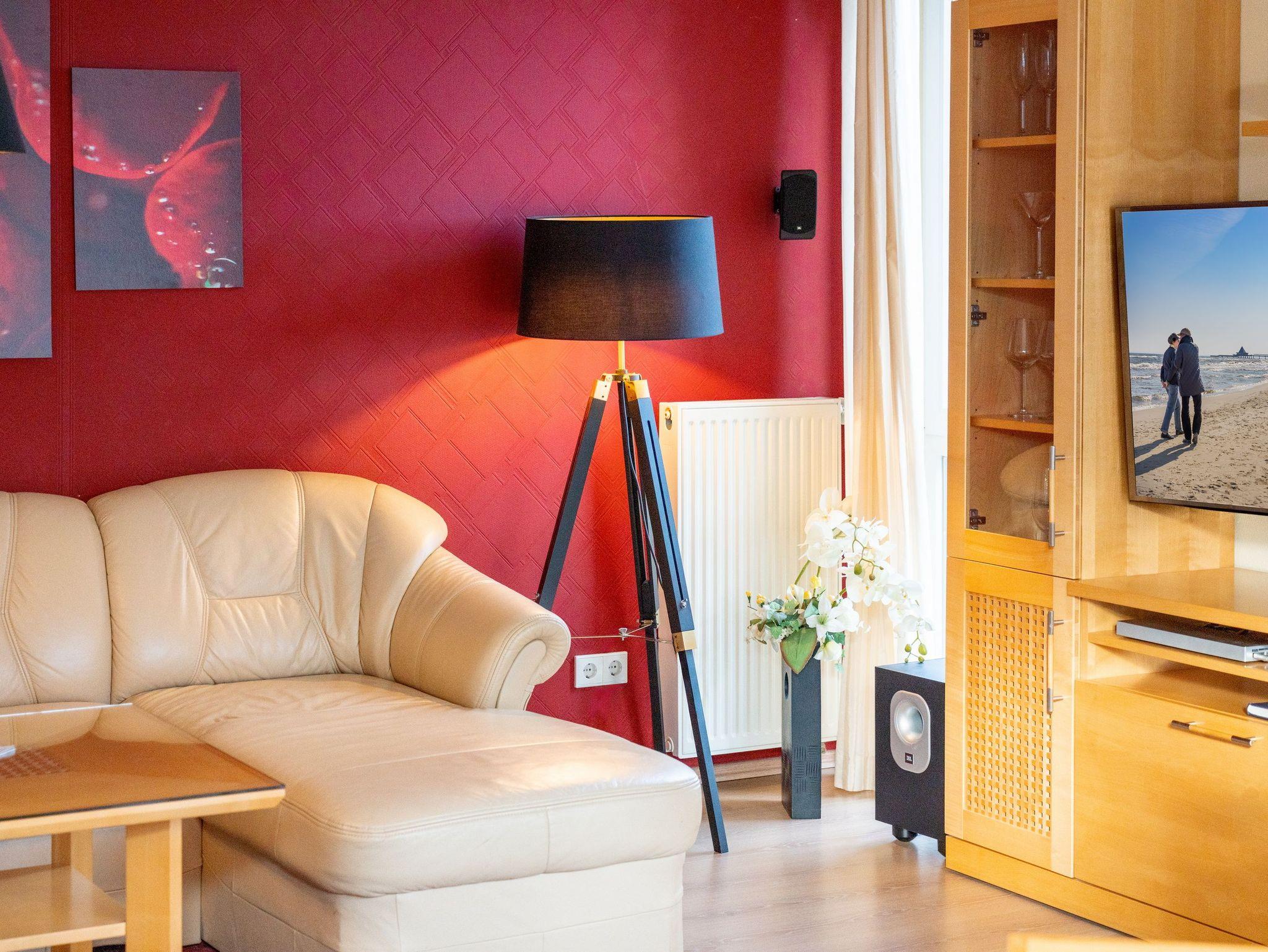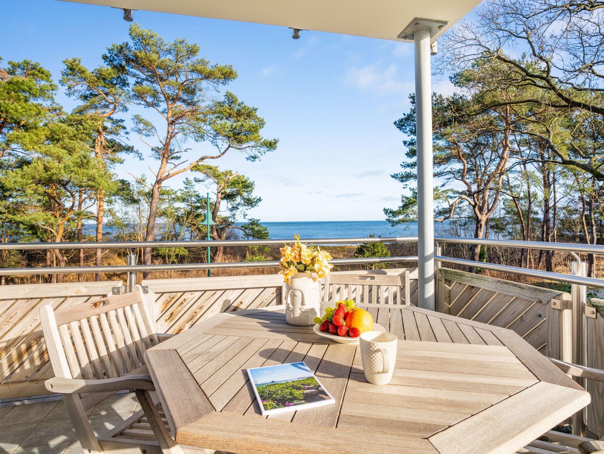 Auf 67 Quadratmetern erstreckt sich die Wohnfläche und lädt Dank dieser Großzügigkeit bis zu vier Personen zu einem erholsamen Urlaub in idealer Strandlage ein. Modern und gemütlich zugleich - auf Ihrem Balkon können Sie bereits beim morgendlichen Kaffee den Wellen der Ostsee lauschen. Der stilvolle Wohnbereich verfügt über ein komfortables, großzügiges Sofa und Flat-TV. Die einladende Küchenzeile rundum mit allem ausgestattet, was für Ihre Lieblingsspeisen nötig ist (inkl. Ceranfeld, Backofen, Mikrowelle, Kühlschrank, Gefrierschrank, Geschirrspüler, Wasserkocher, Toaster und Kaffeemaschine). An dem großzügigem Essplatz kann die ganze Familie in geselliger Runde die zubereiteten Speisen genießen. Vom Wohnzimmer aus erreichen Sie Ihren Balkon mit Meerblick, der zum Sonnenbaden oder zur abendlichen Spielrunde einlädt. Das Schlafzimmer ist mit einem bequemen Doppelbett (200x200cm) ausgestattet. Für zwei weitere Urlaubsgäste kann die Schlafcouch im Wohnbereich für eine erholsame Nachtruhe und einen guten Start in den neuen Urlaubstag ausgezogen und als komfortable Schlafstätte genutzt werden. Damit Sie Ihre wohlverdiente Urlaubszeit bereits am Anreisetag in vollen Zügen genießen können - haben wir das Bett für Sie und das für Ihre lieben Mitreisenden bereits bezogen und ein Duschtuch sowie ein kleines Handtuch bereitgelegt.