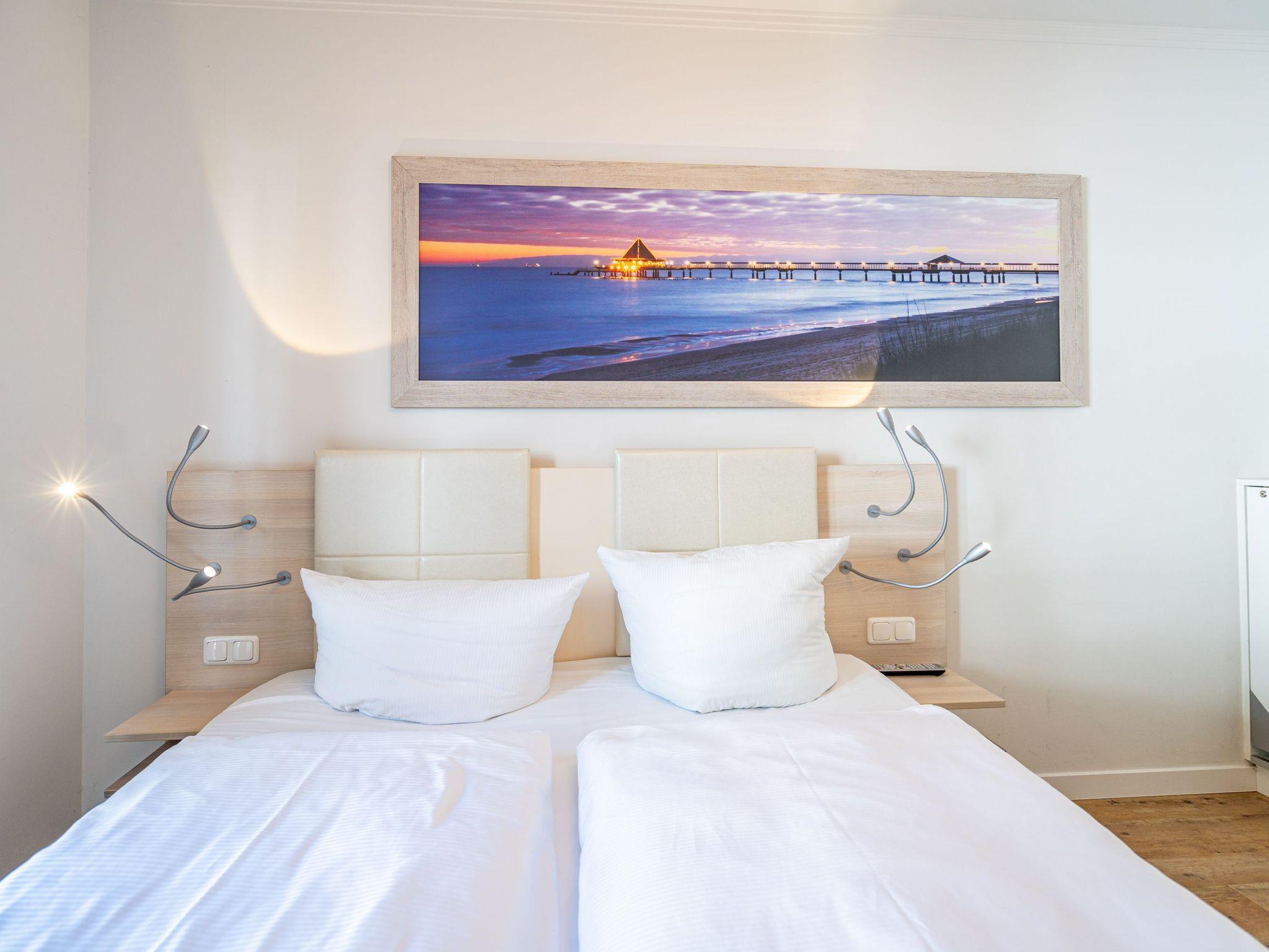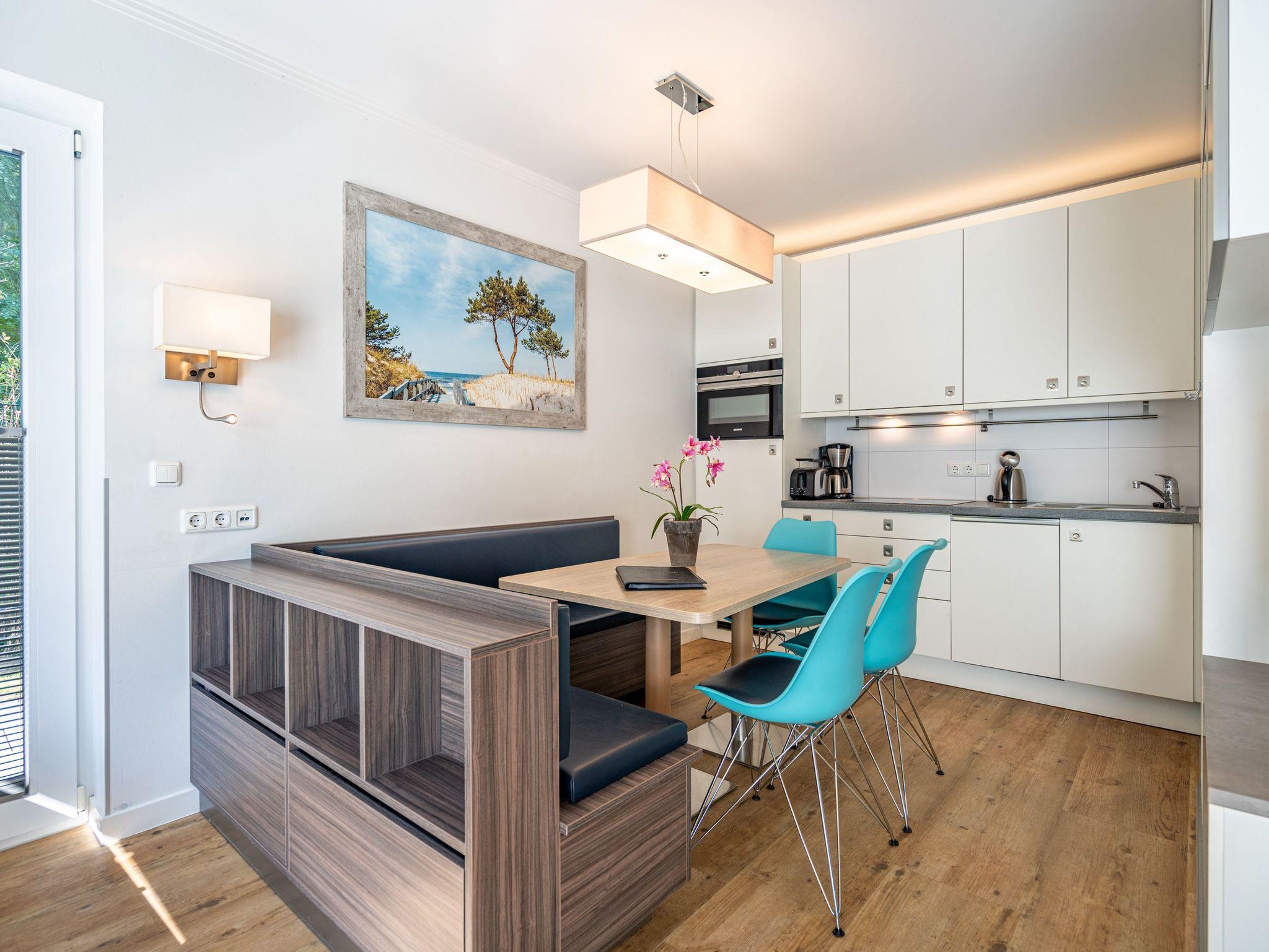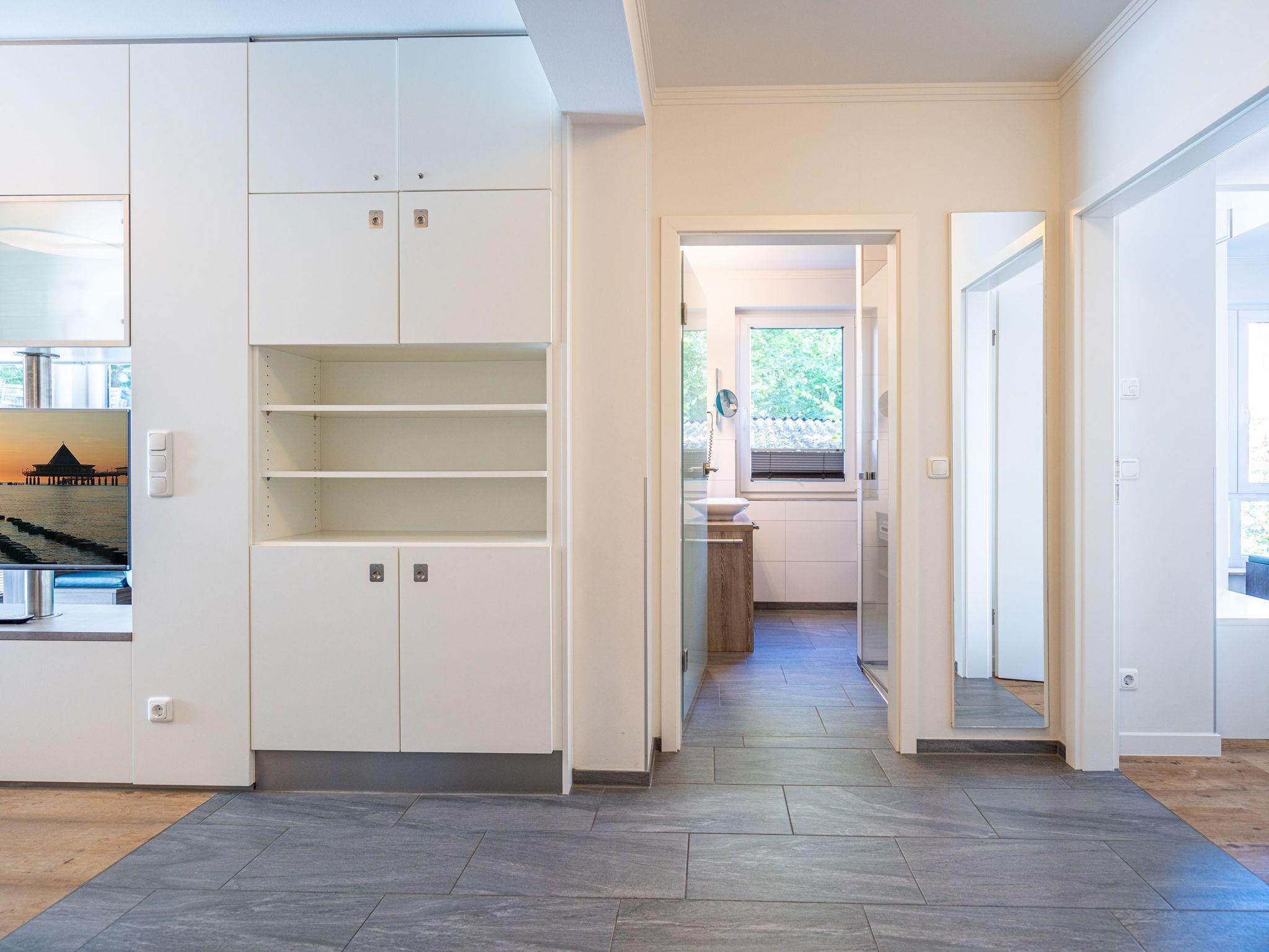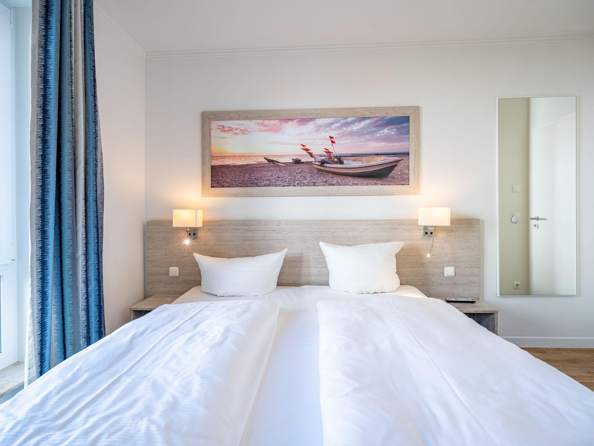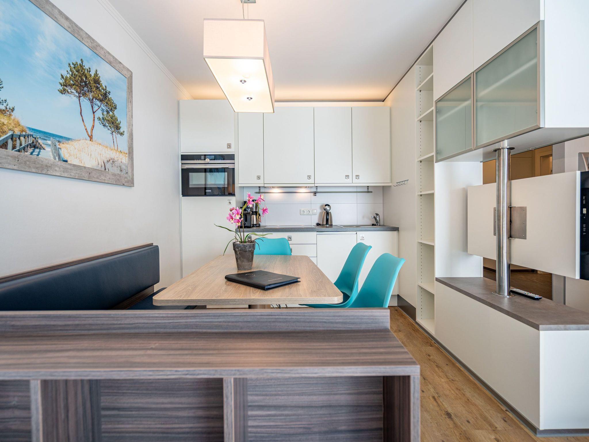 Freuen sie sich auf einen schönen Urlaub in dieser 3-Raum-Ferienwohnung ( 64 qm) im Erdgeschoss der Villa Limora. Helle Farben, modernes Design und Interior wurden kombiniert mit perfekten Einbauten und schaffen so den idealen Urlaubsrahmen für 4 Personen und ein Kleinkind bis 3 Jahre (im Babyreisebett).Der helle Wohnbereich mit großer Ledercouch und Flat-TV schließt sich an die offene, komplett ausgestattete Küche (Cerankochfeld, Geschirrspüler, Mikrowellenkombigerät) mit schönem Essplatz an. Von hier hat man auch Zugang zur großzügigen Südterrasse, die mit Gartenmöbeln ausgestattet ist. Zwei Schlafzimmer mit Doppelbetten (1x 1,80m x2,00m und 1x 1,60m x 2,00m) und jeweils separatem Flat-TV sorgen für erholsamen Schlaf. Die Wohnung wird ergänzt durch ein modernes Duschbad mit ebenerdiger Glasdusche und ein kleines Gäste-WC. In der Tiefgarage (Stellplatz 2) steht ein Pkw-Stellplatz zur Verfügung. Das WLAN-Netz in der Wohnung kann kostenfrei genutzt werden.