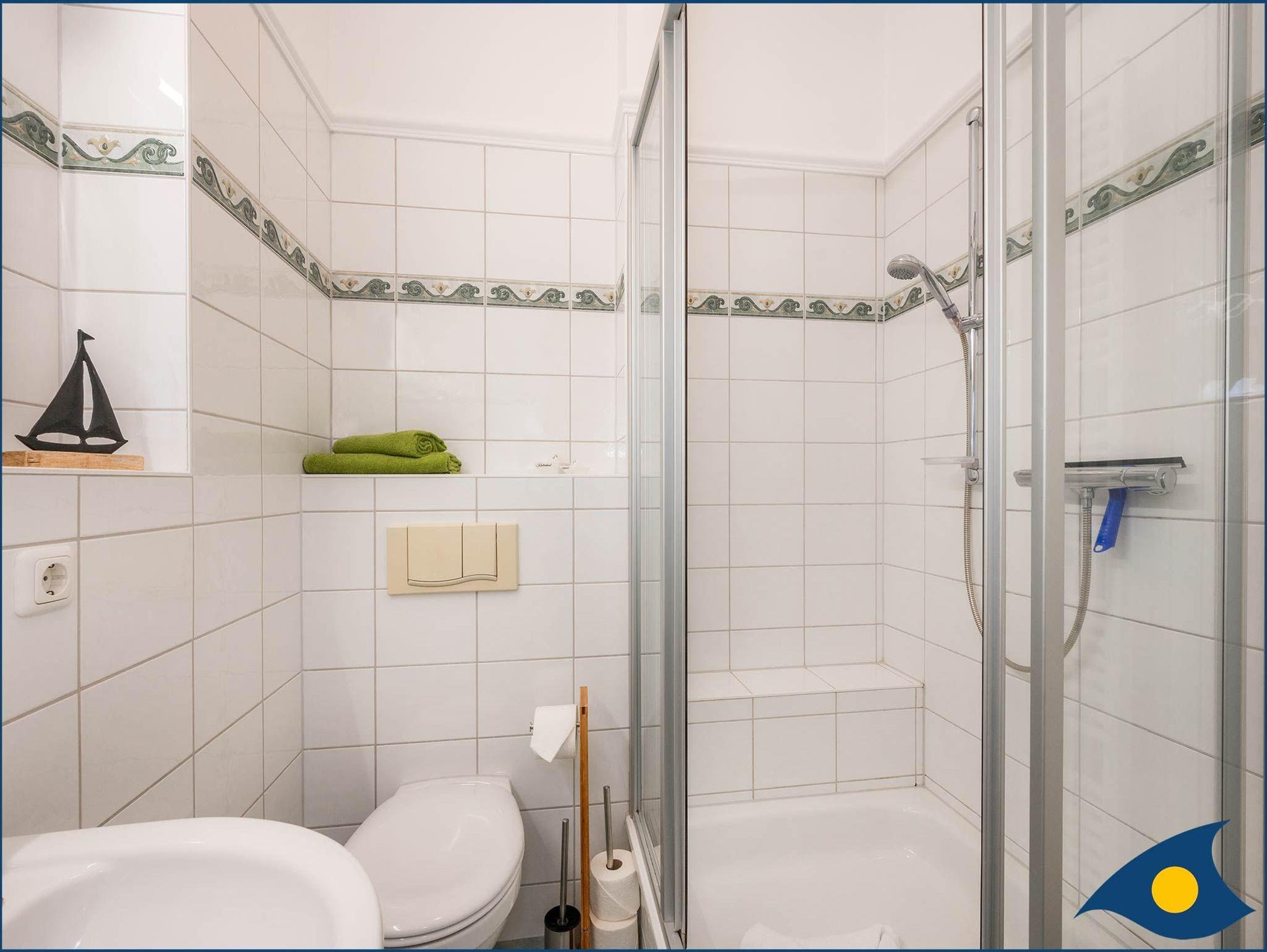Im Schlafzimmer befindet sich ein Doppelbett und ein großer Kleiderschrank, in dem alle Ihre persönlichen Dinge genügend Stauraum finden. Auch im hellen Badezimmer mit Dusche haben Sie genügend Stellflächen.