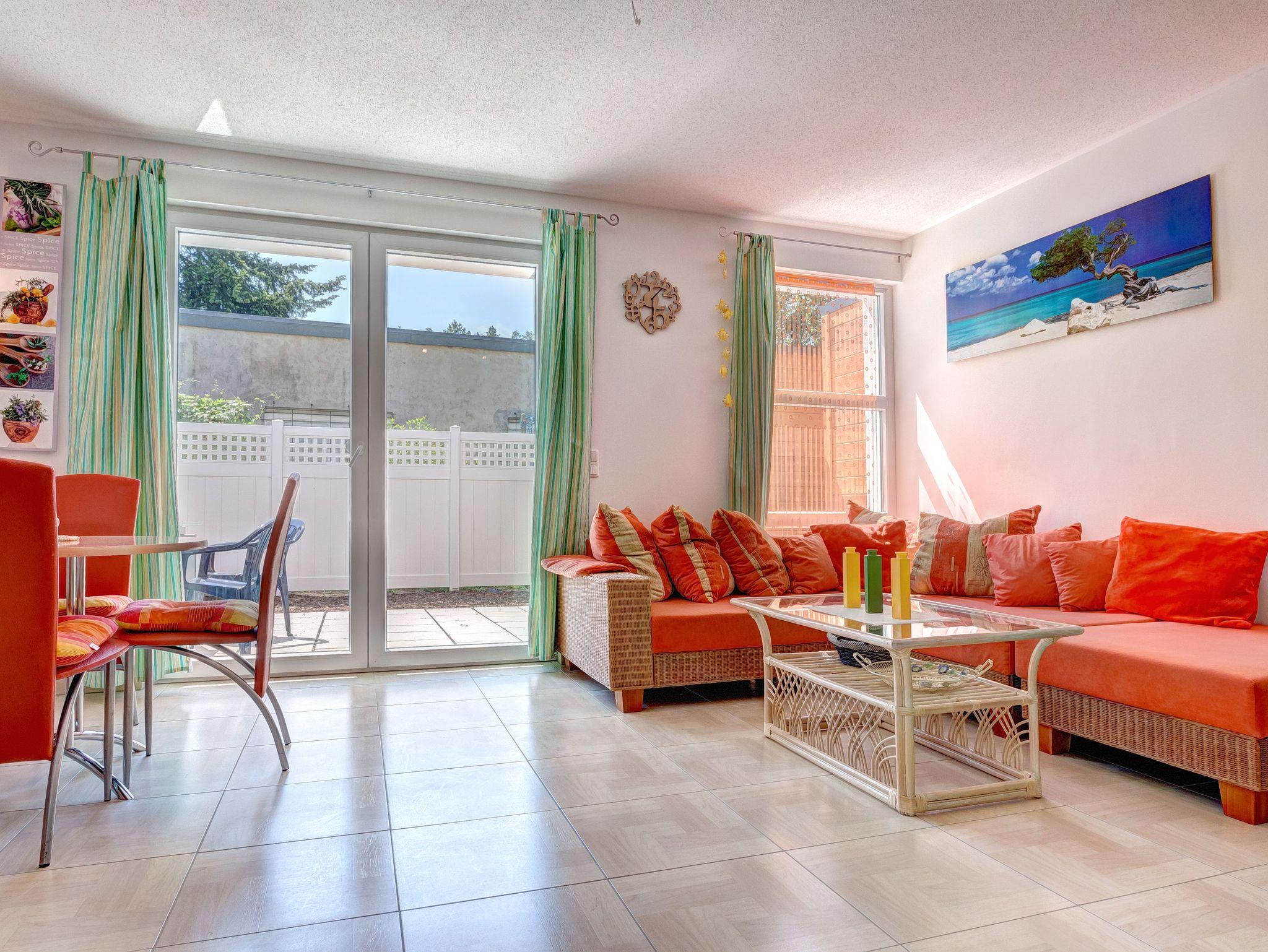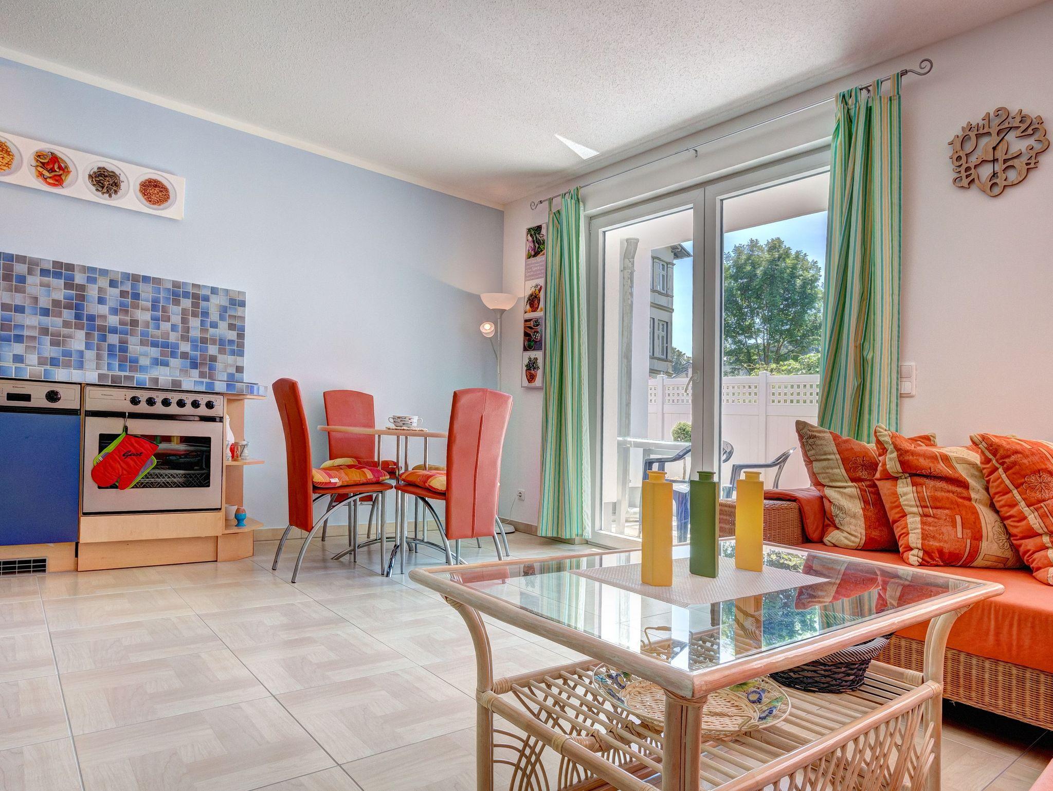 Wunderschöne Ferienwohnung im Erdgeschoss eines zurückgesetzten Gebäudes, fußläufig von der Seebrücke Heringsdorf gelegen. Gemütlicher Wohnraum mit einladender Sitzecke, mit Couchtisch und Flat-TV. WLAN ist ebenfalls verfügbar. Ideal für bis zu 3 Erwachsene und ein Kleinkind bis 3 Jahre.