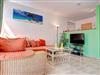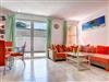 Ein Esstisch für 4 Personen und eine offene Küchenzeile mit Geschirrspüler, Kaffeemaschine, Mikrowelle, Herd etc. befinden sich angrenzend an den Wohnbereich. Für ein Sonnenbad oder laue Sommerabende bietet sich die angrenzende private und möblierte und ruhig gelegene Terrasse an.
