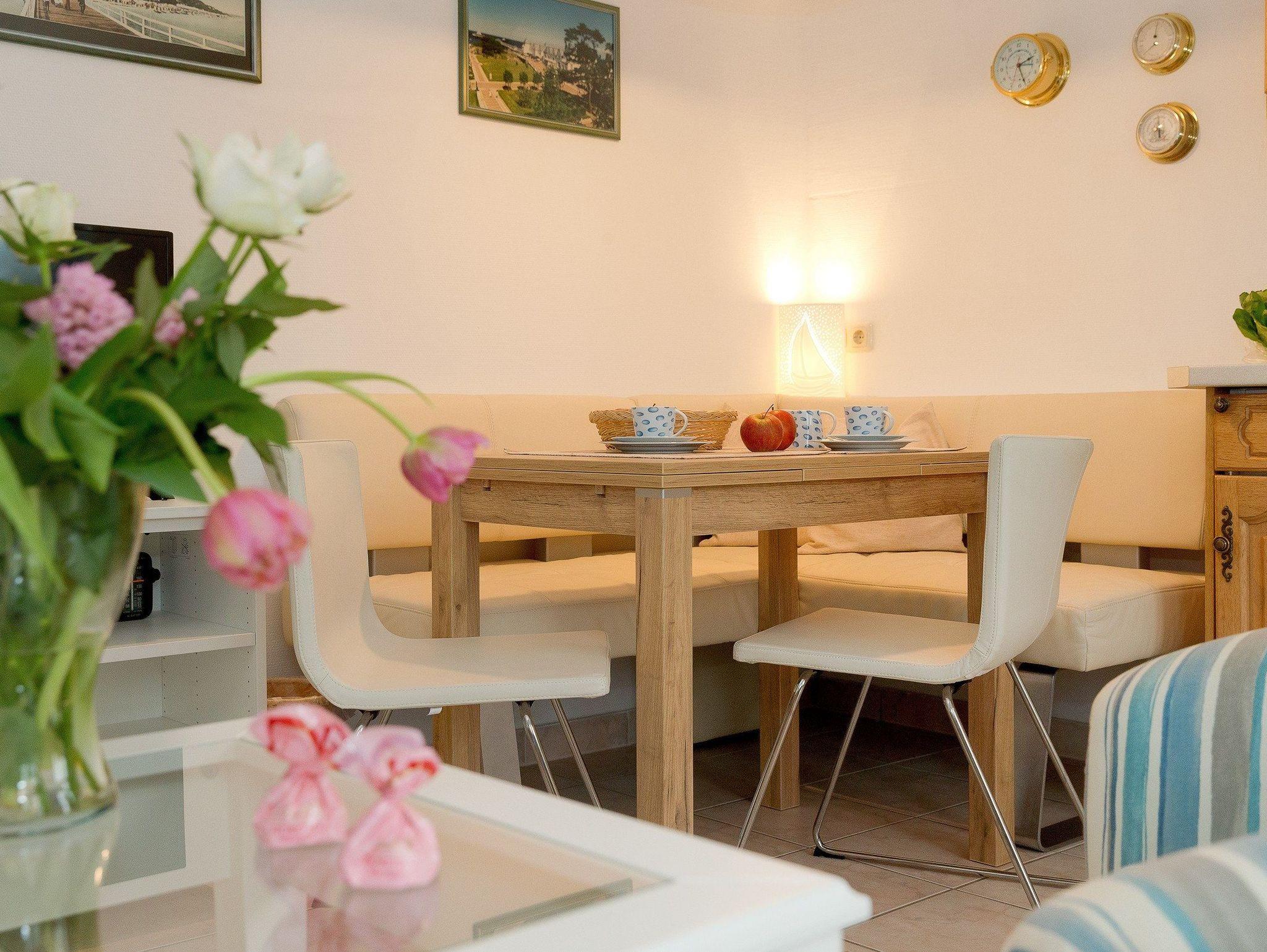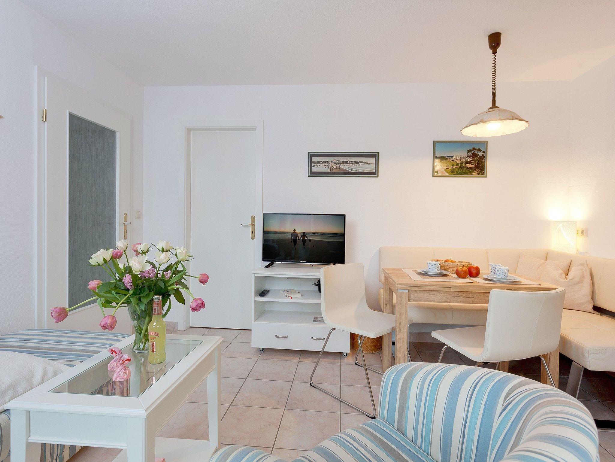 Das helle Zwei-Zimmer-Appartement befindet sich im Gartengeschoss und ist mit einer Größe von 39 Quadratmetern ideal für einen Urlaub mit bis zu zwei Personen geeignet.